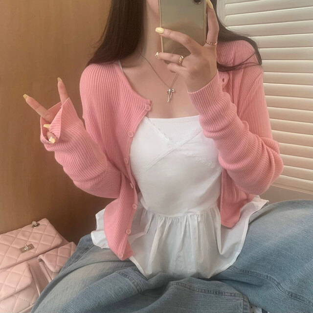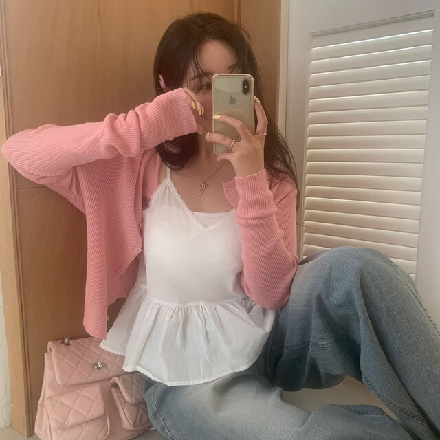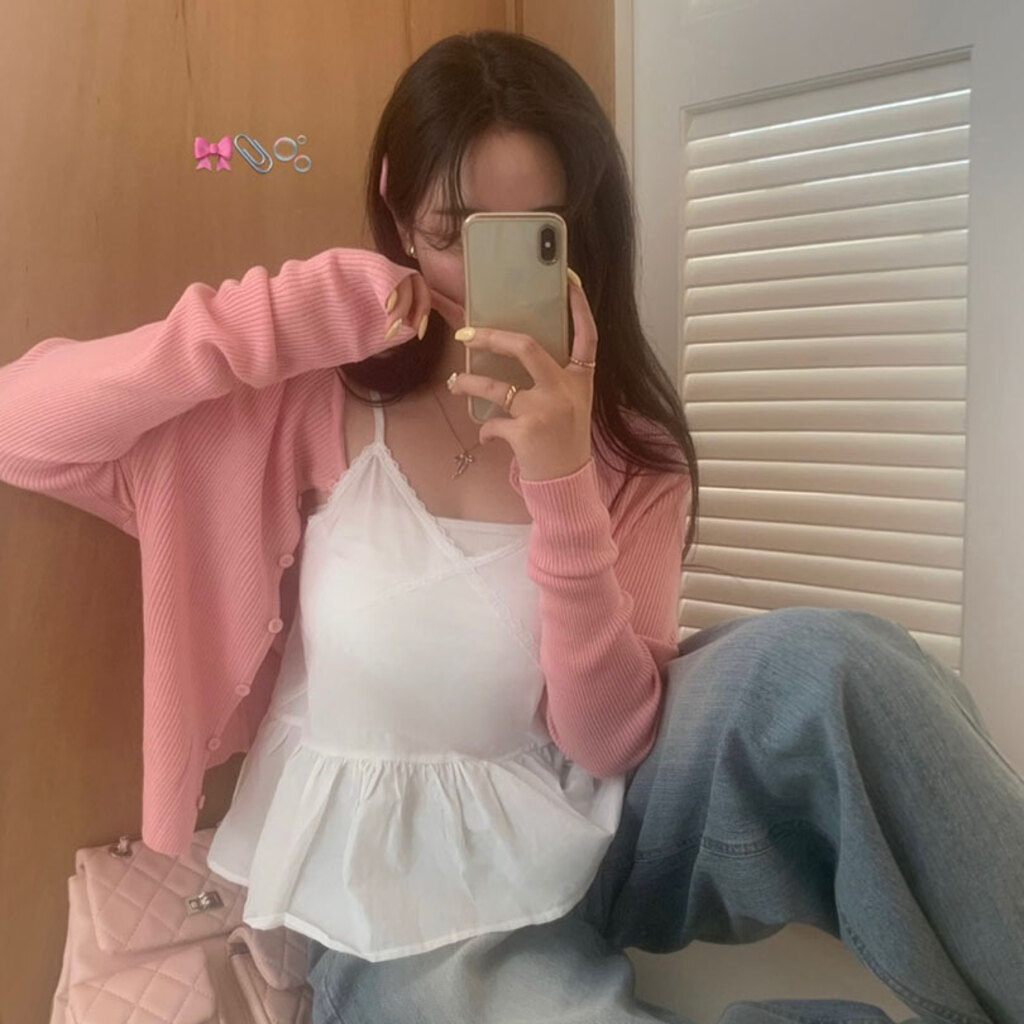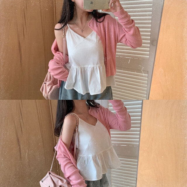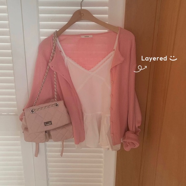 単独で着ても可愛いですが、、カーディガンとTシャツにレイヤードしても