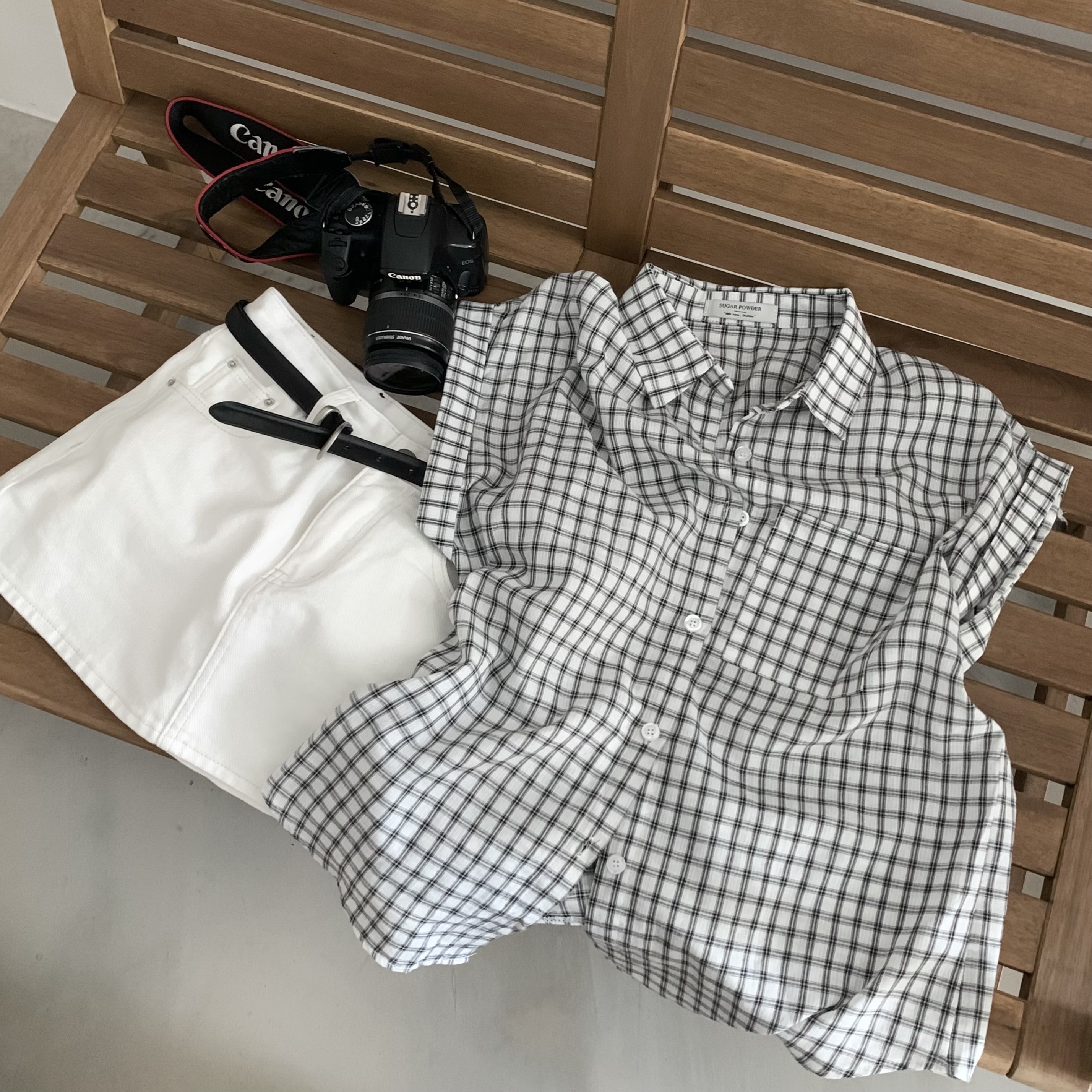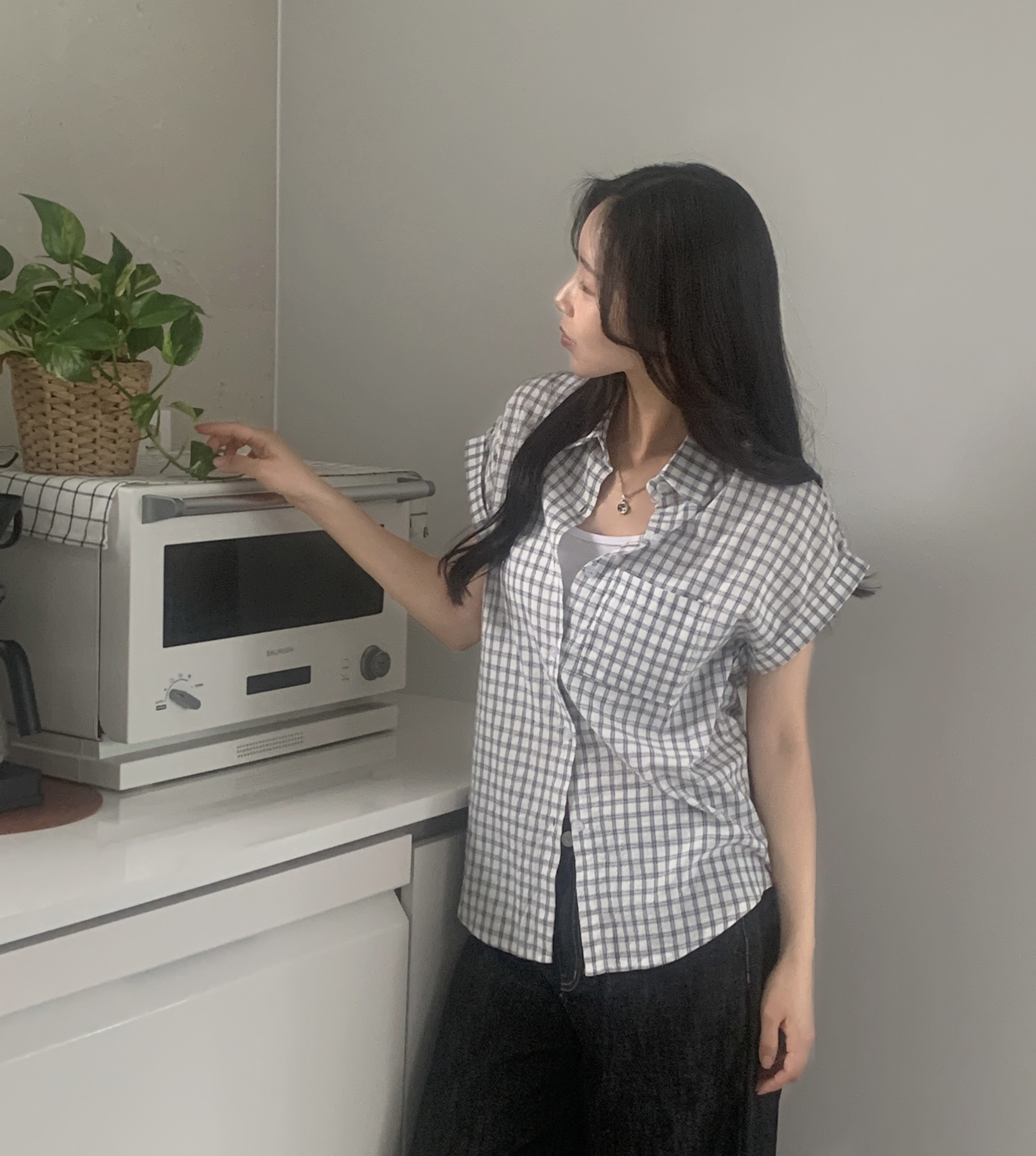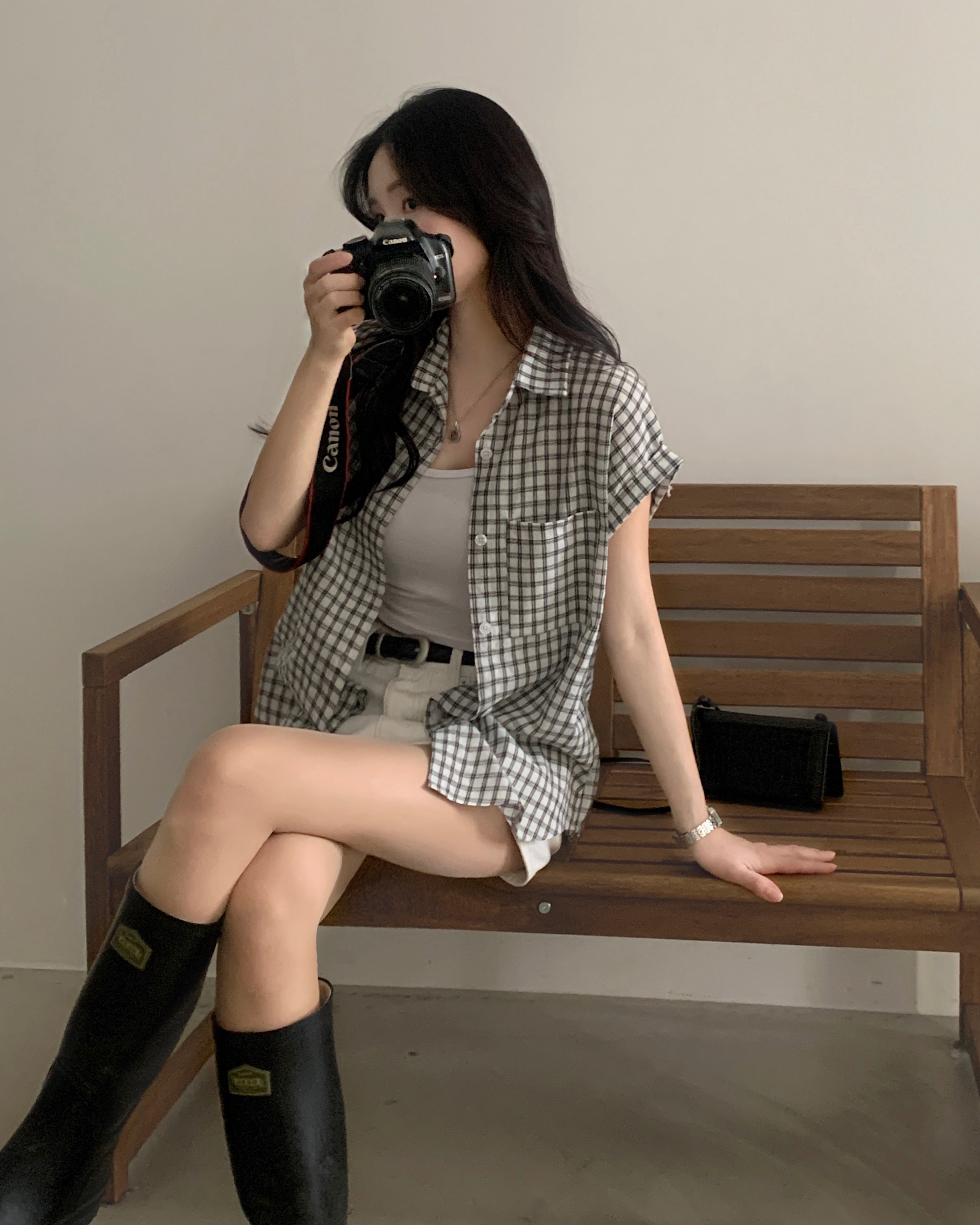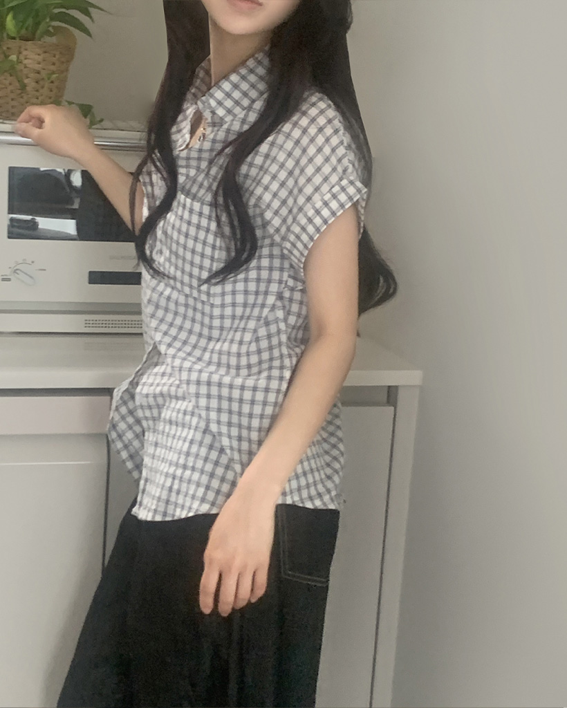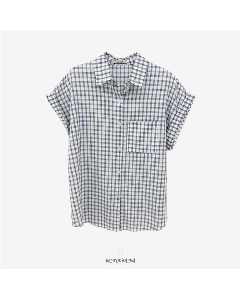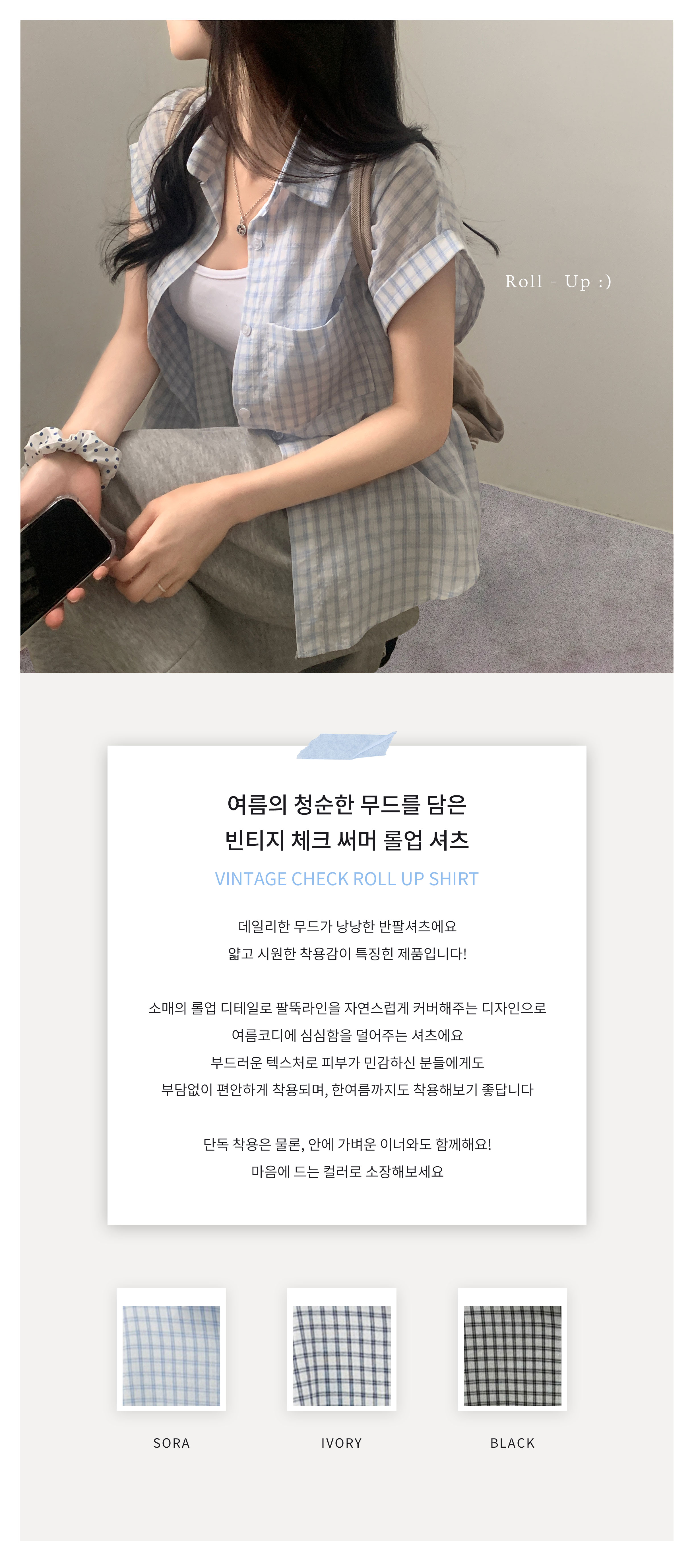 ヴィンテージチェックロールアップ半袖シャツ-3color