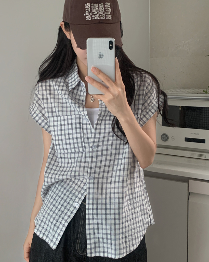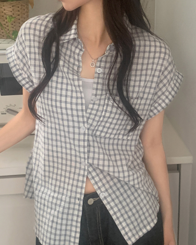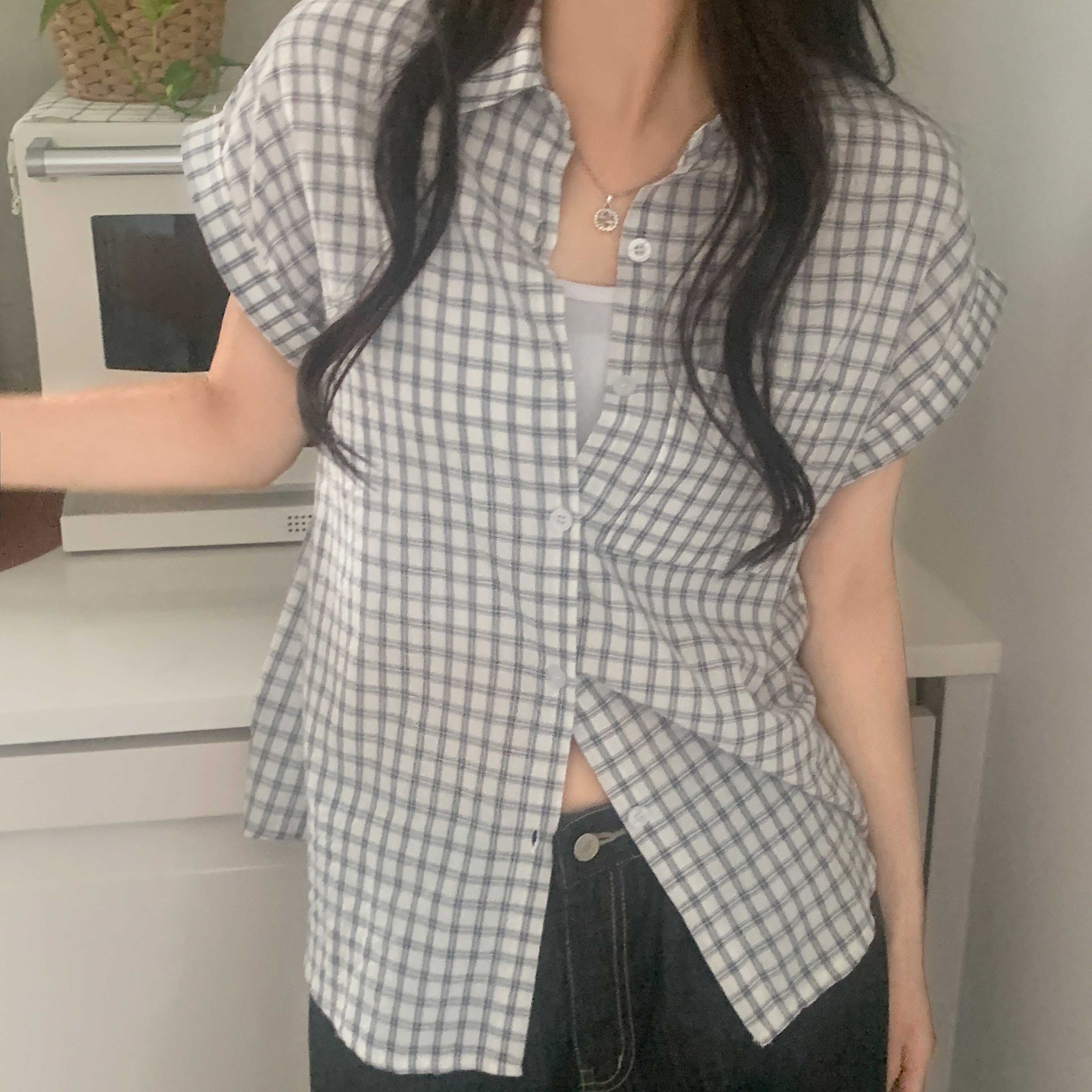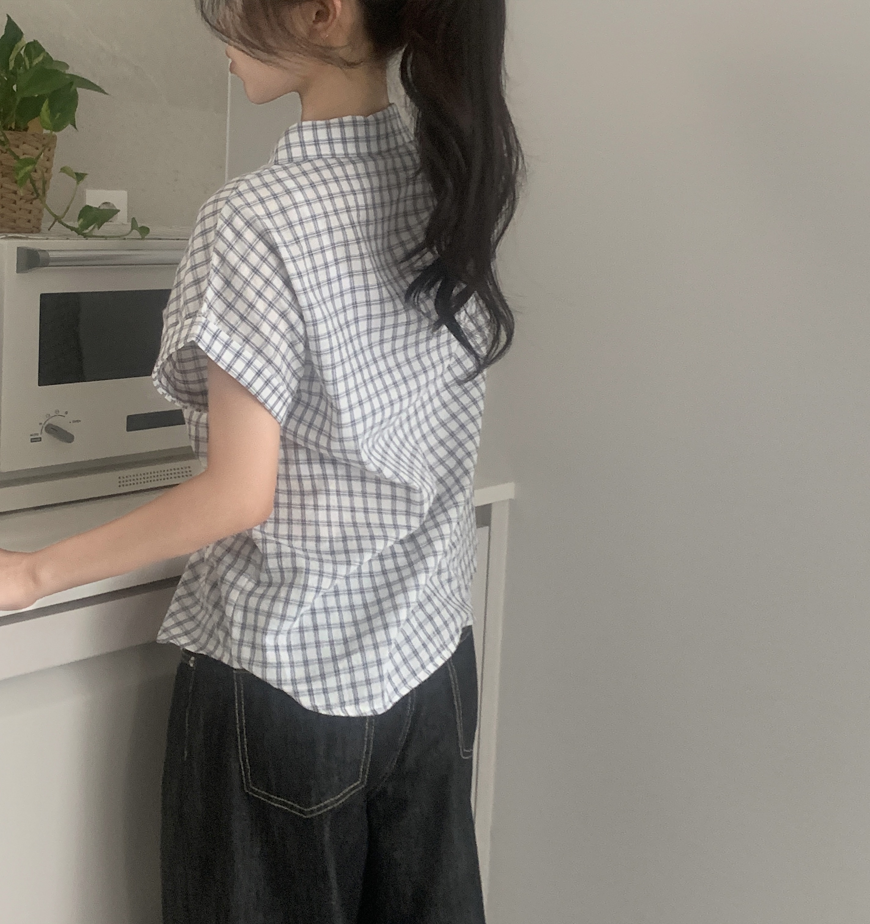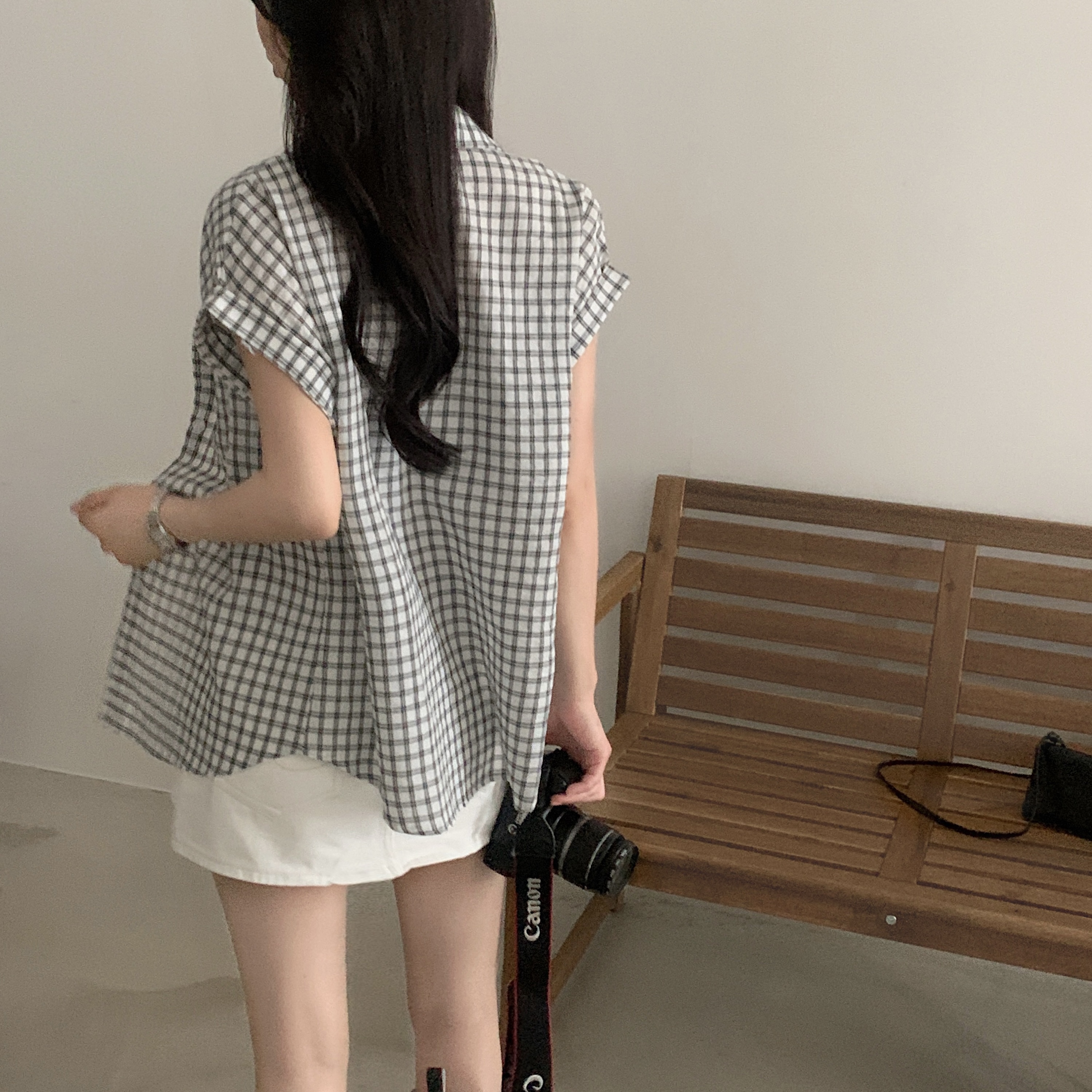 ヴィンテージチェックロールアップ半袖シャツ-3color