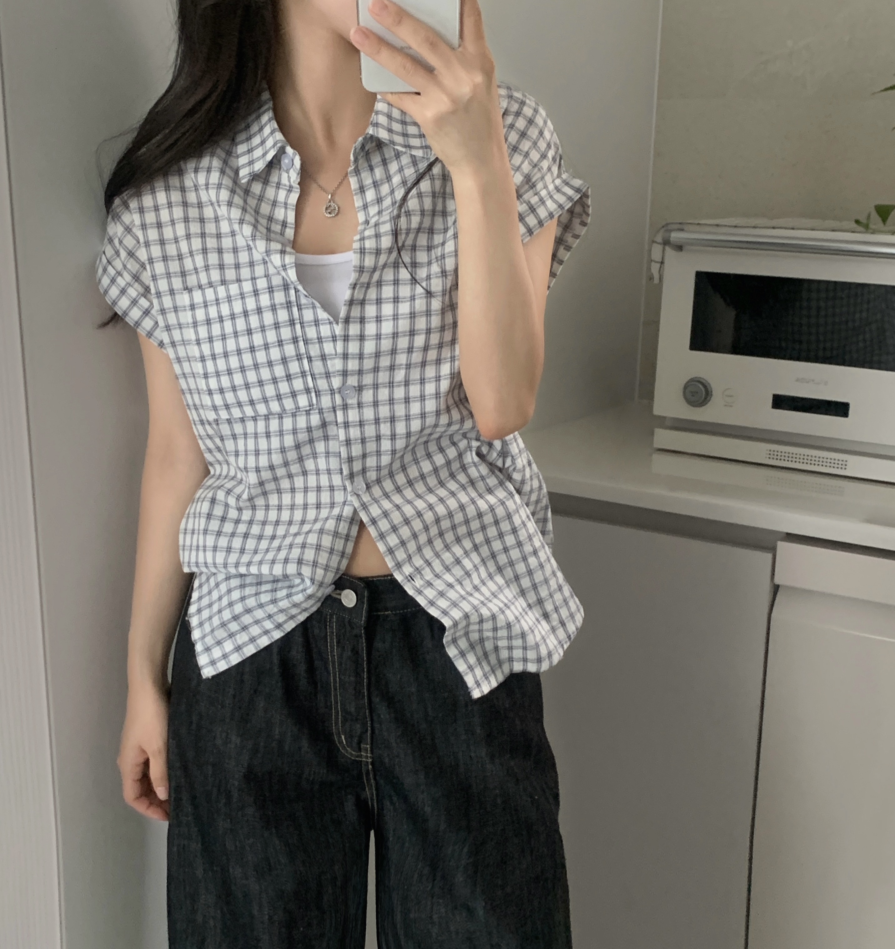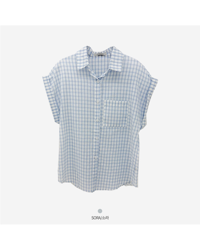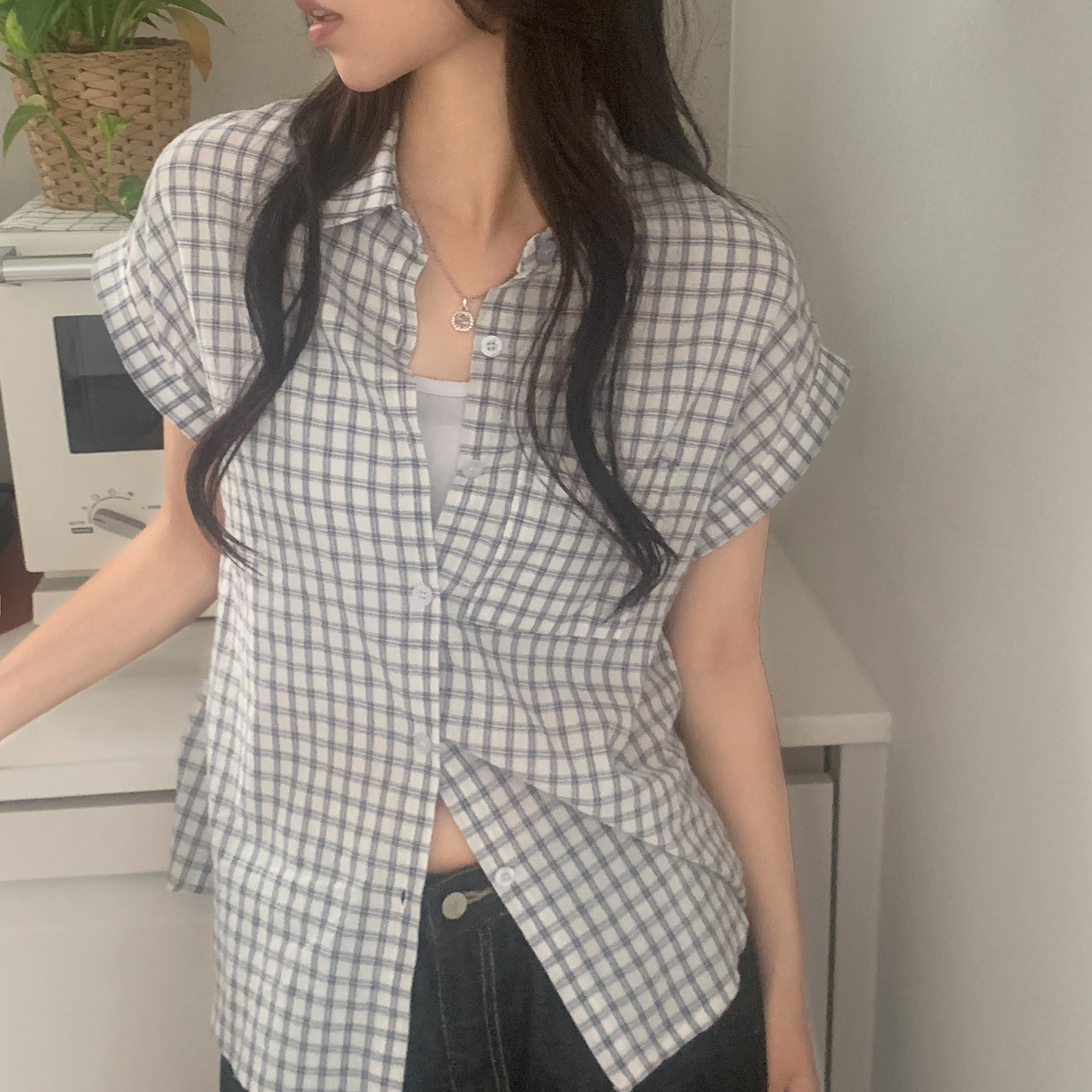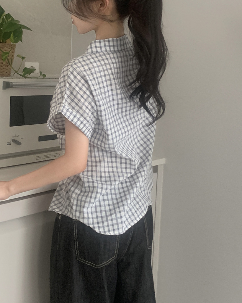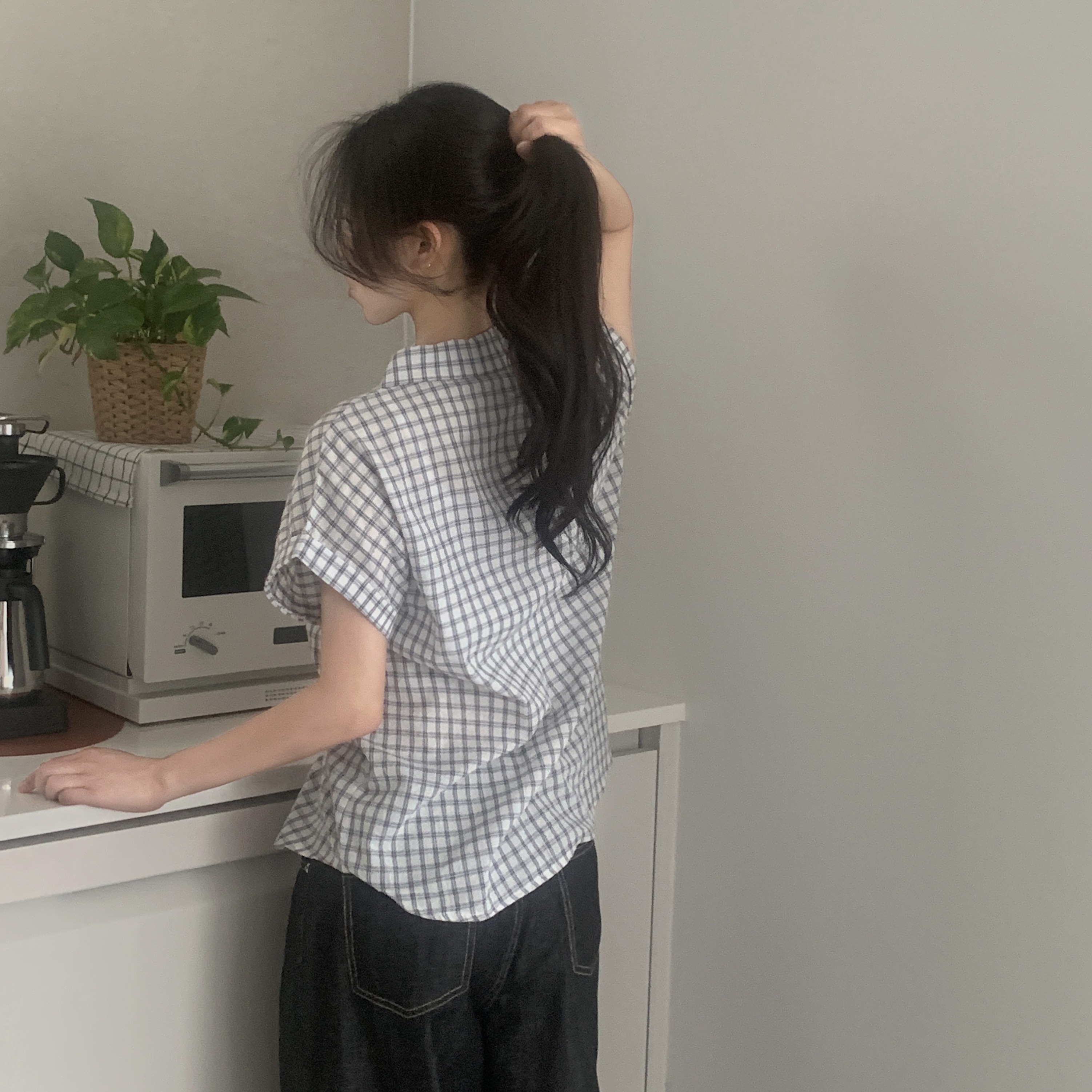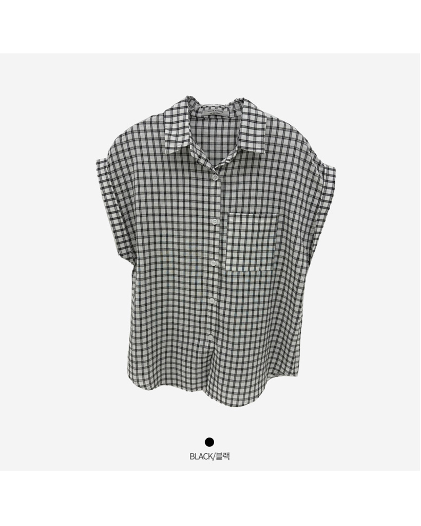 ヴィンテージチェックロールアップ半袖シャツ-3color