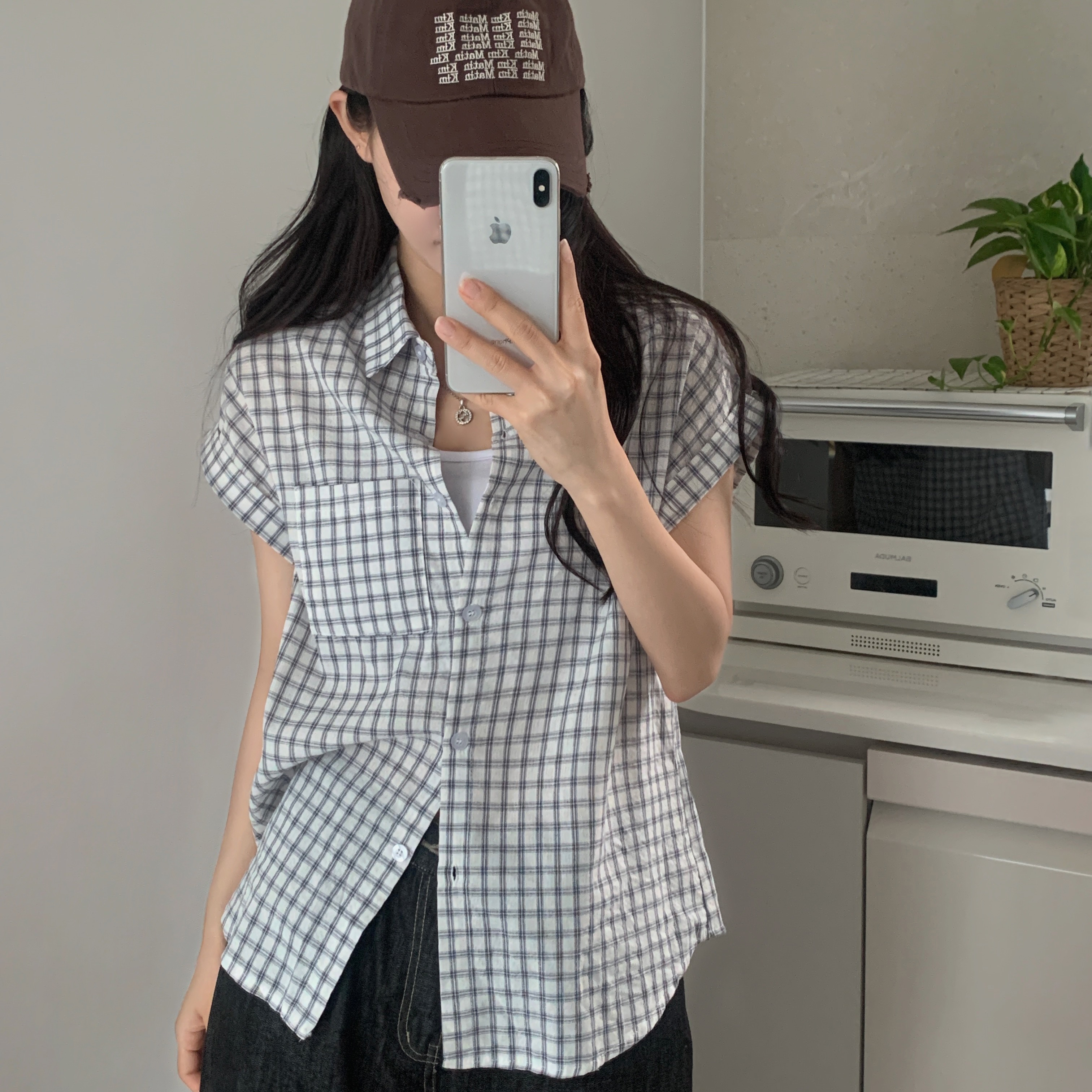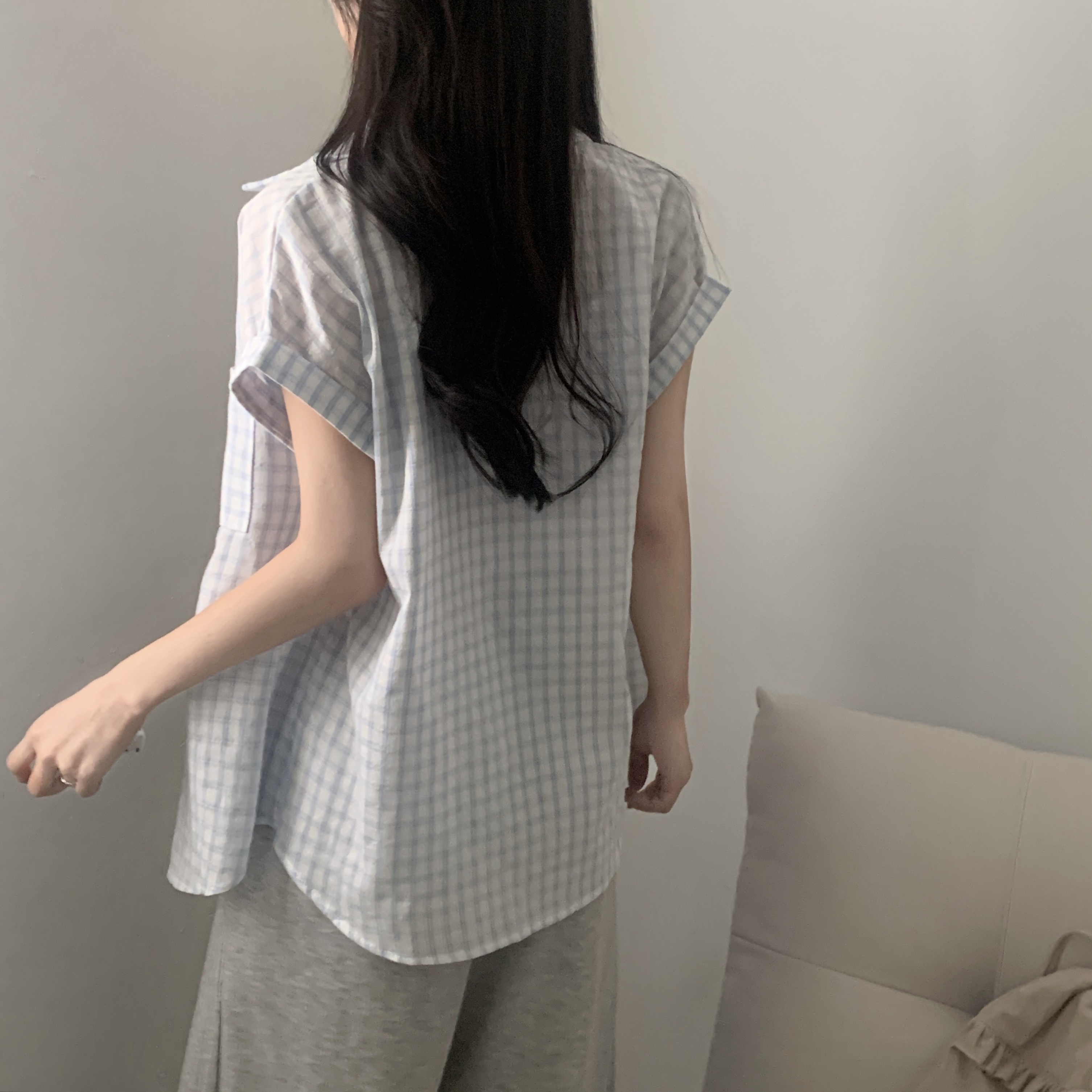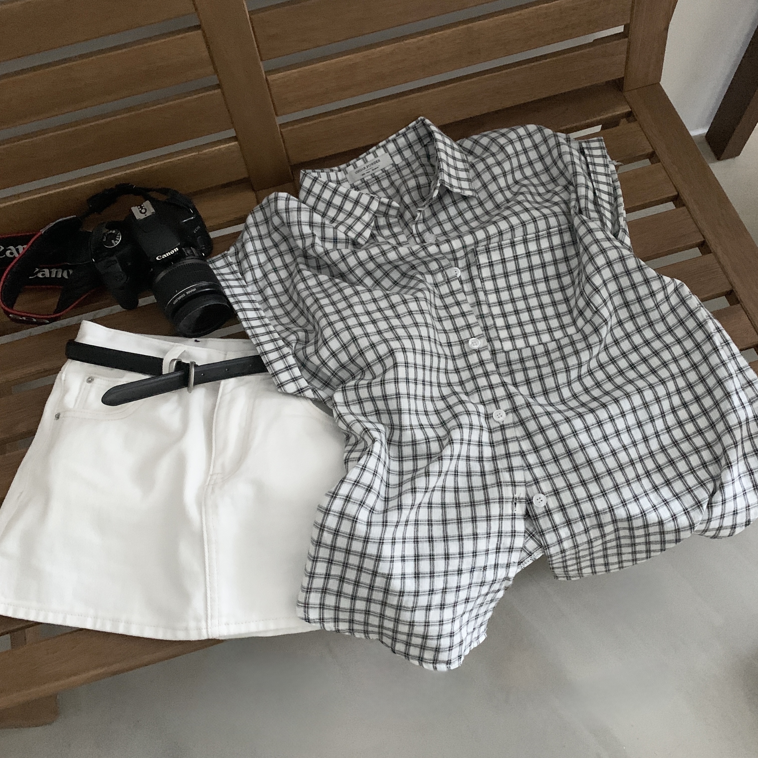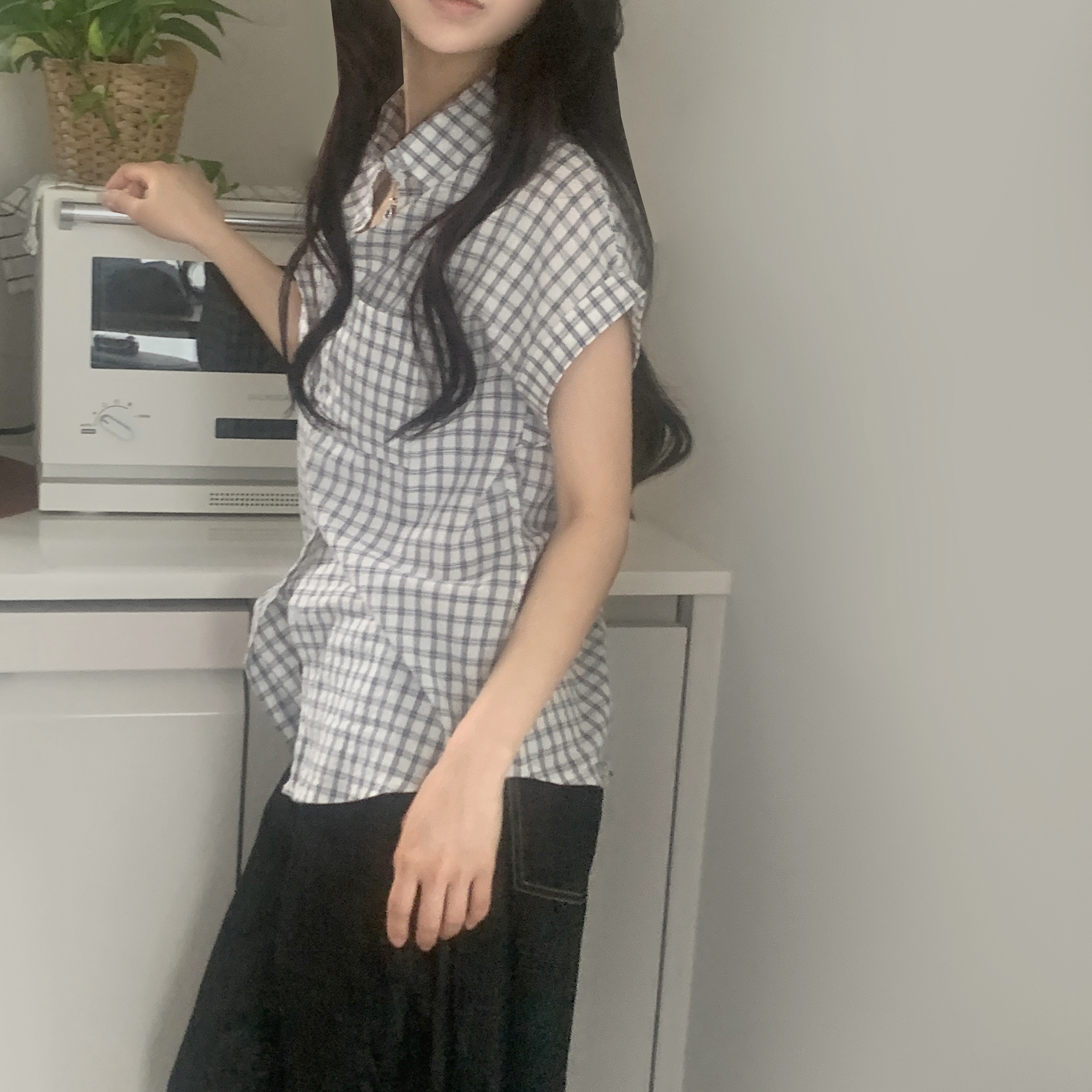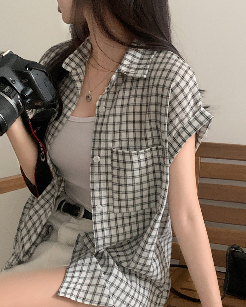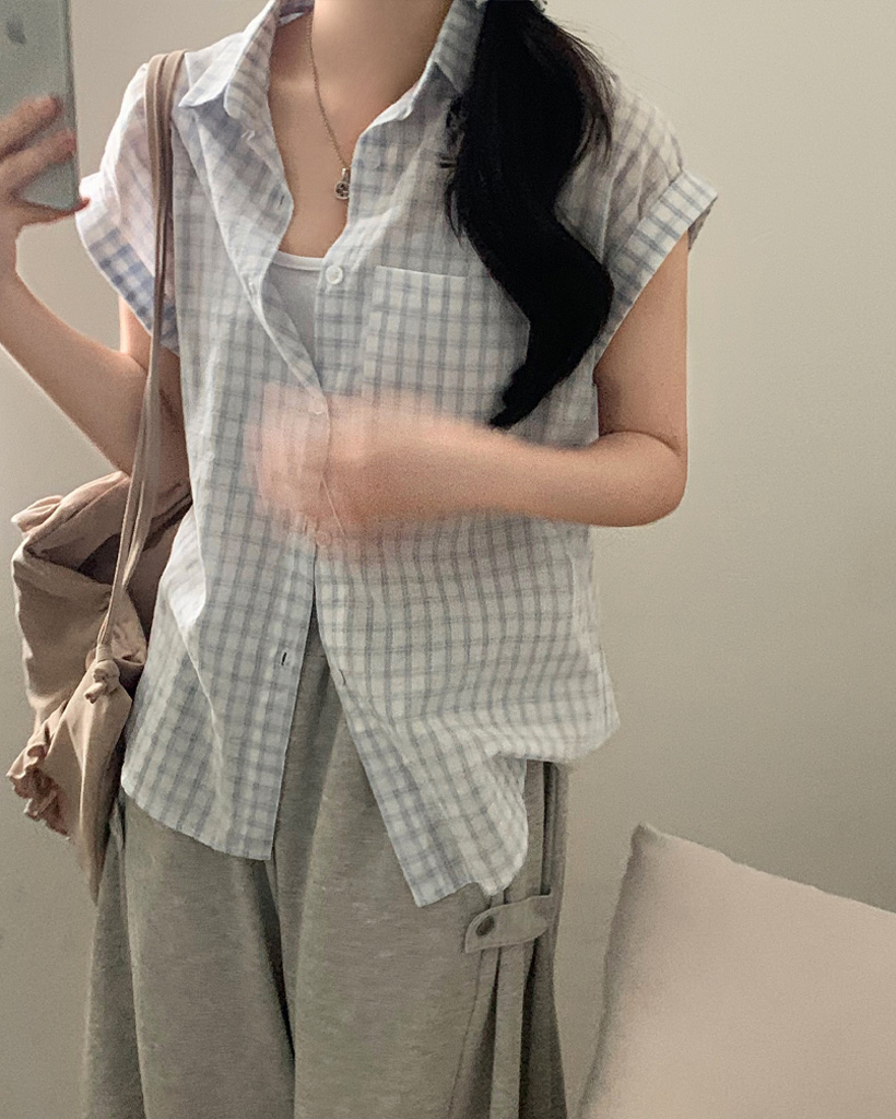 ヴィンテージチェックロールアップ半袖シャツ-3color