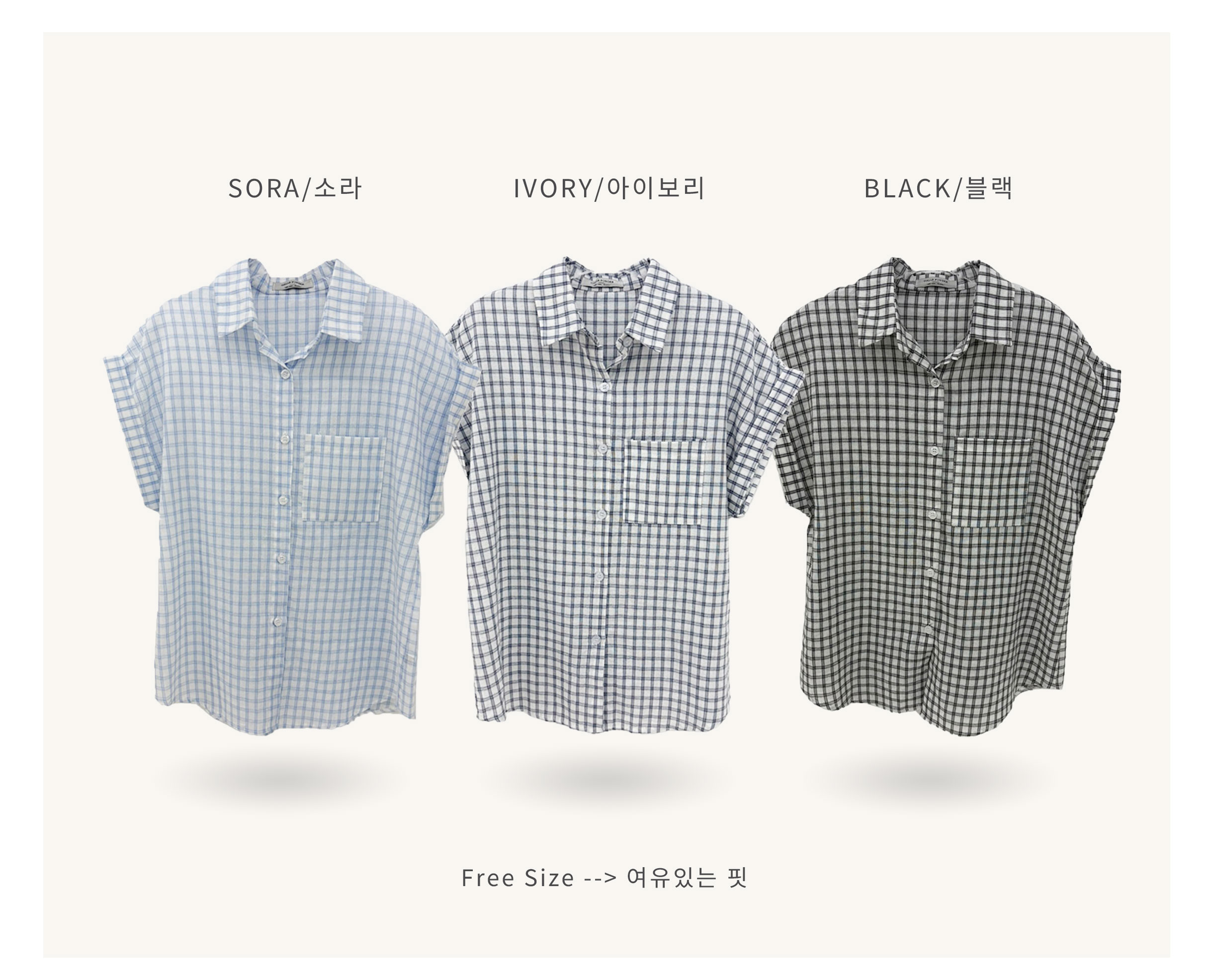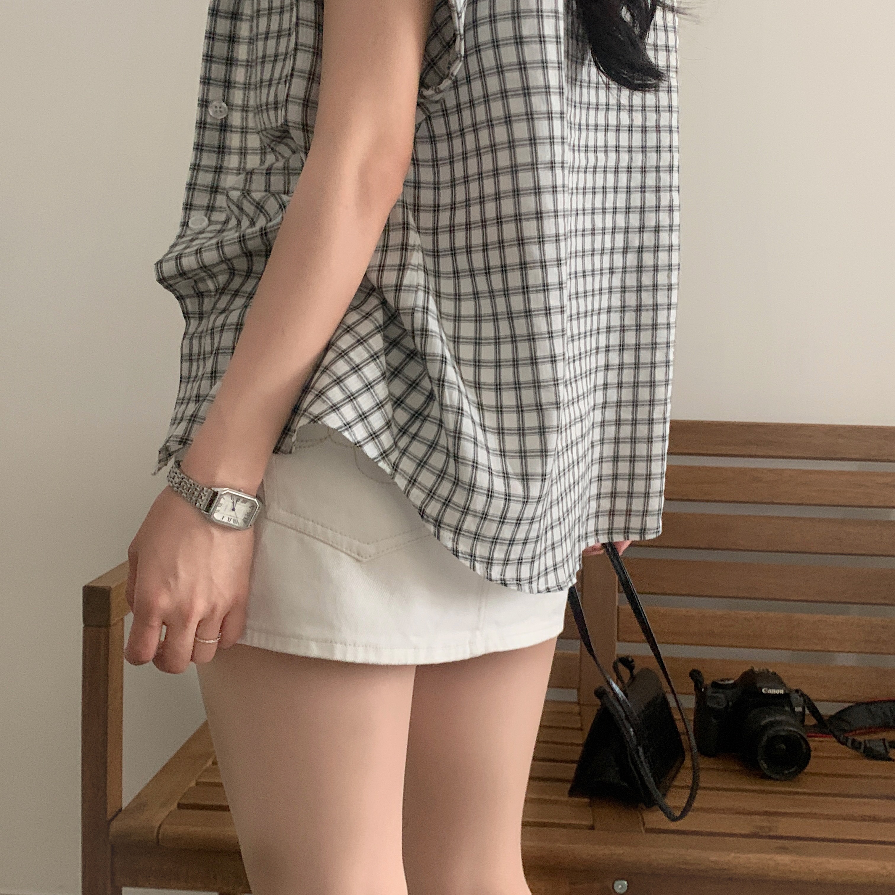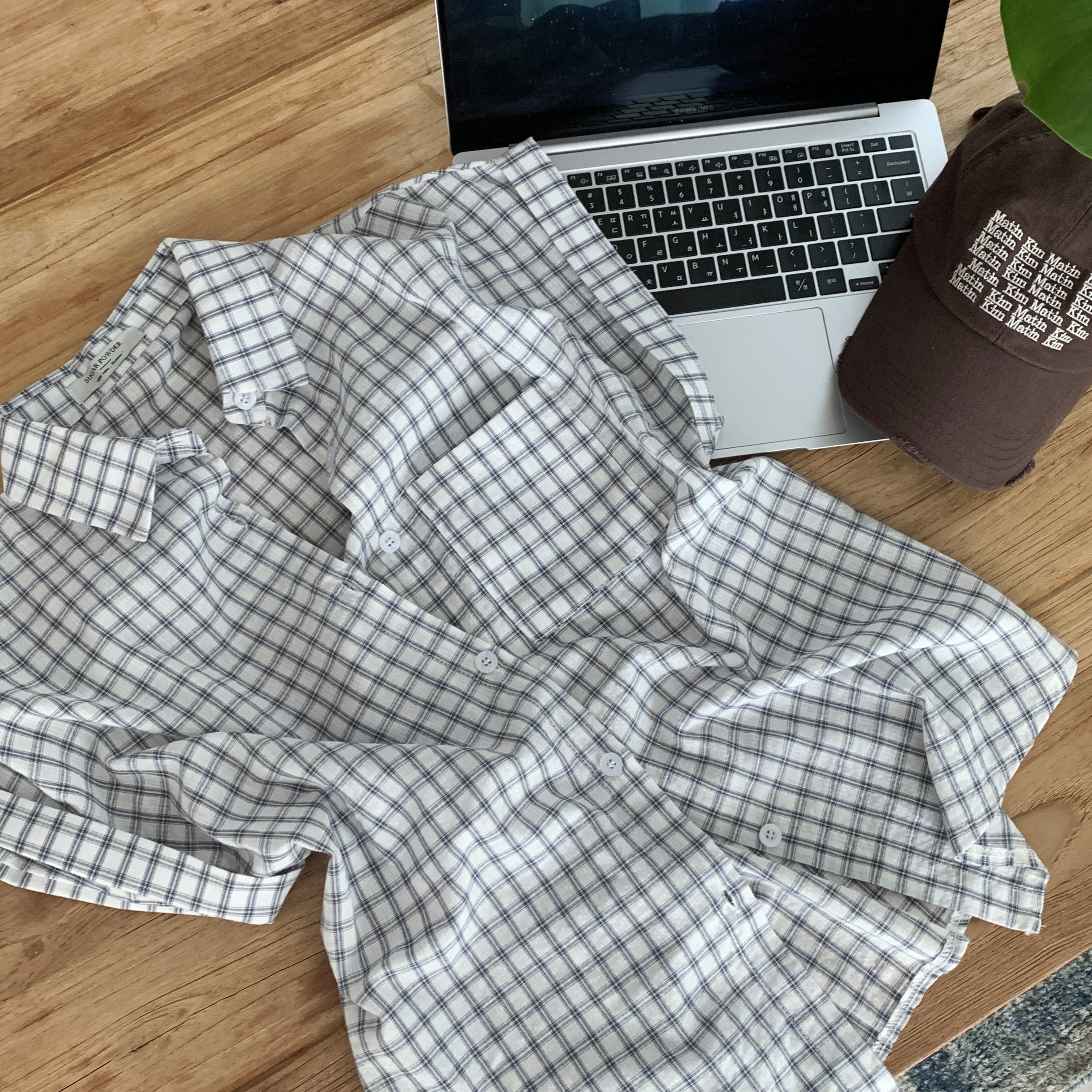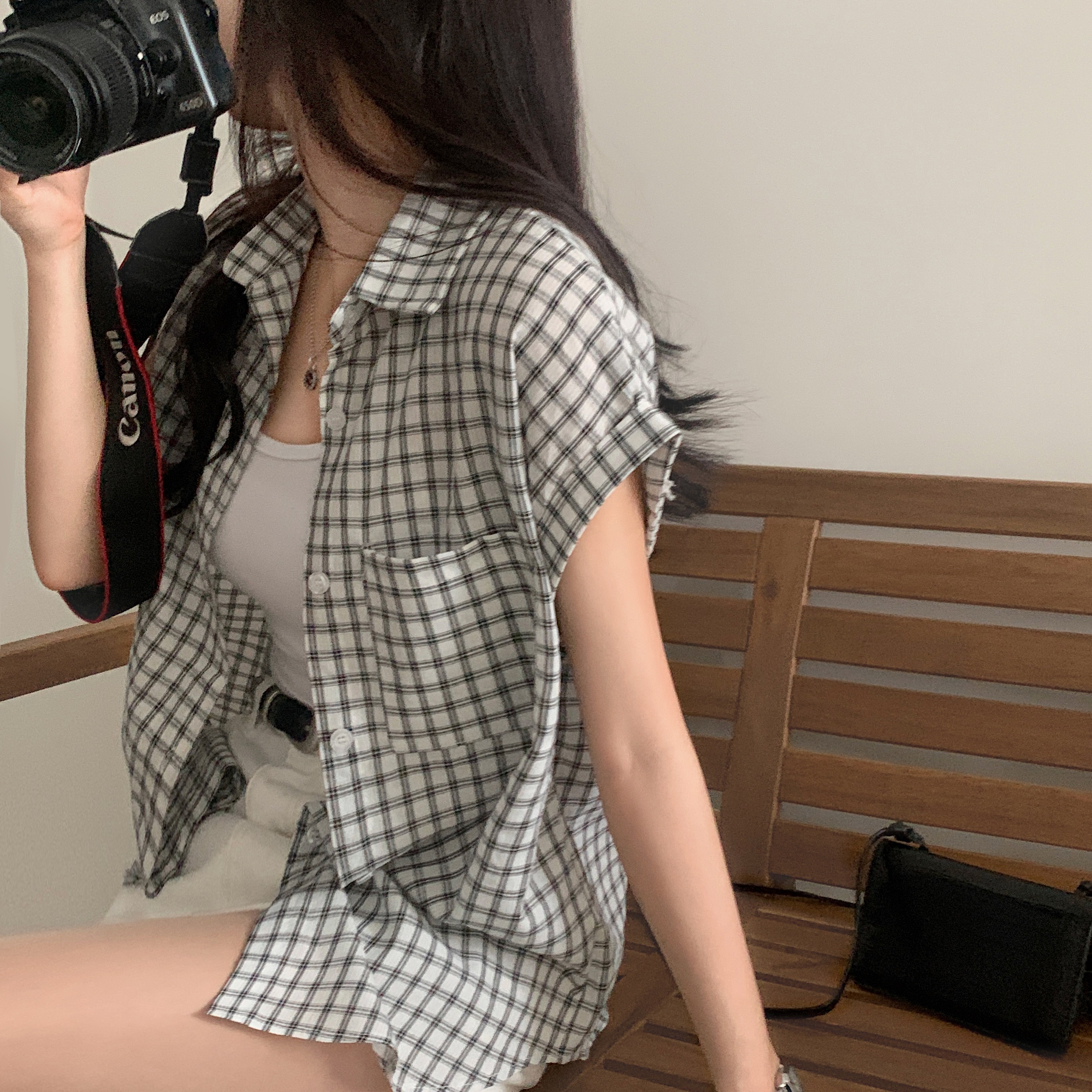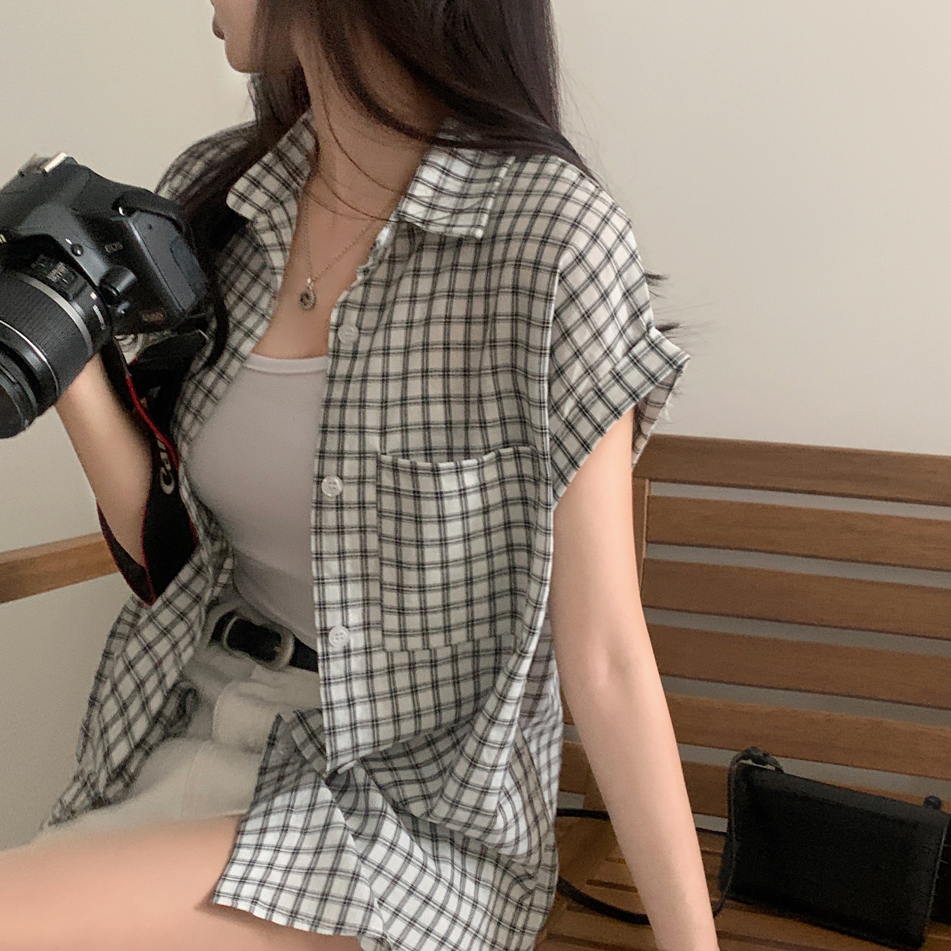 ヴィンテージチェックロールアップ半袖シャツ-3color
