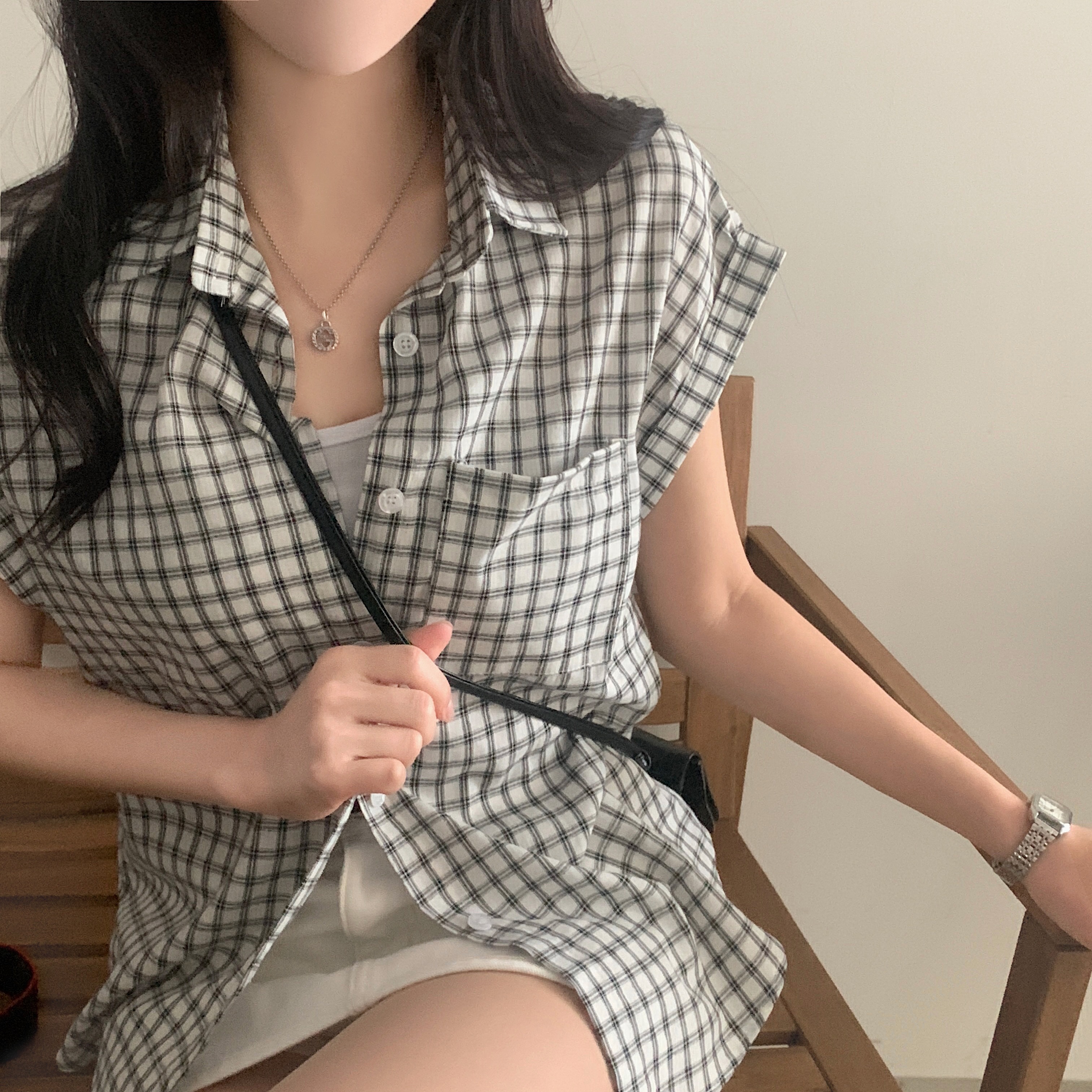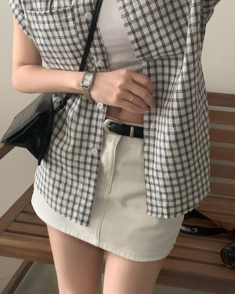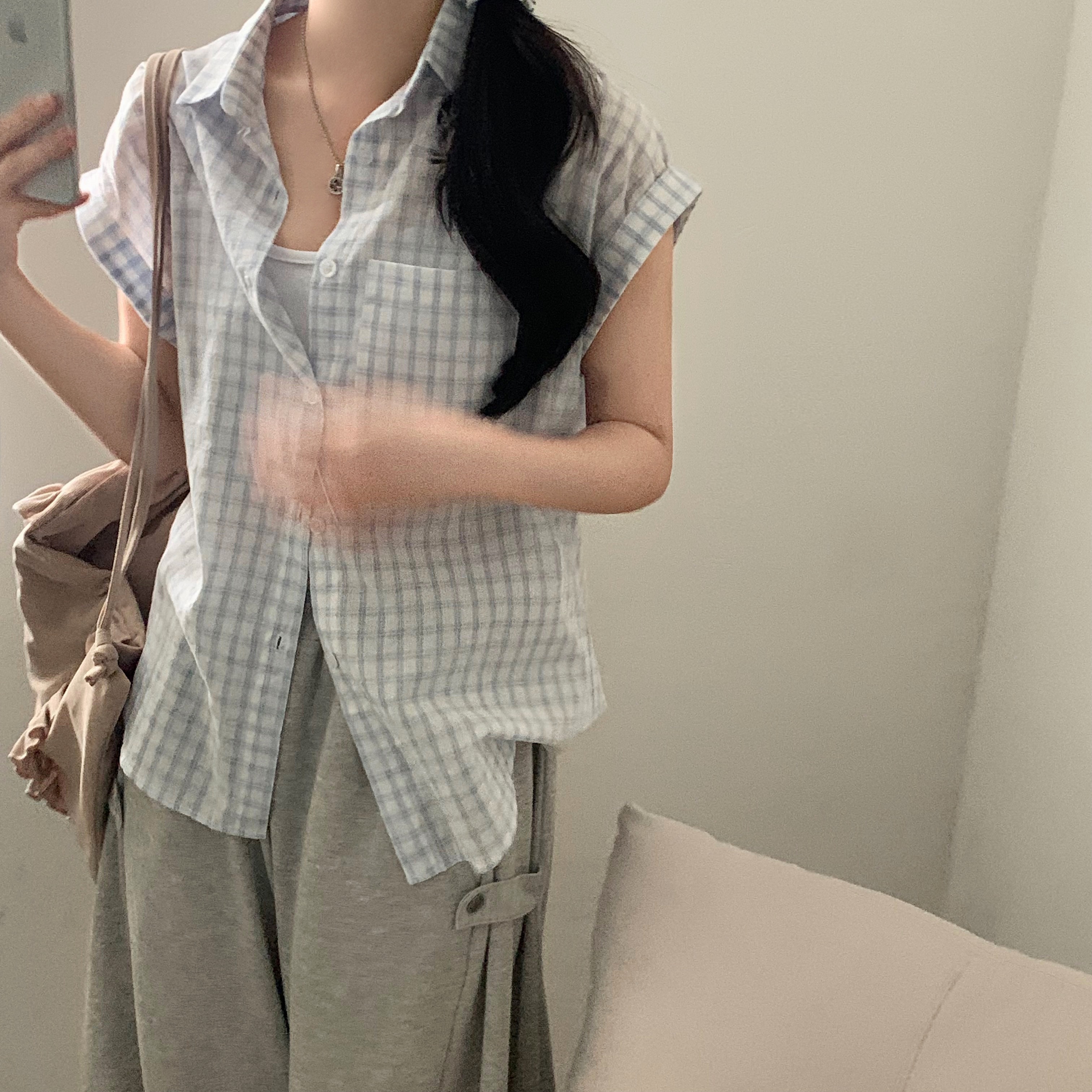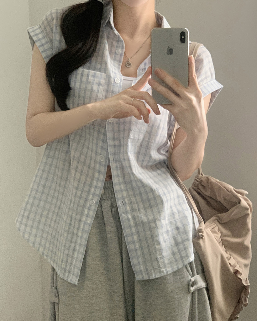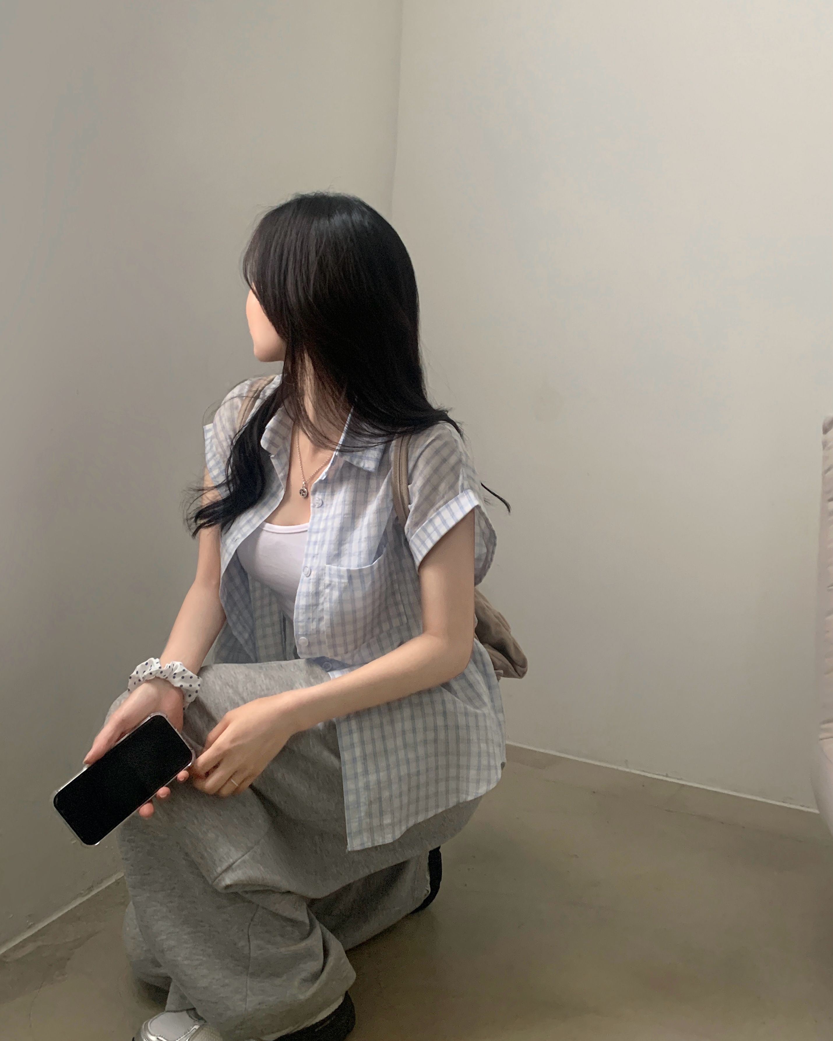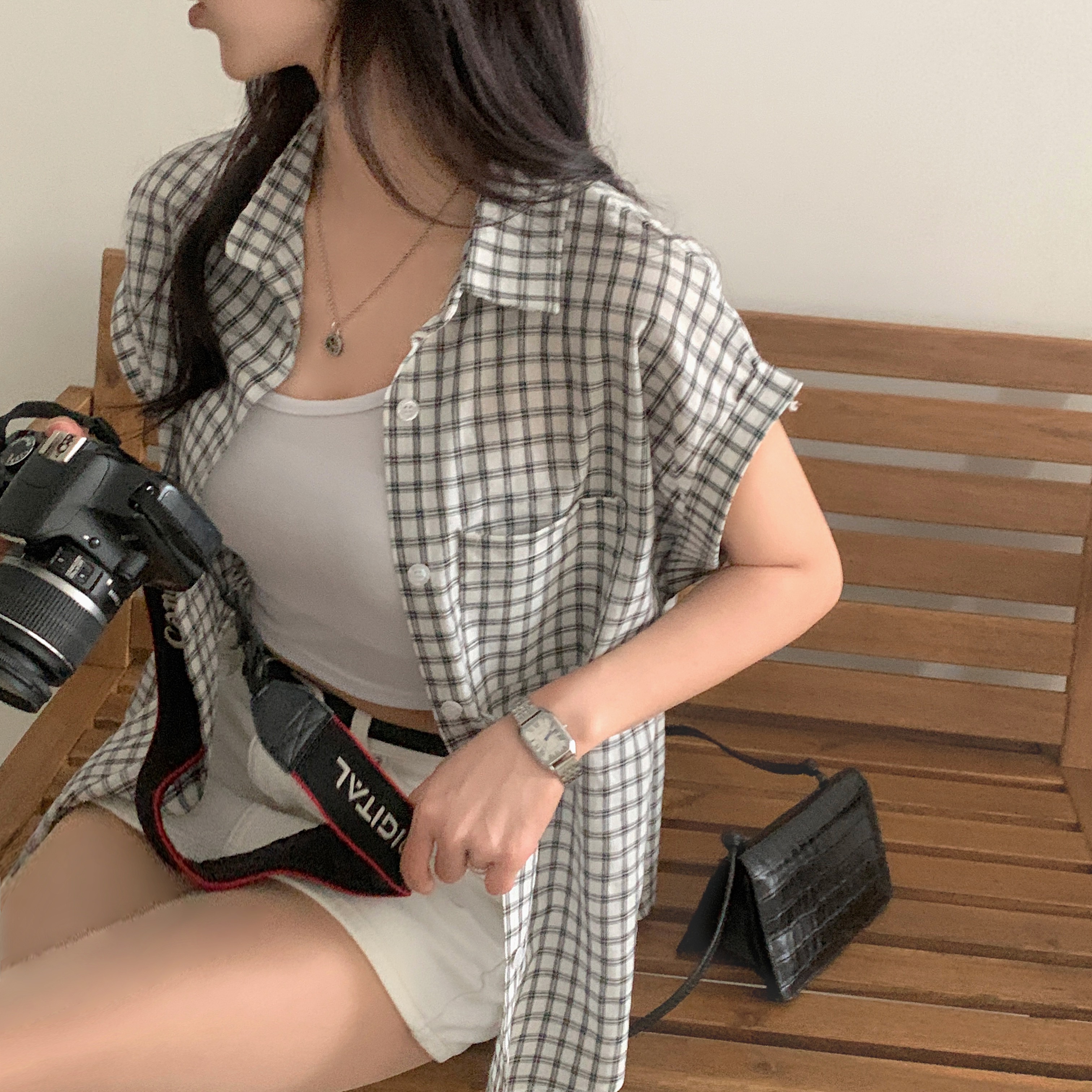 ヴィンテージチェックロールアップ半袖シャツ-3color