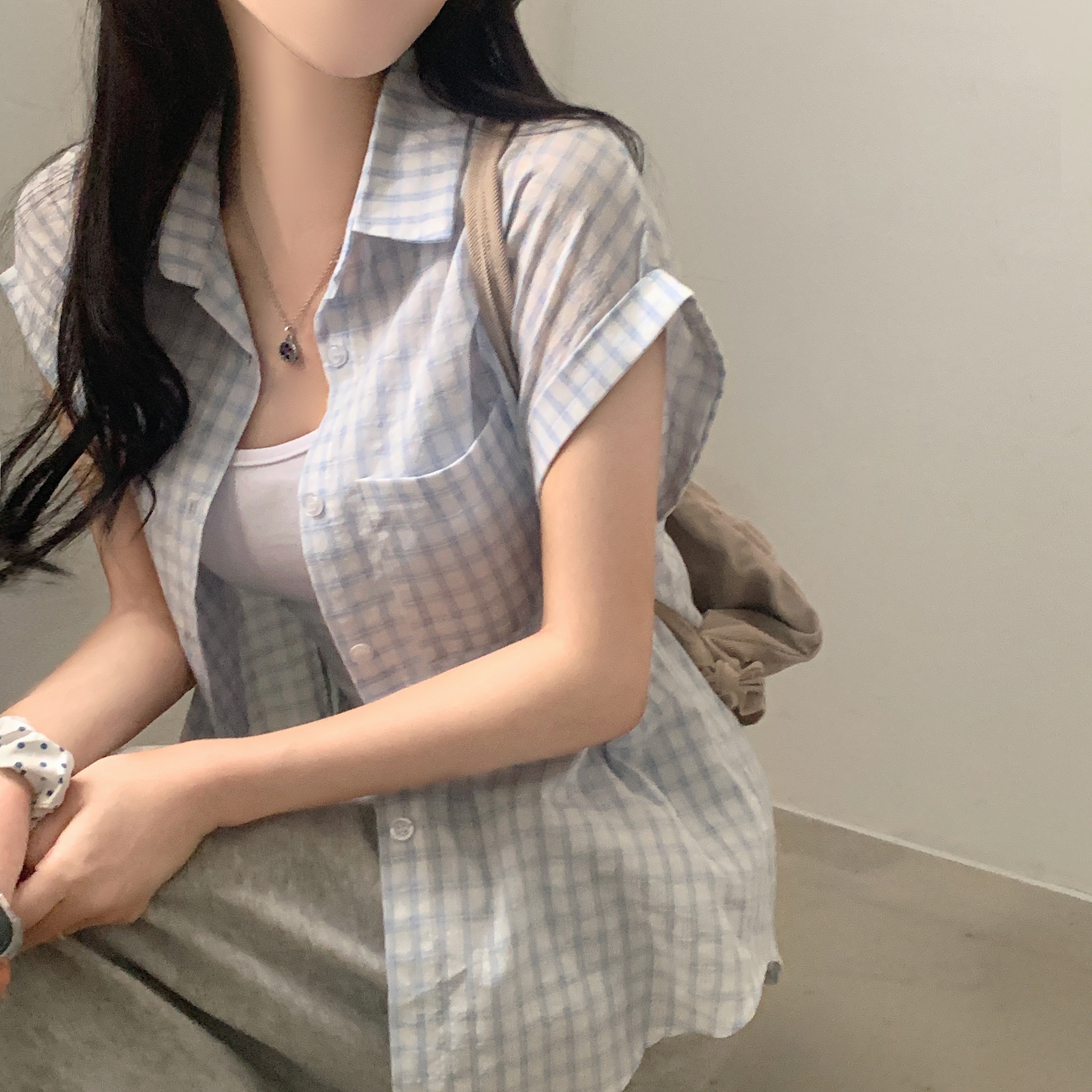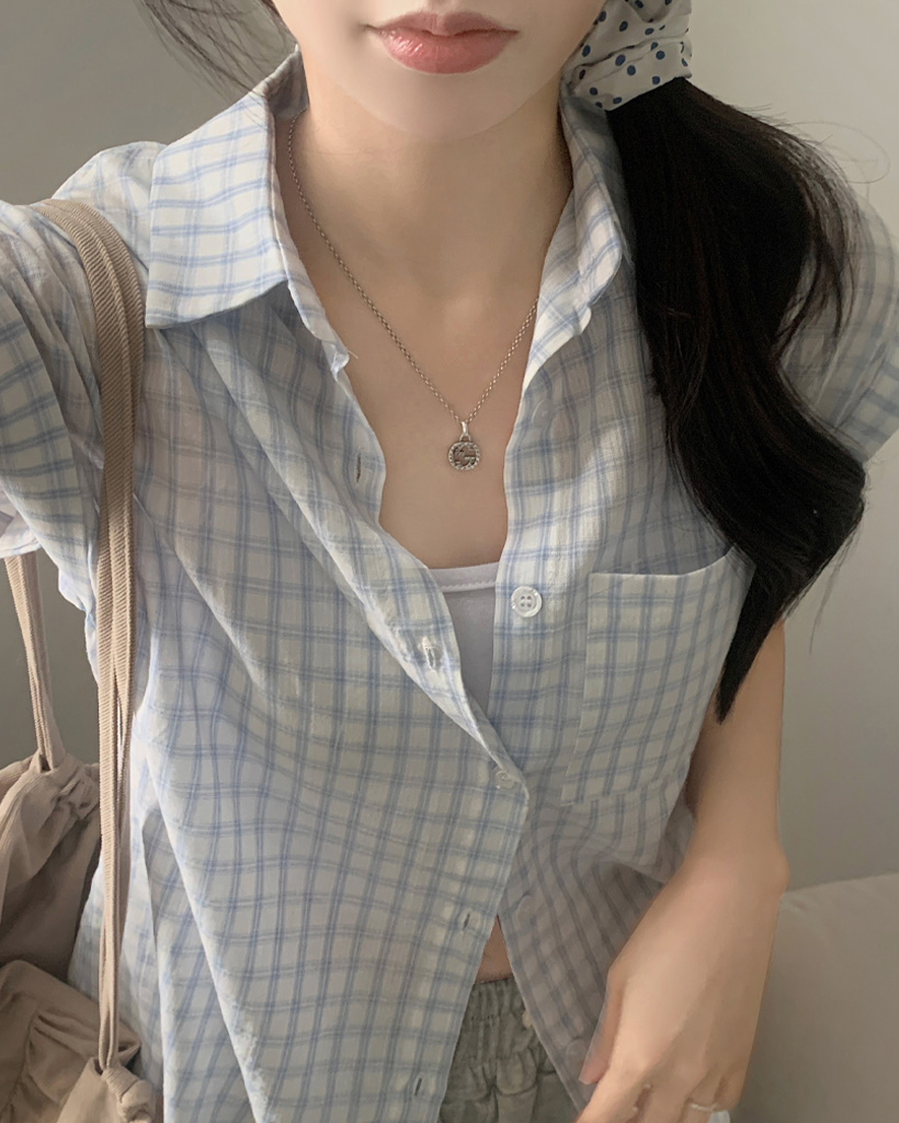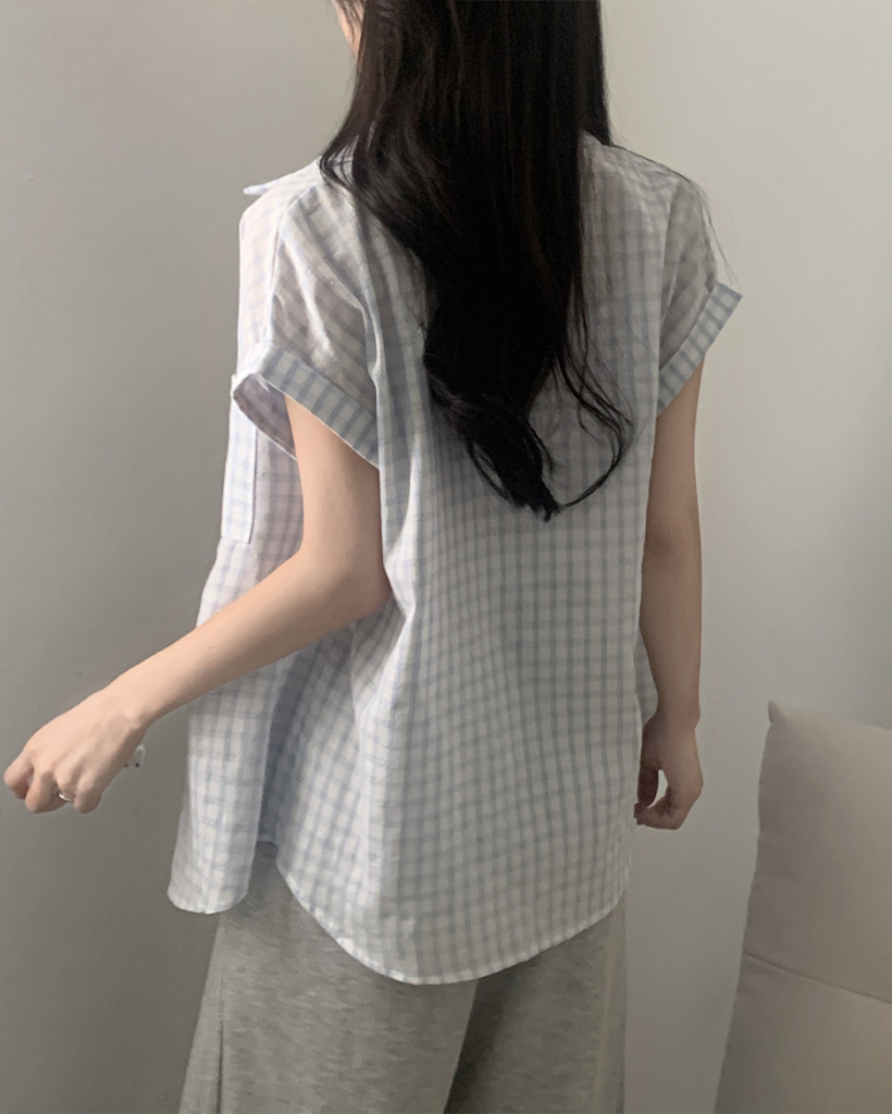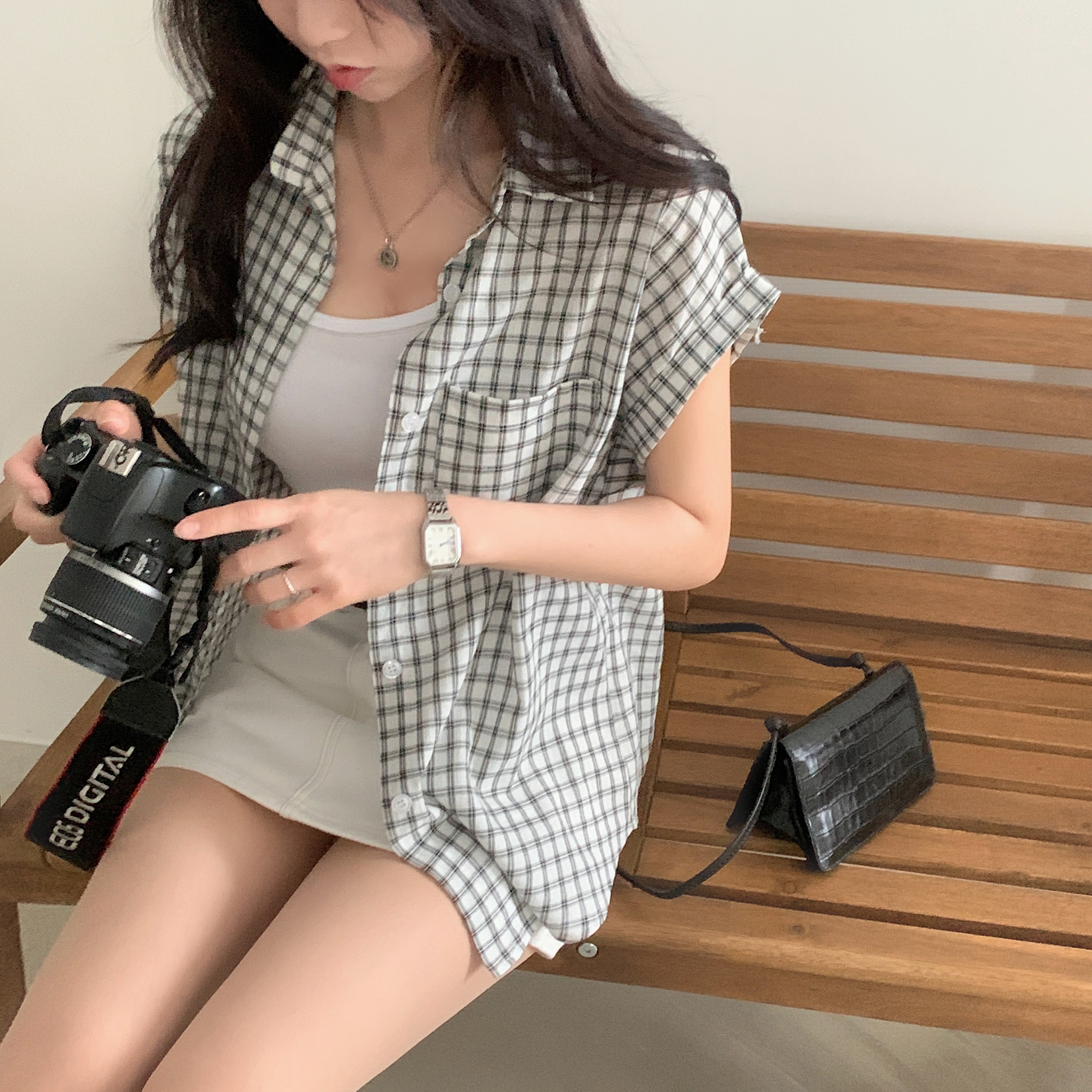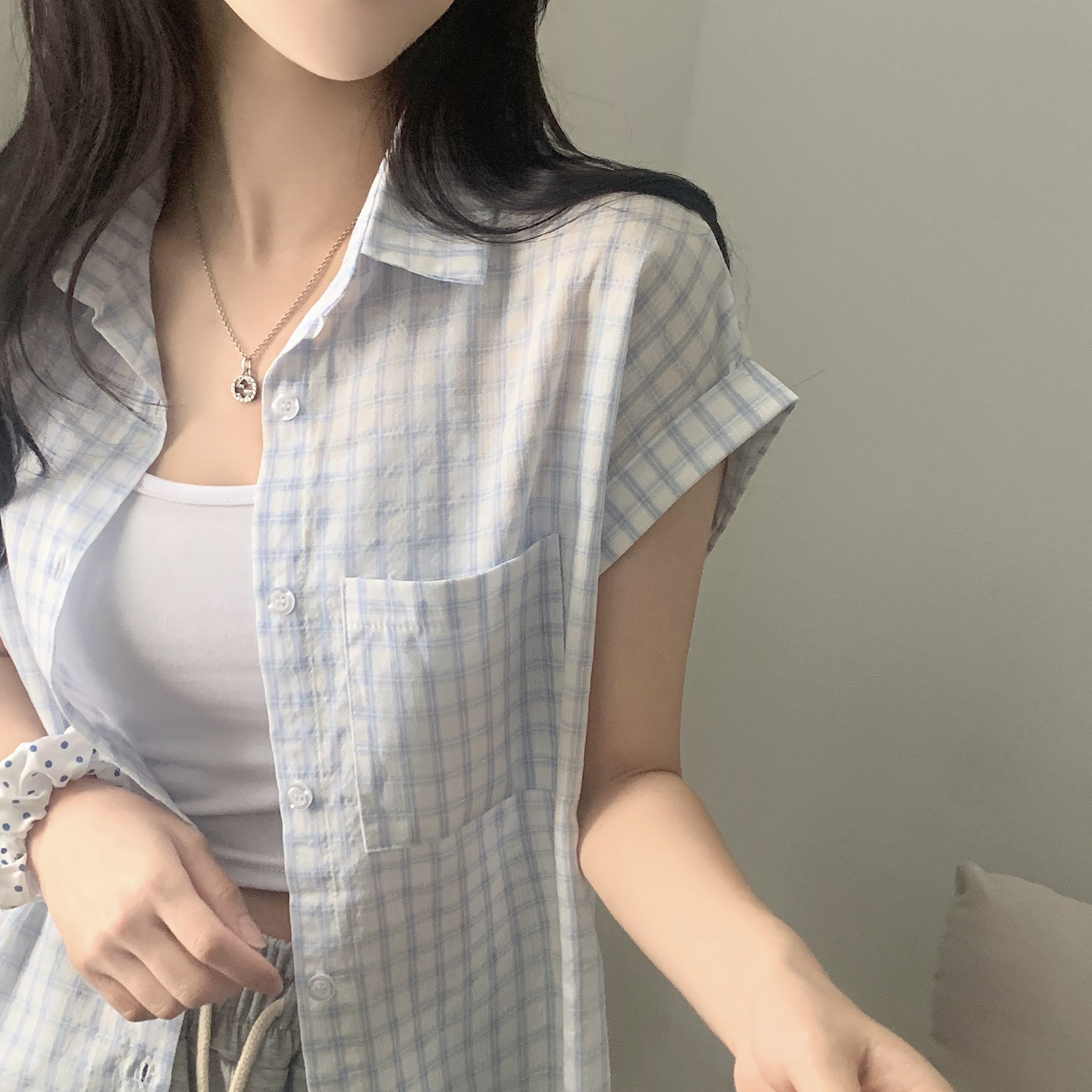 ヴィンテージチェックロールアップ半袖シャツ-3color