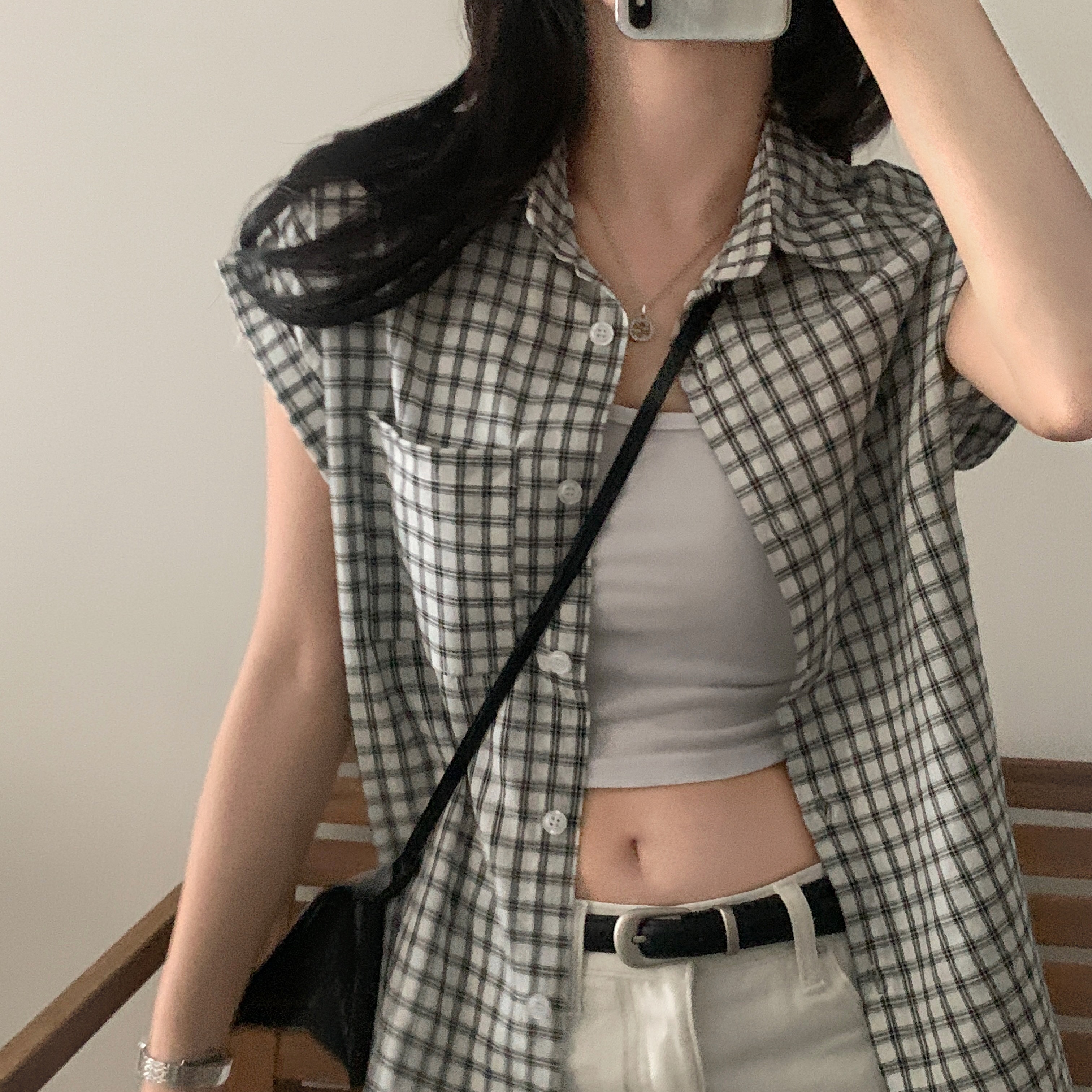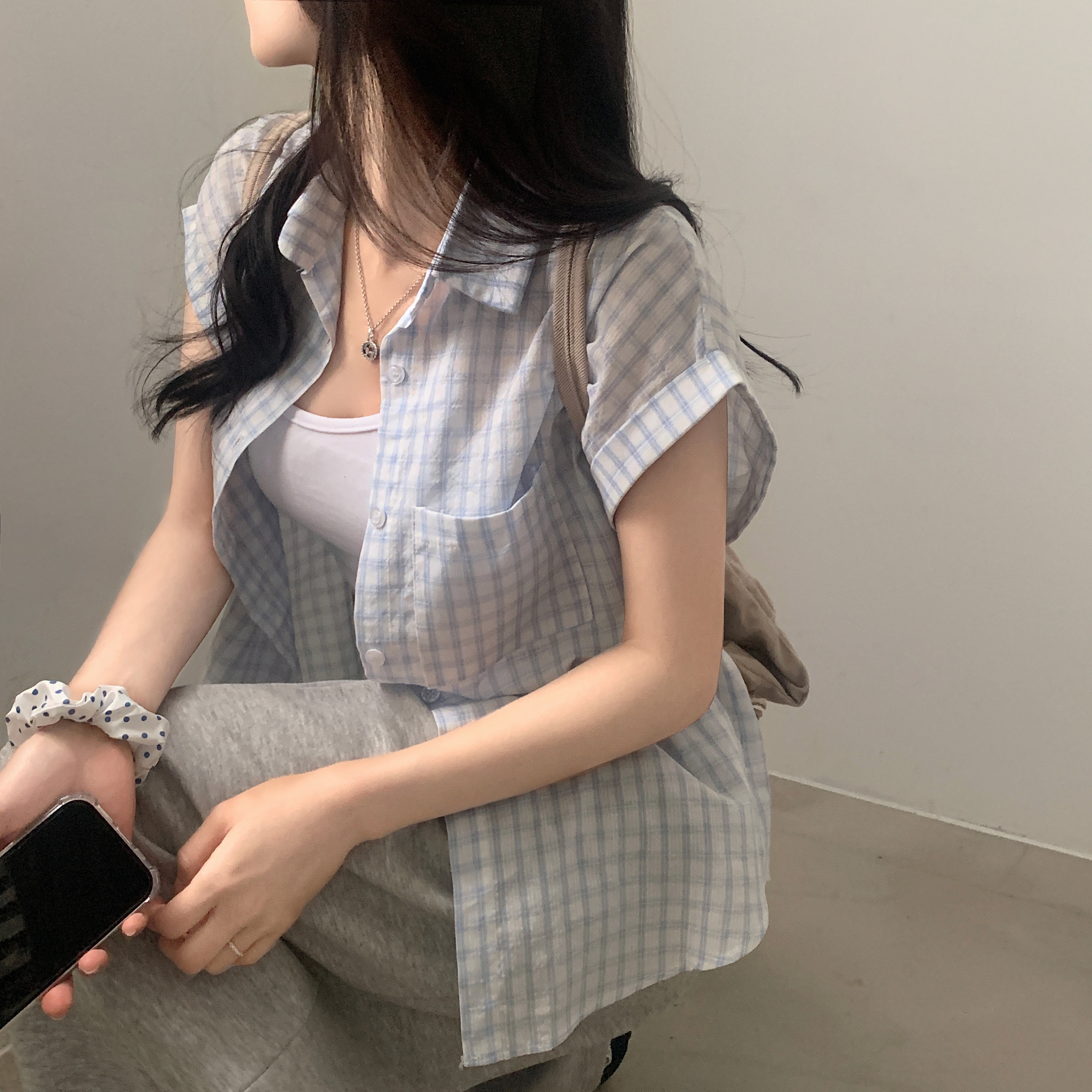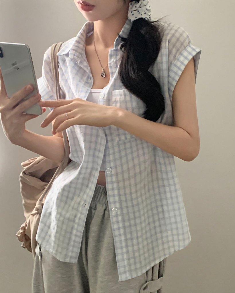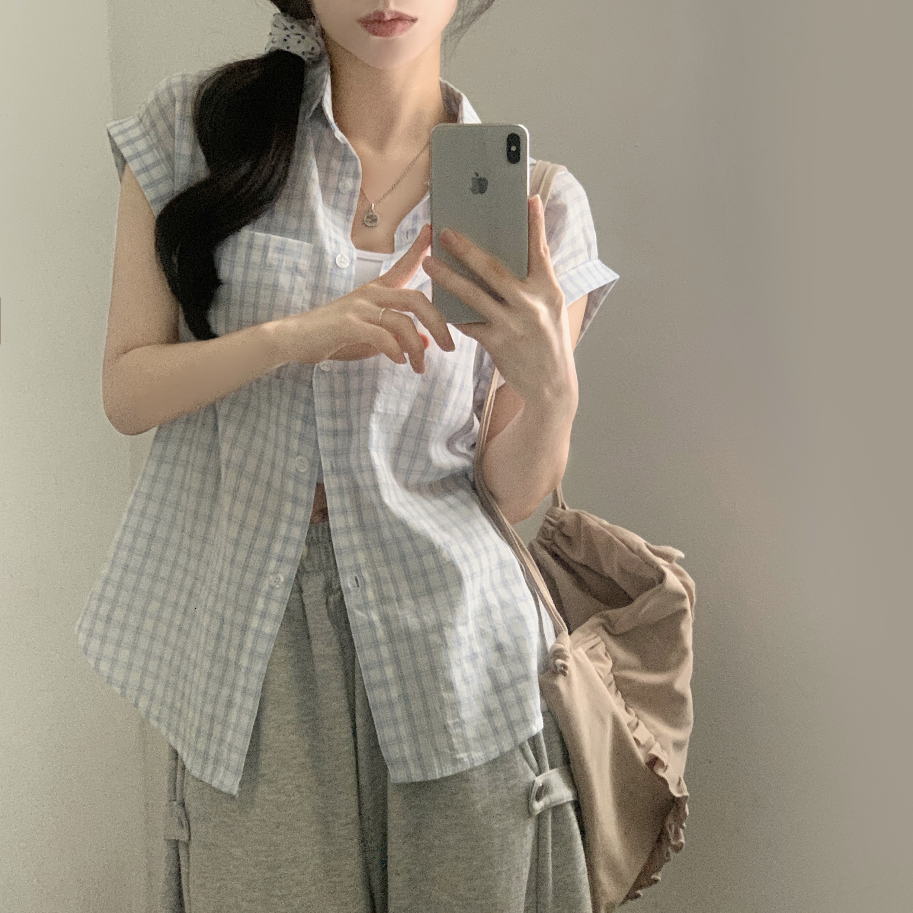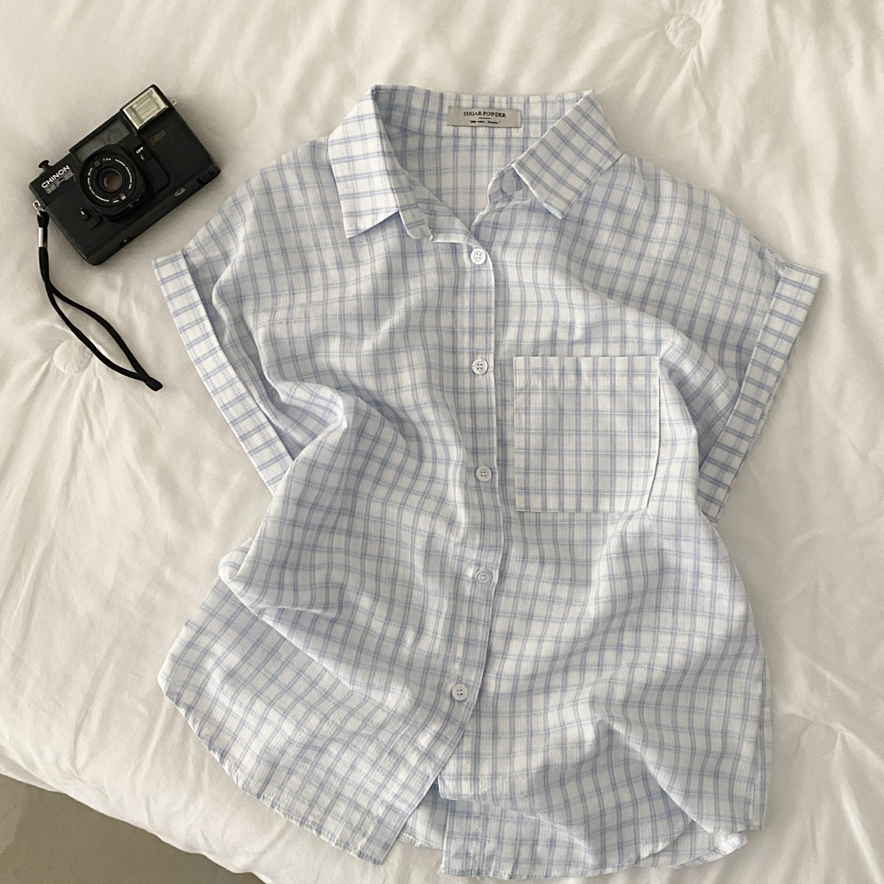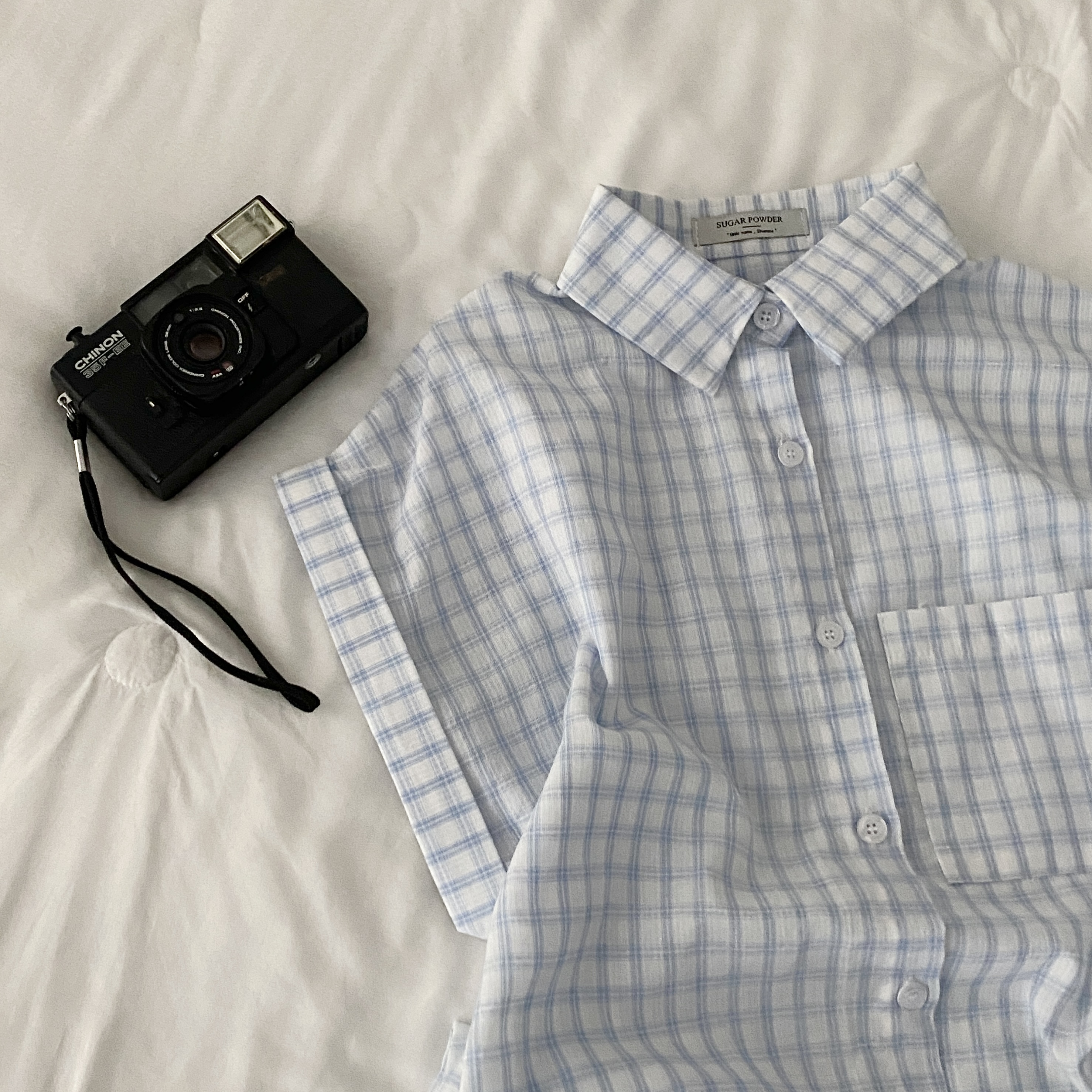 ヴィンテージチェックロールアップ半袖シャツ-3color