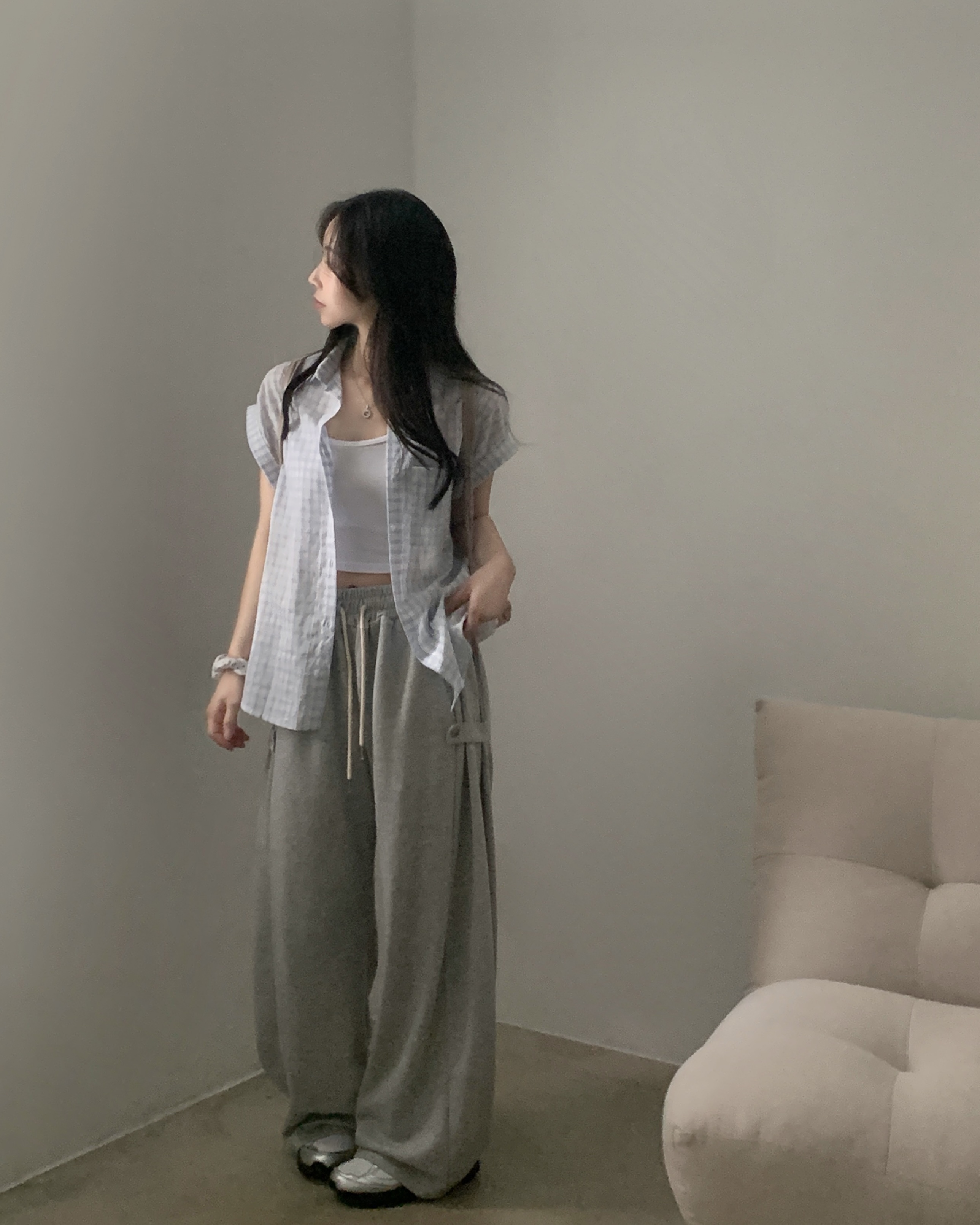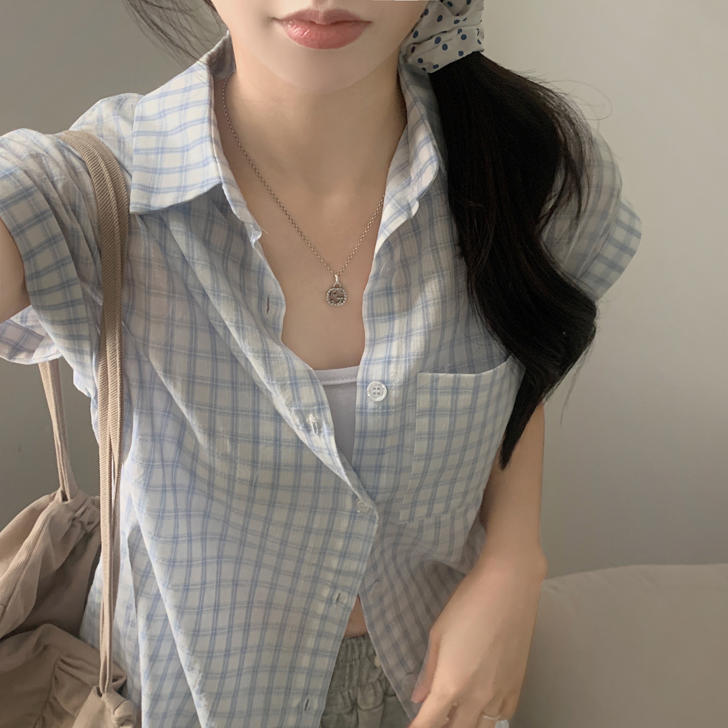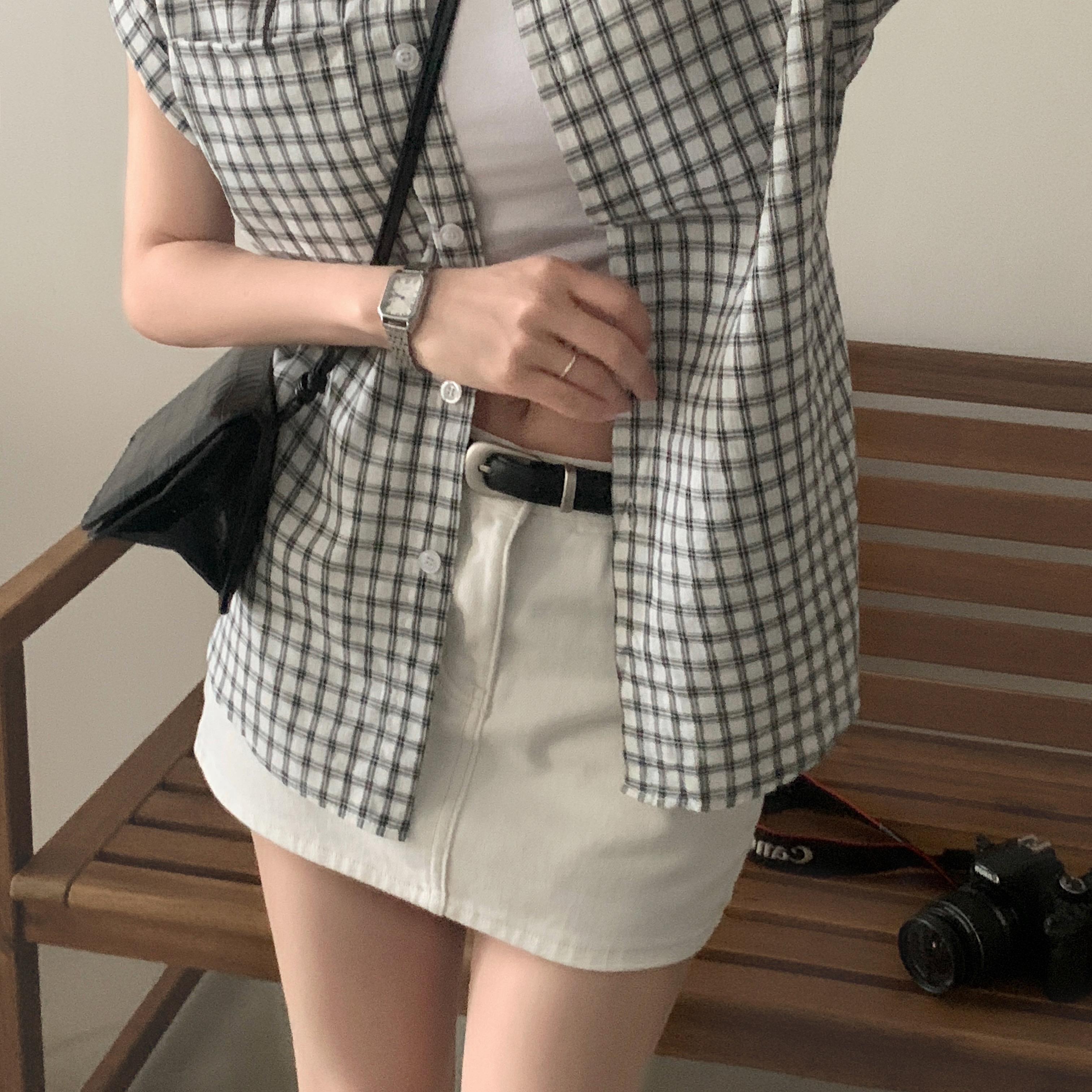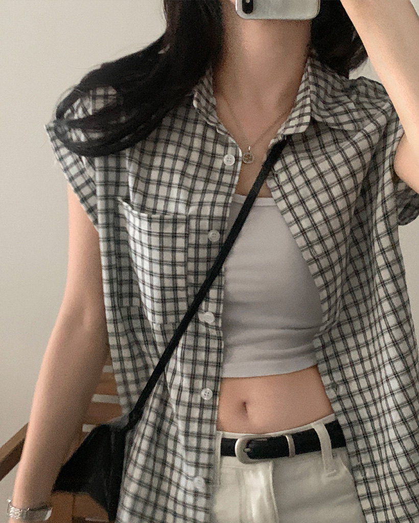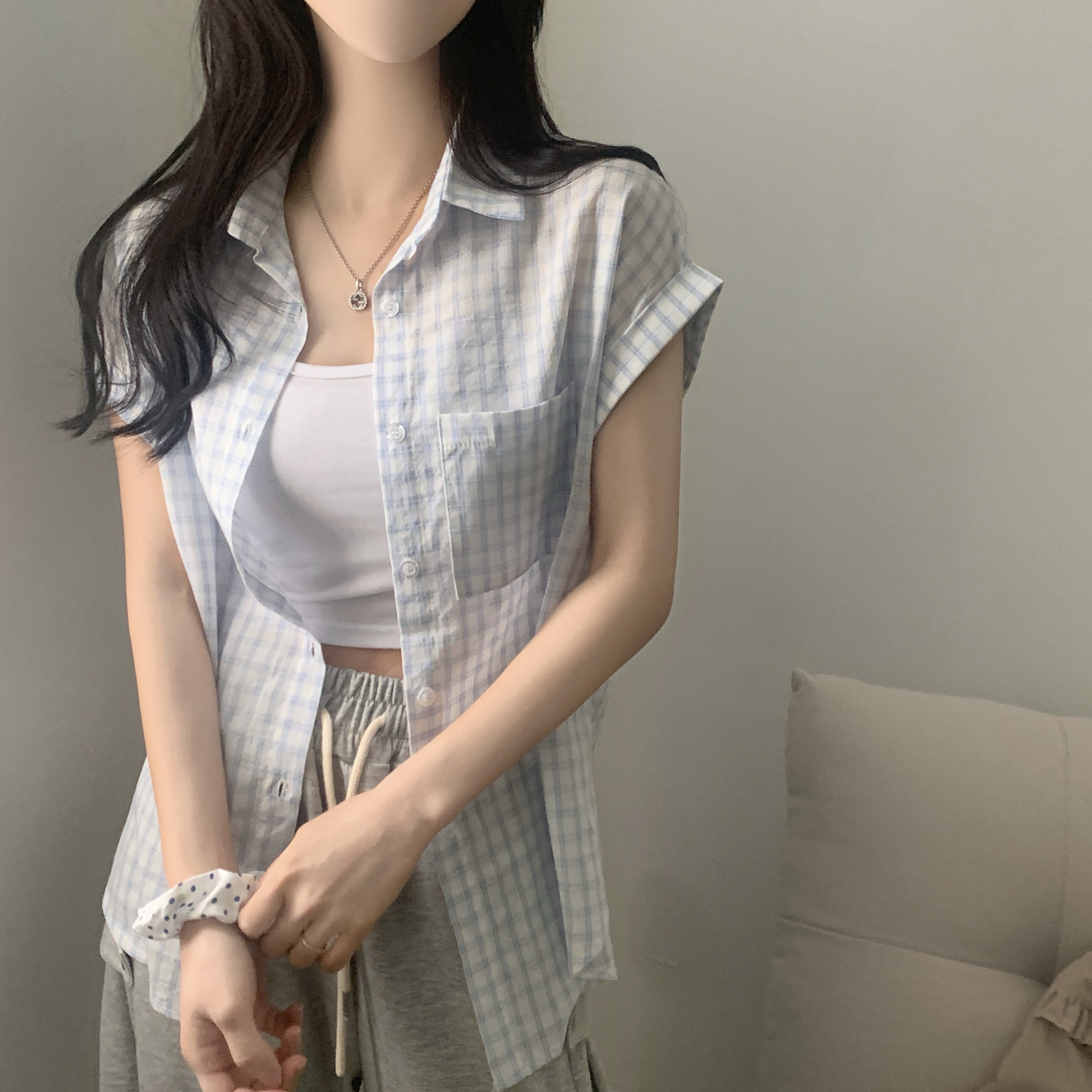 ヴィンテージチェックロールアップ半袖シャツ-3color