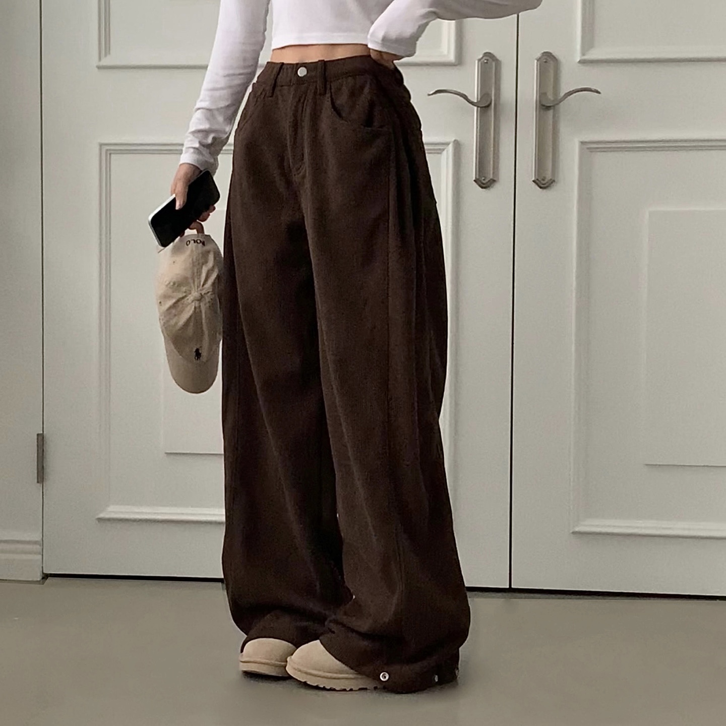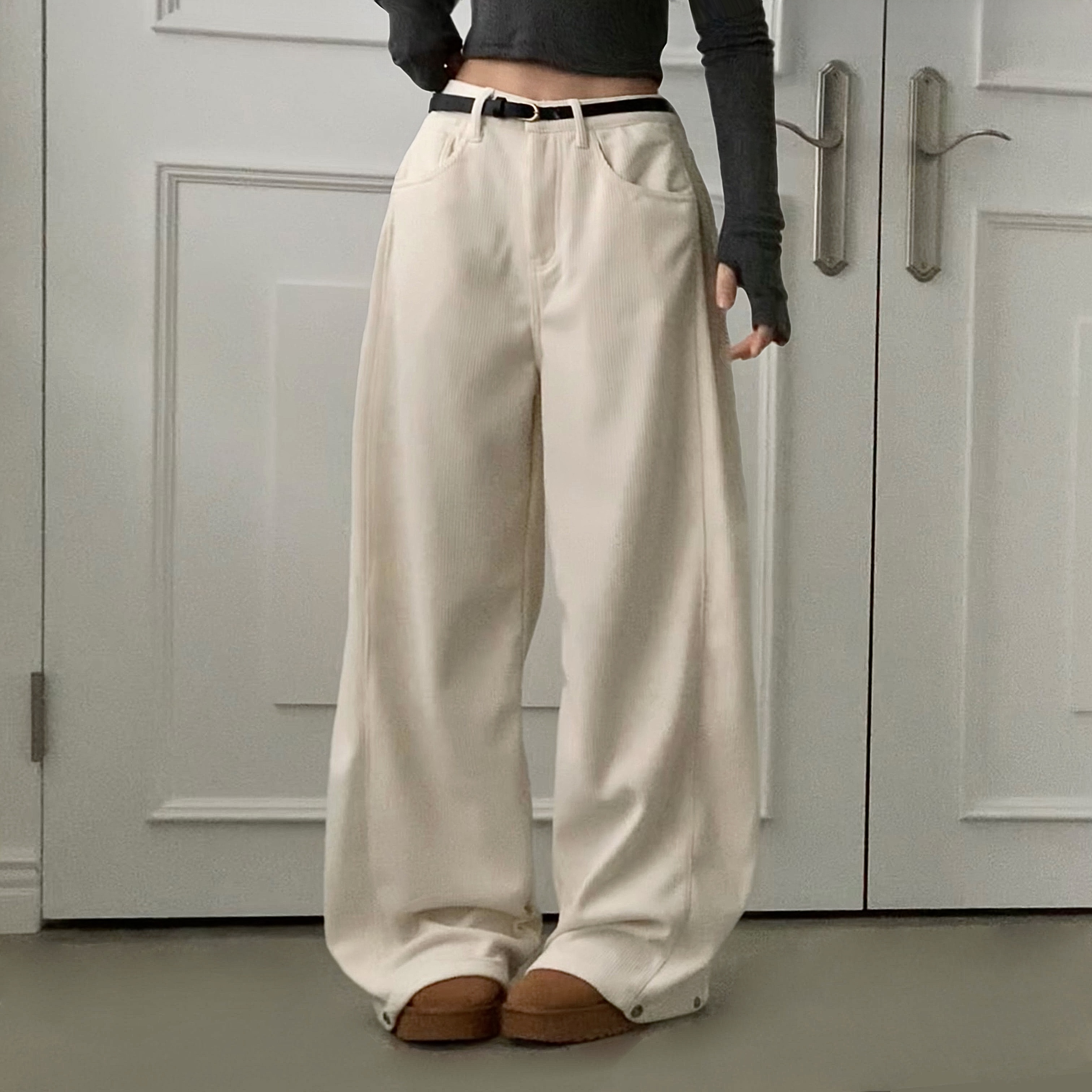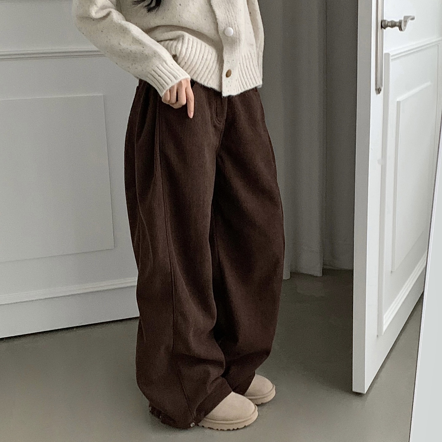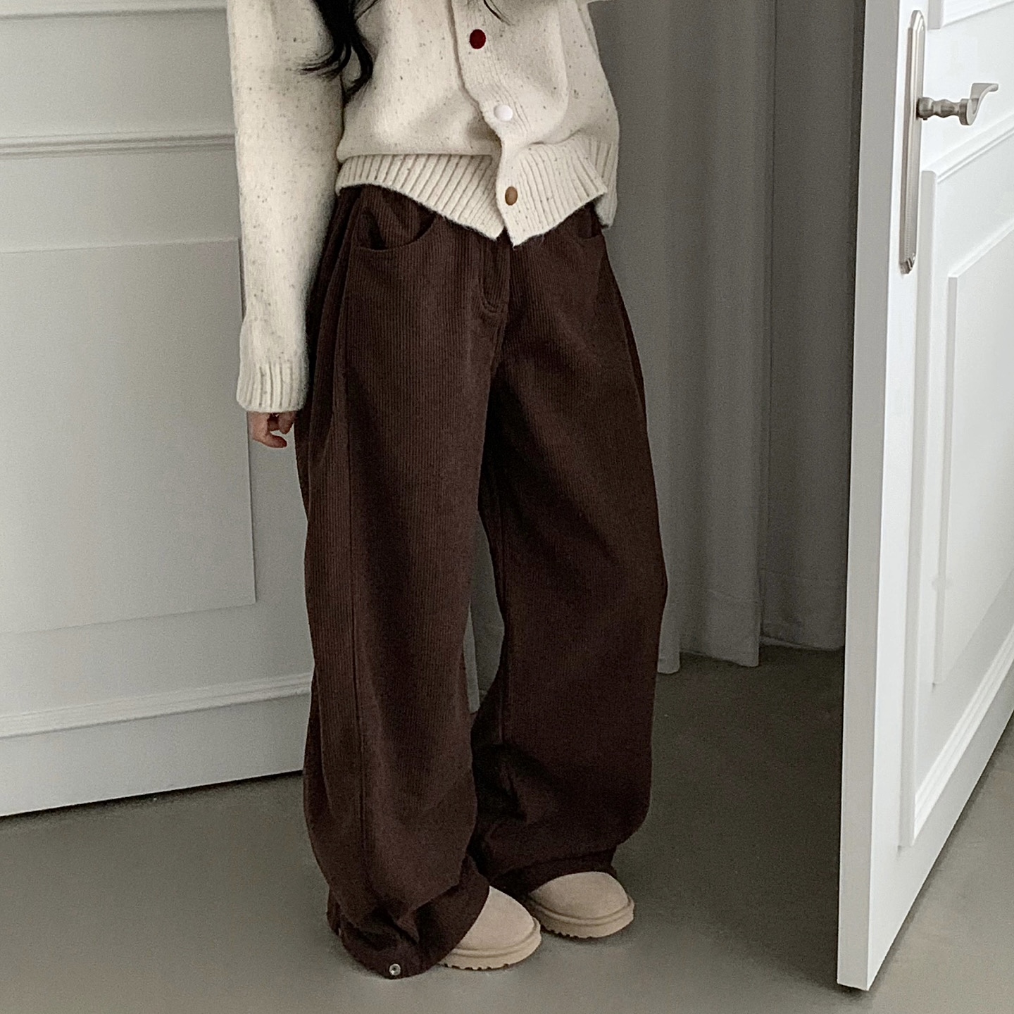 ヴィンテージコーデュロイ裏起毛ワイドロングパンツ