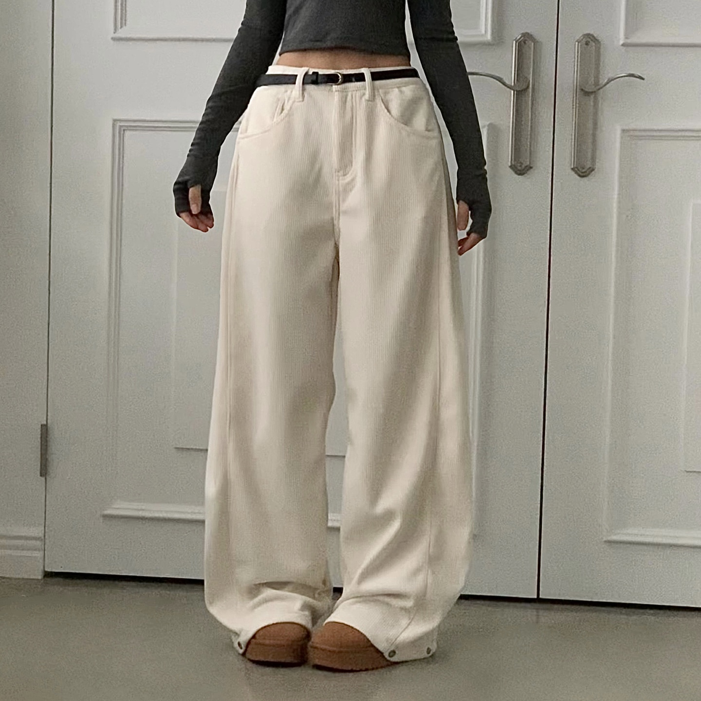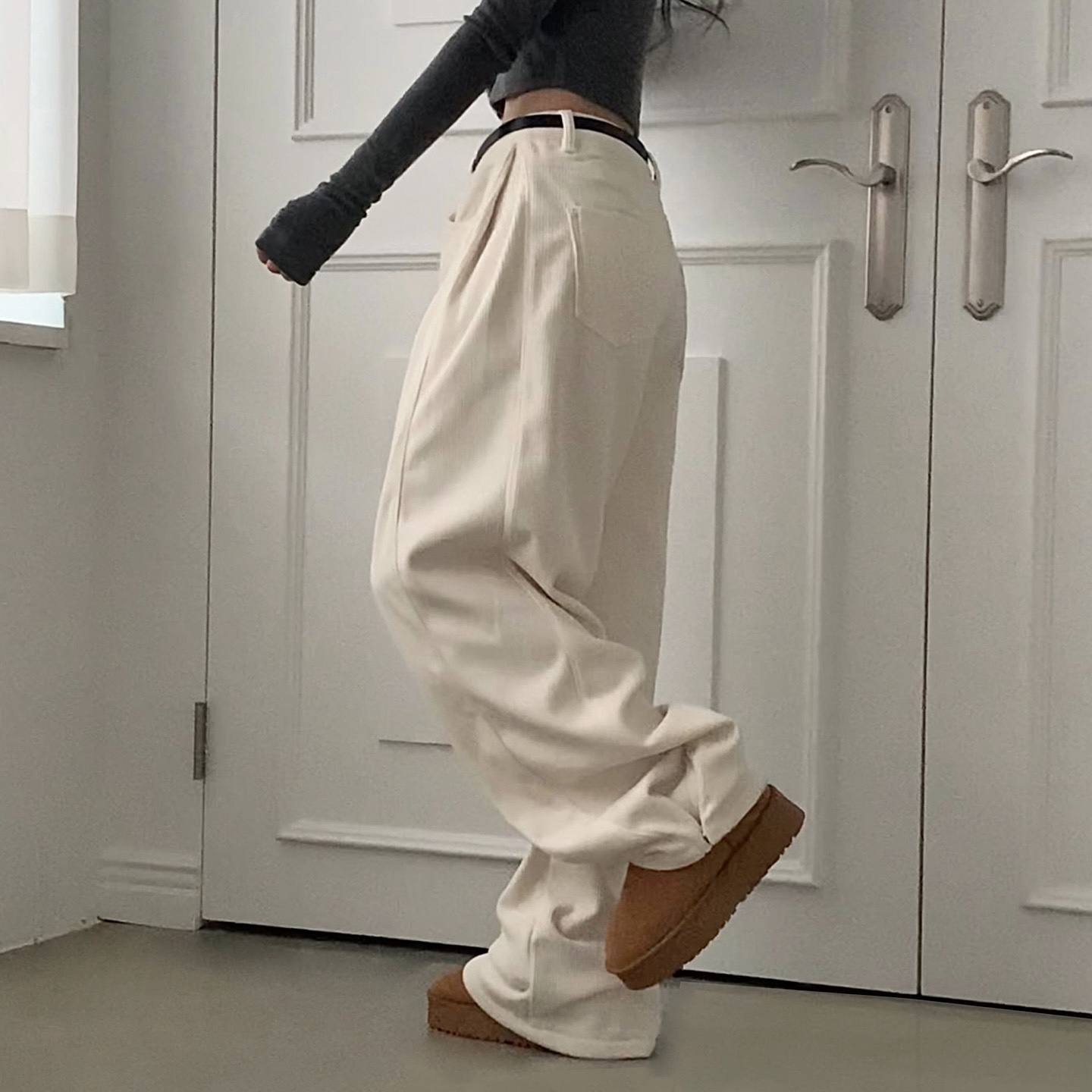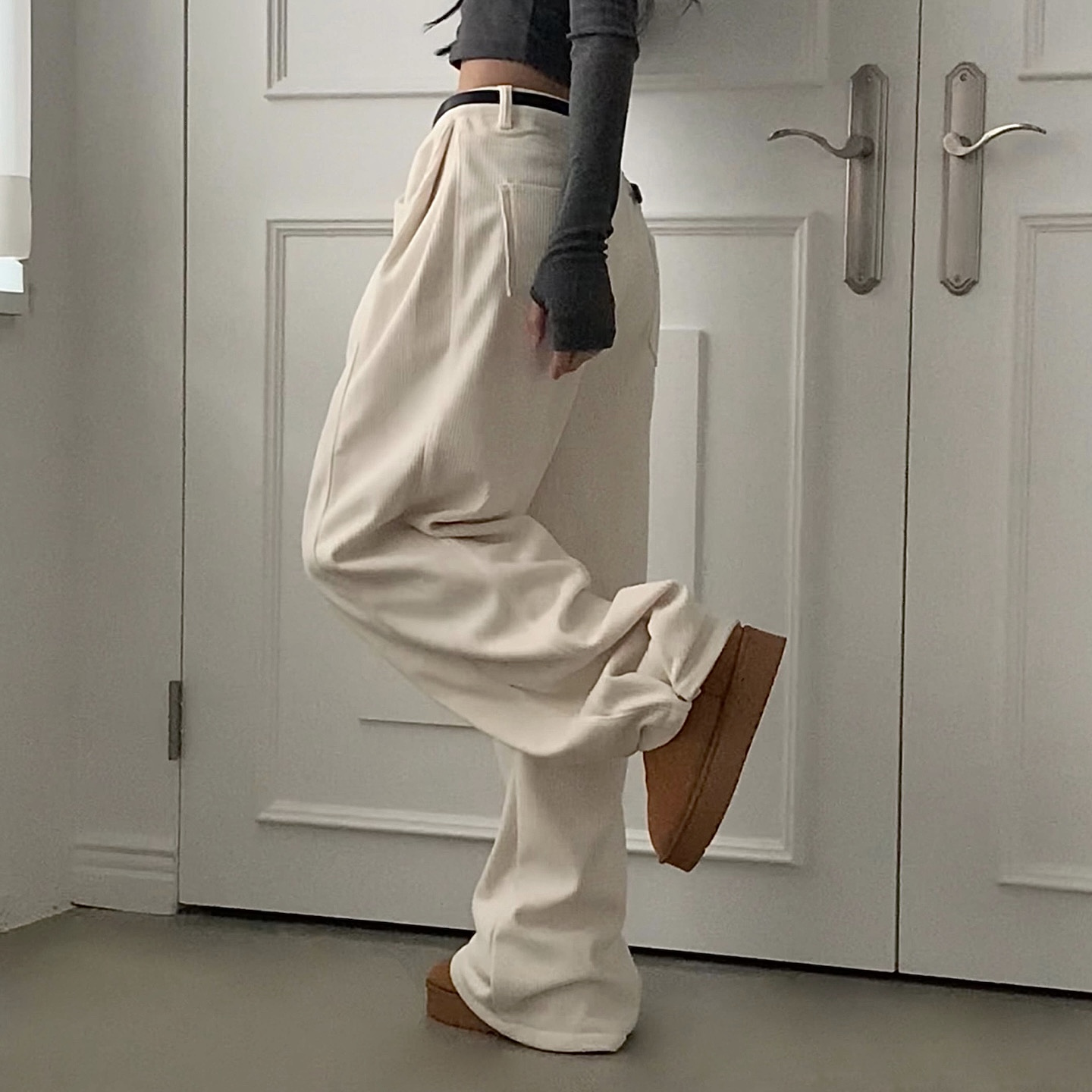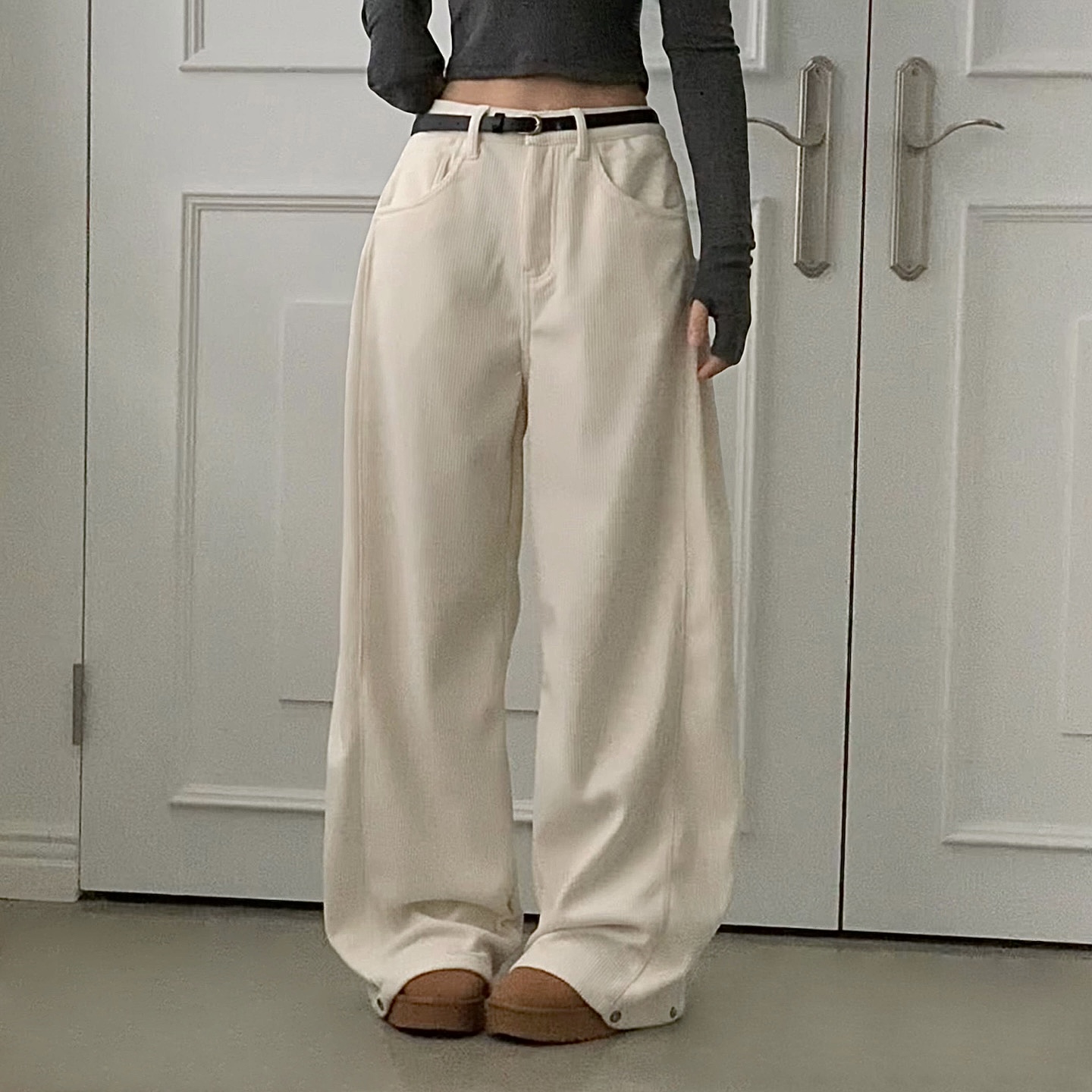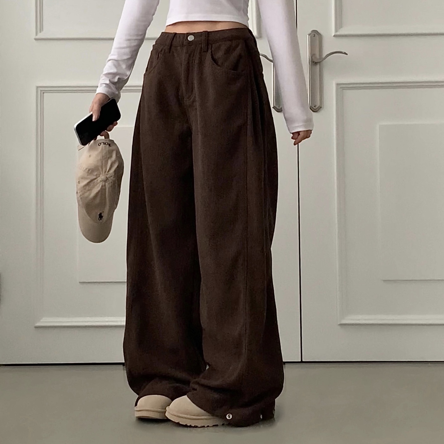 ヴィンテージコーデュロイ裏起毛ワイドロングパンツ