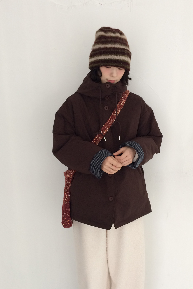 チェック柄 ミドル丈 パーカー