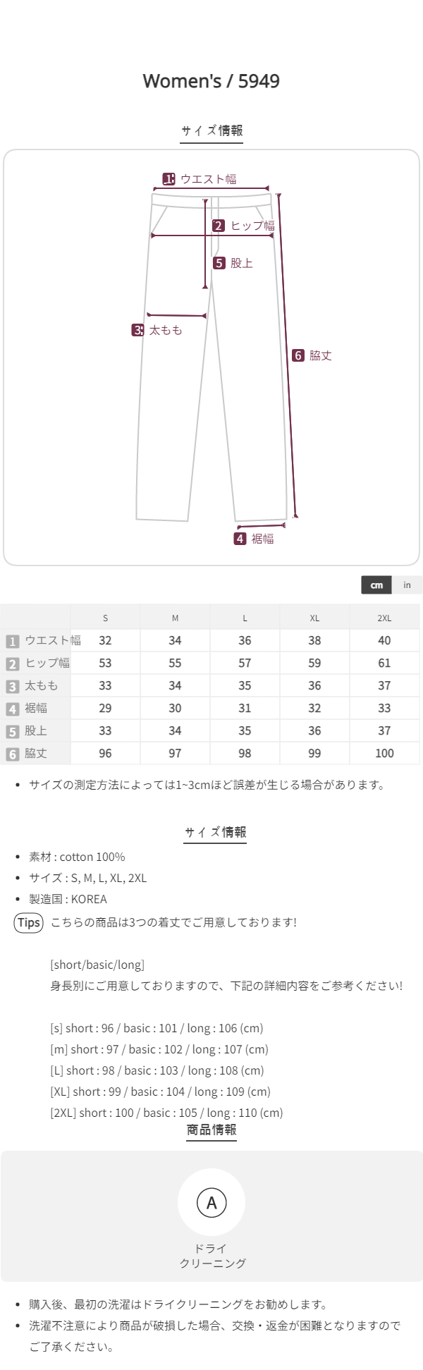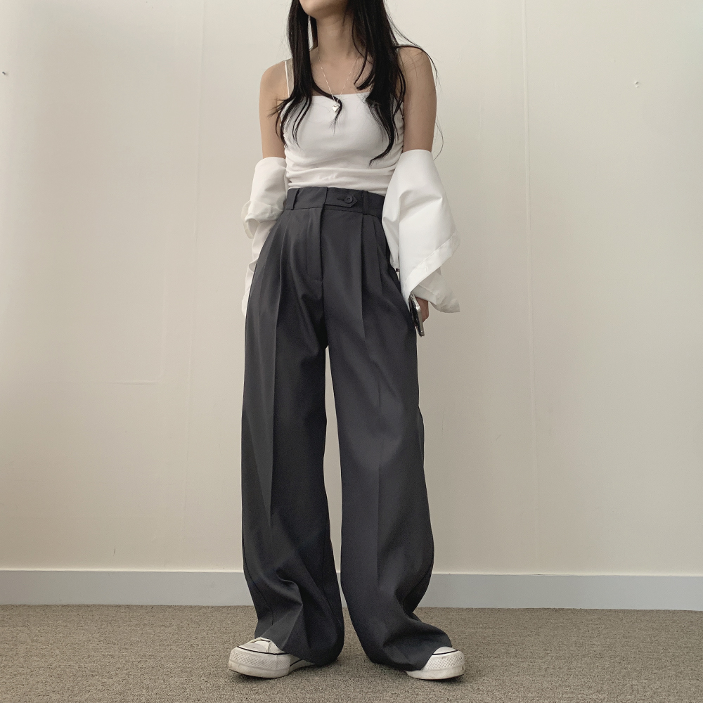 [short/basic/long][選べる着丈] ボタンワイドスラックス