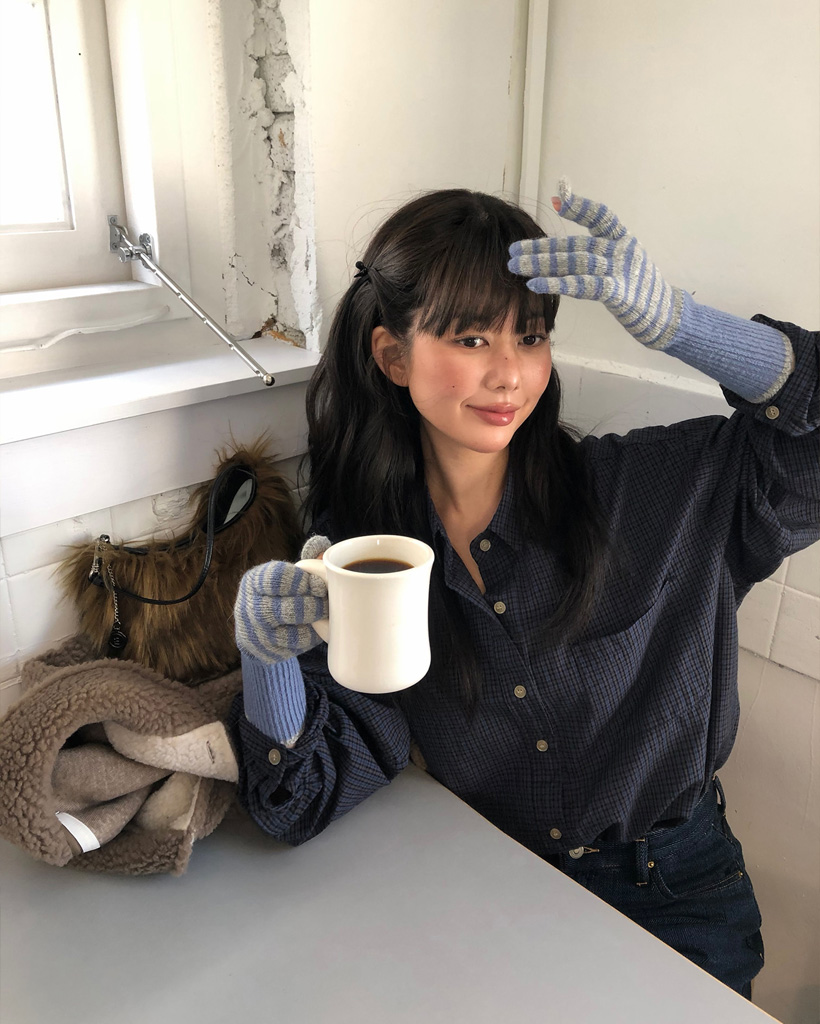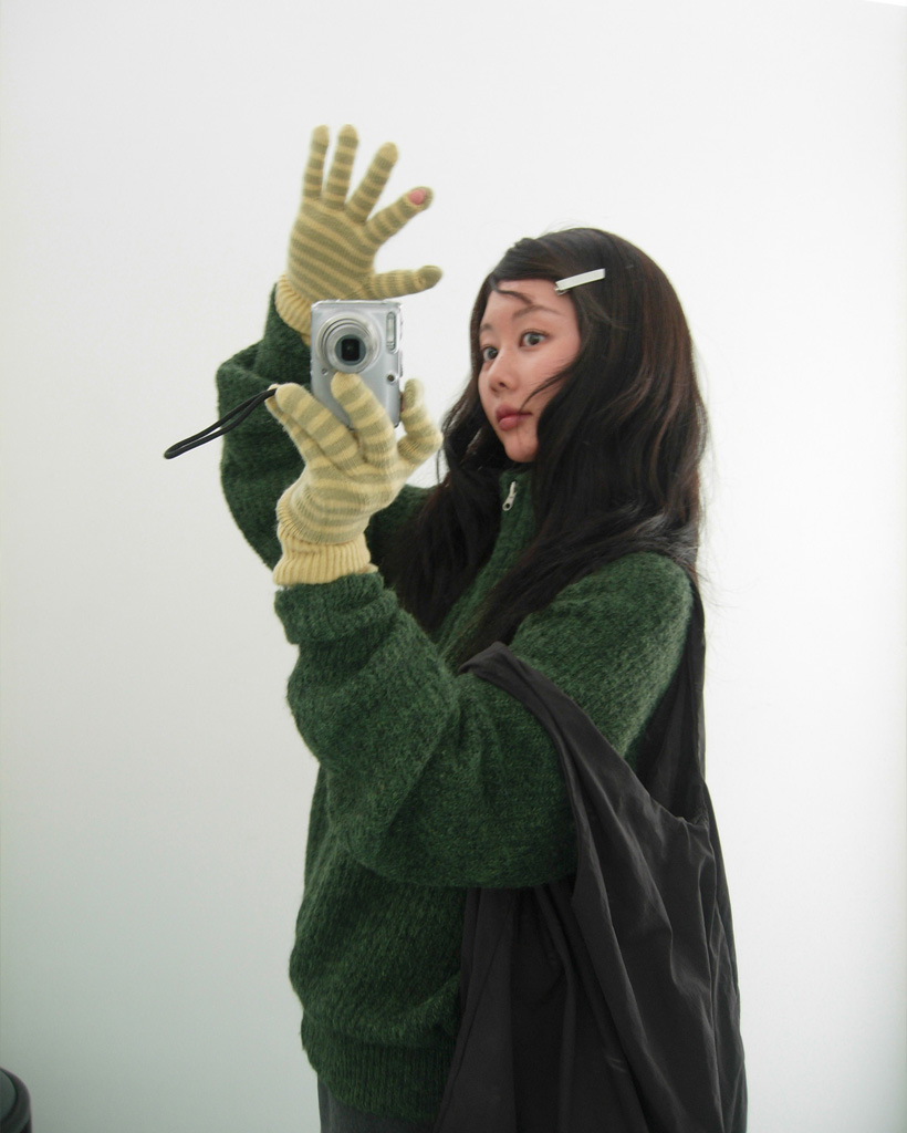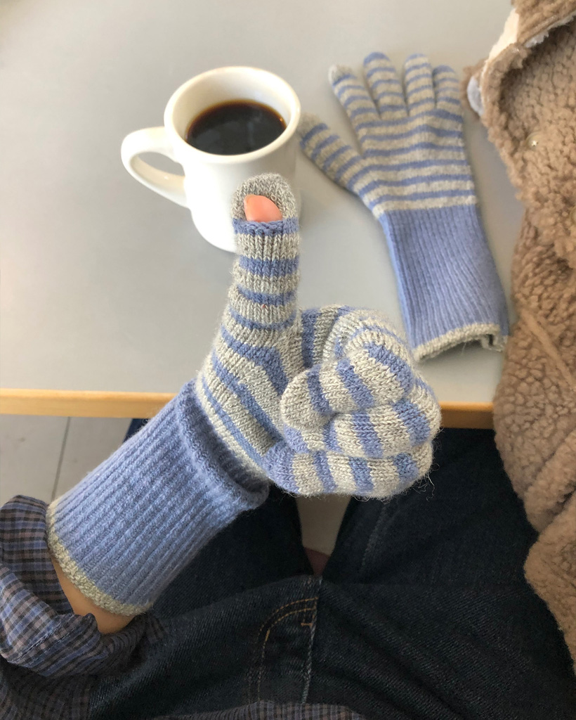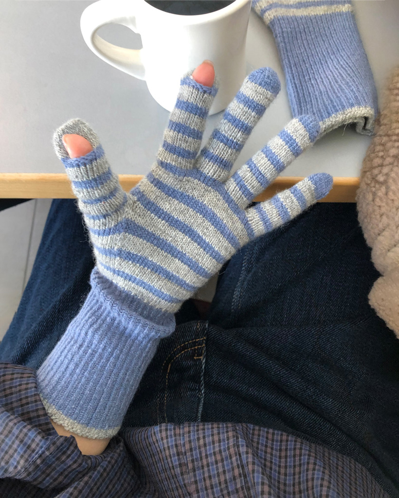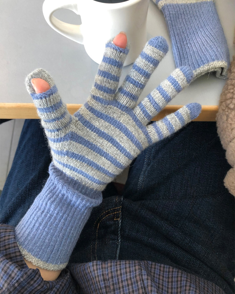 スマホ対応ふわふわニットグローブ (fingerhole gloves (3color))
