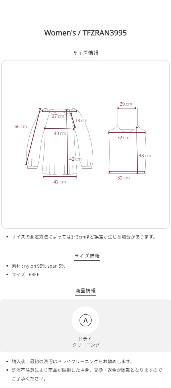 ニット類の場合、他の素材より誤差が生じる場合があります。