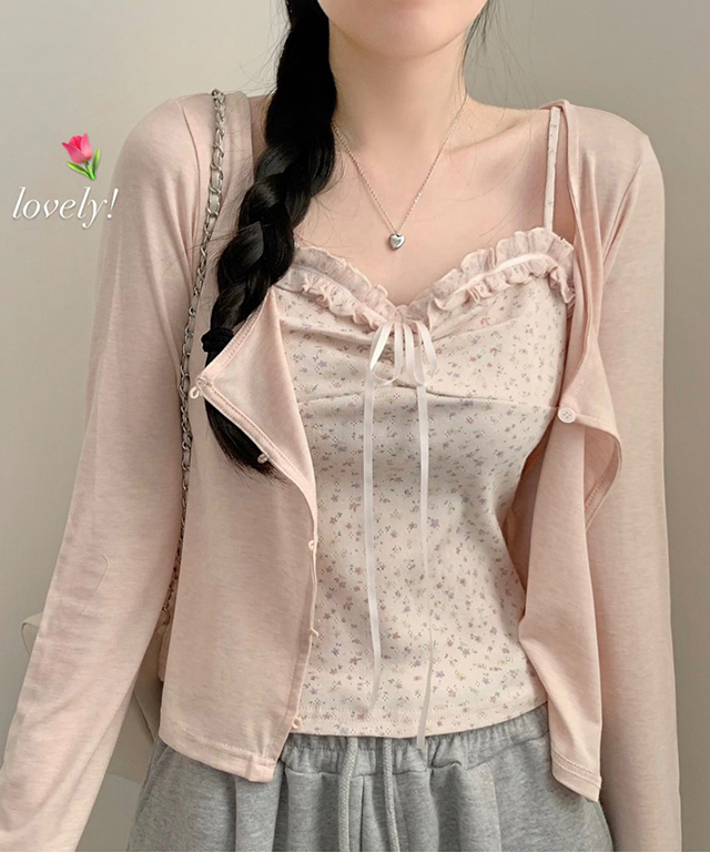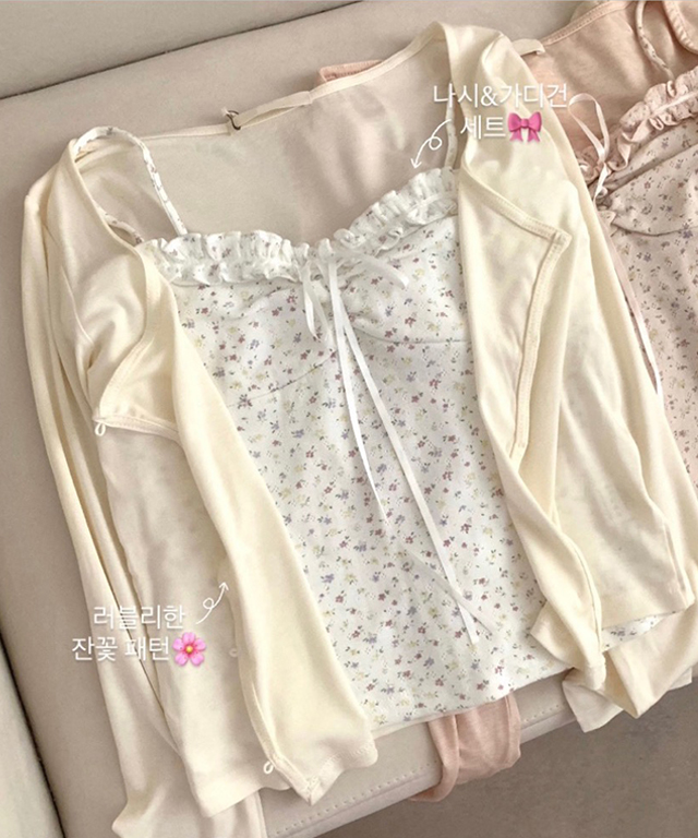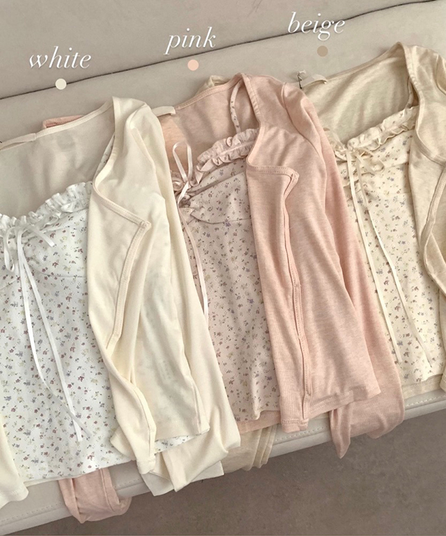 [SET](3color)フラワーリボンレースセットアップ