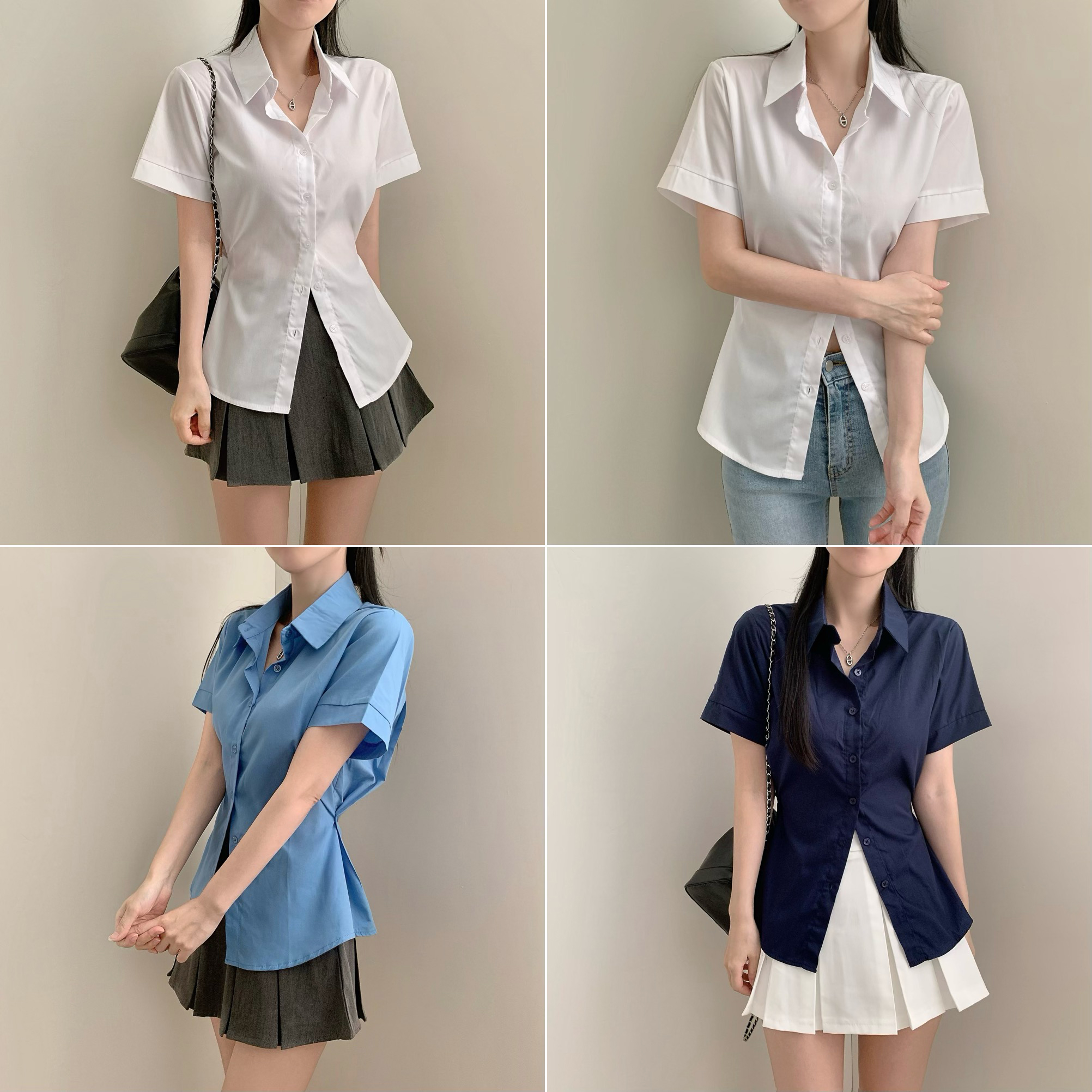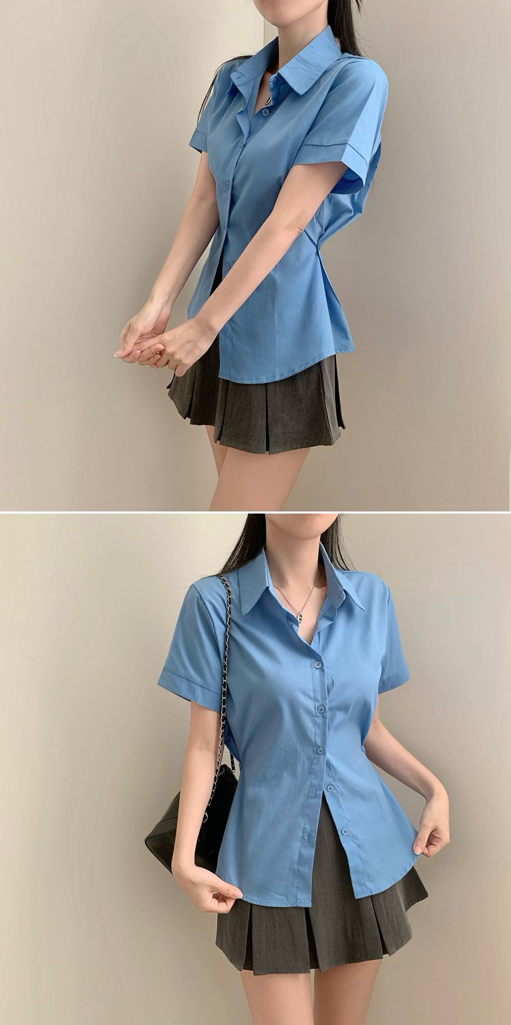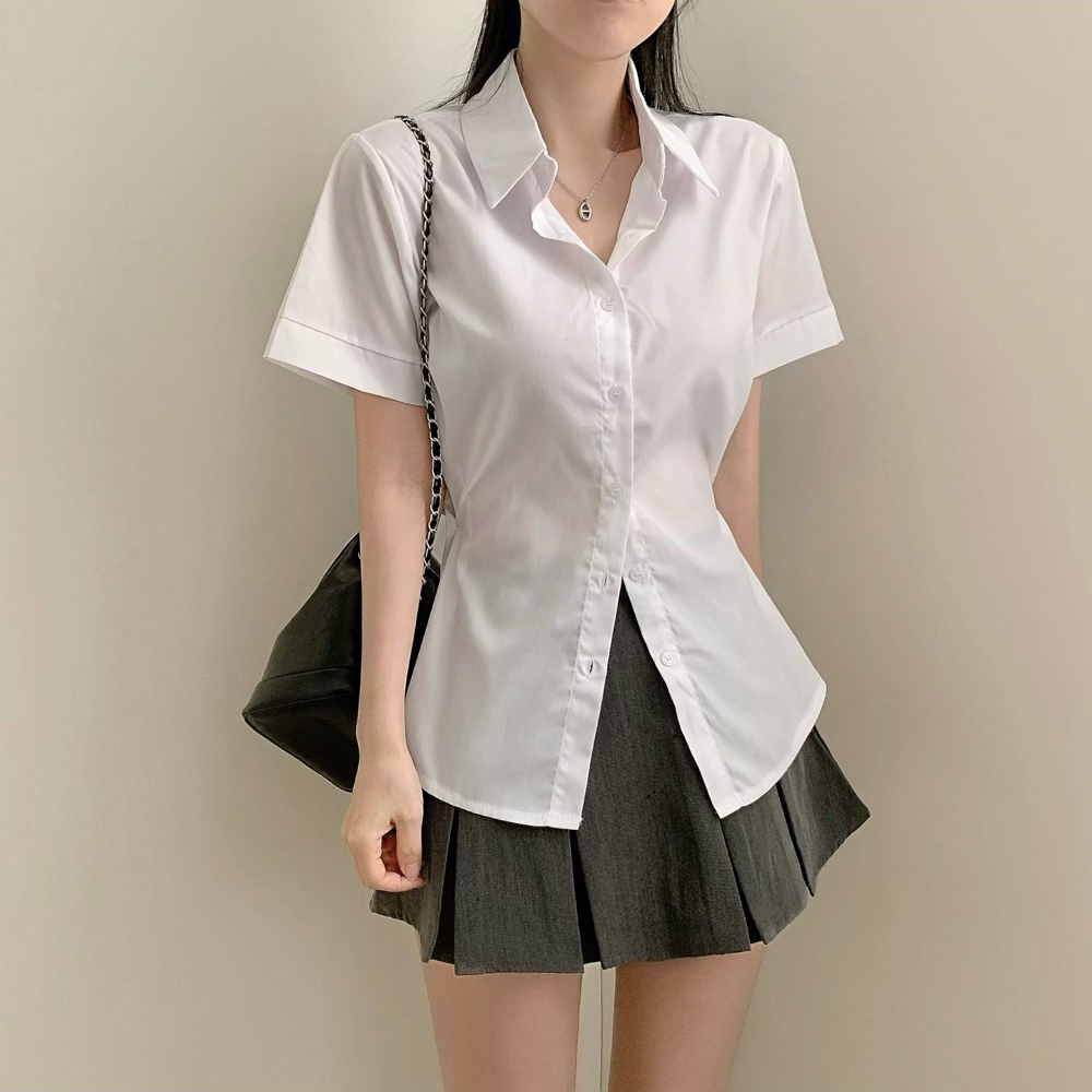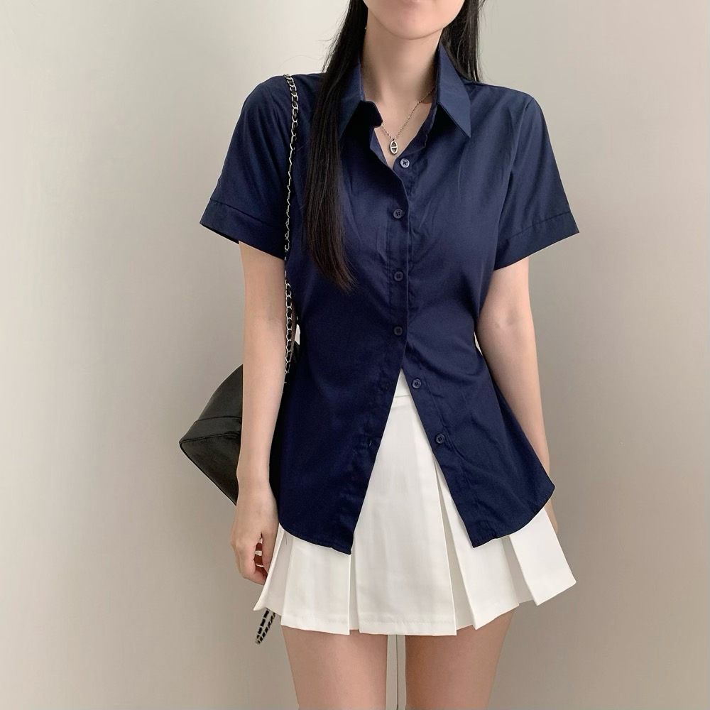 半袖ボタンスリットシャツ(3color)