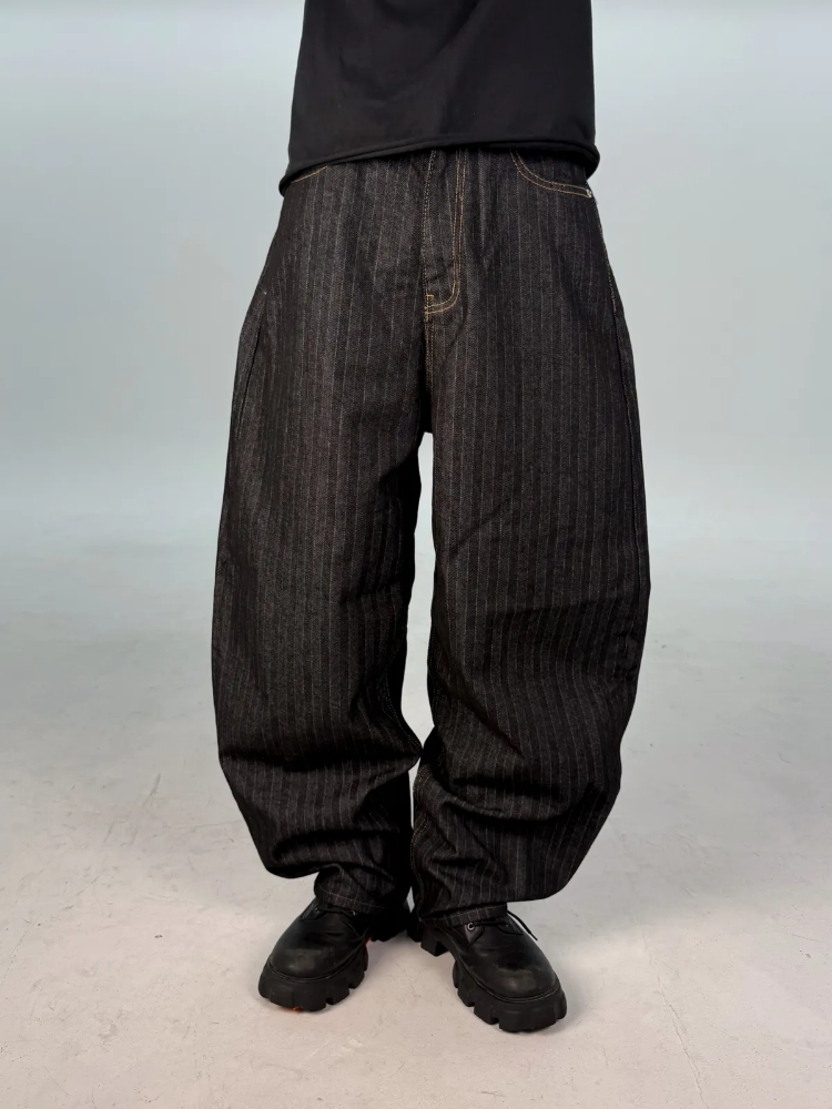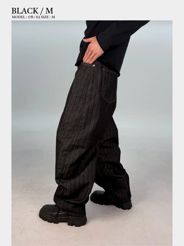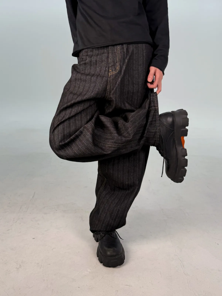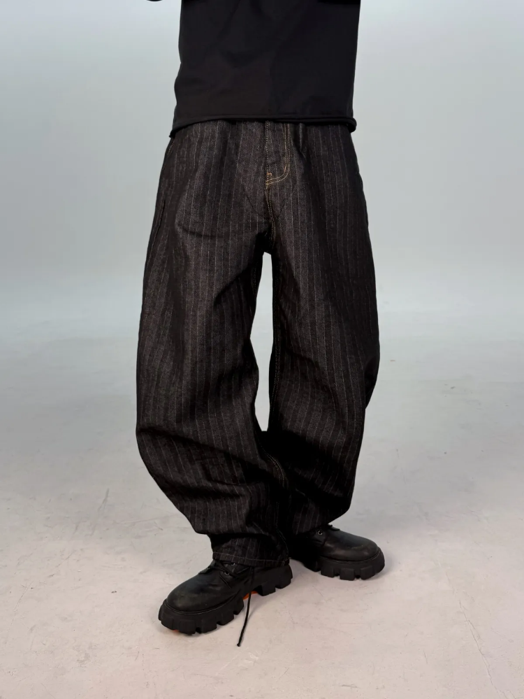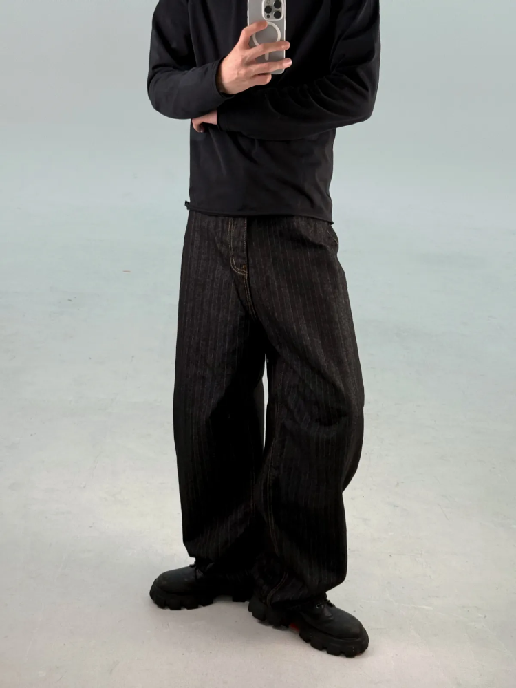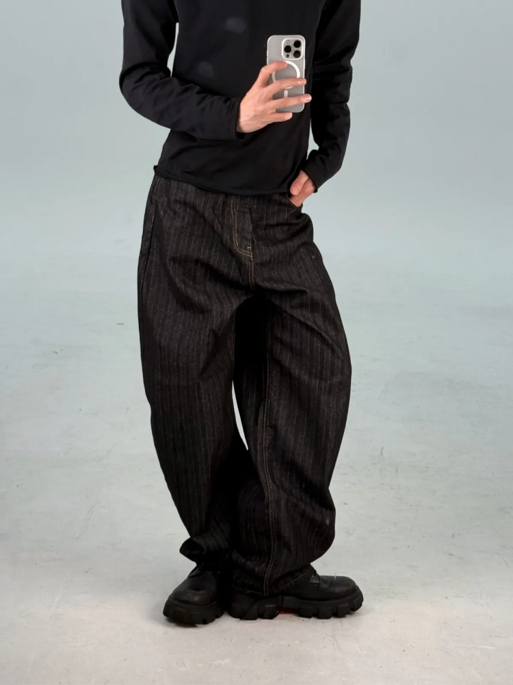 カーブドストライプデニムパンツ