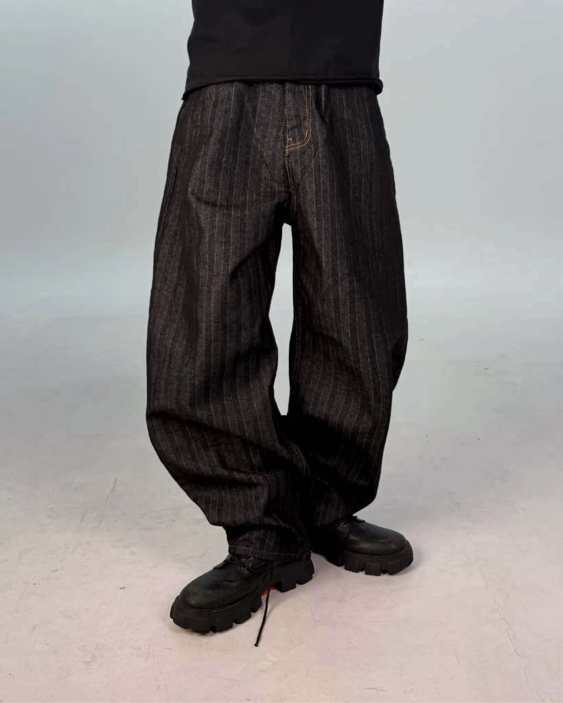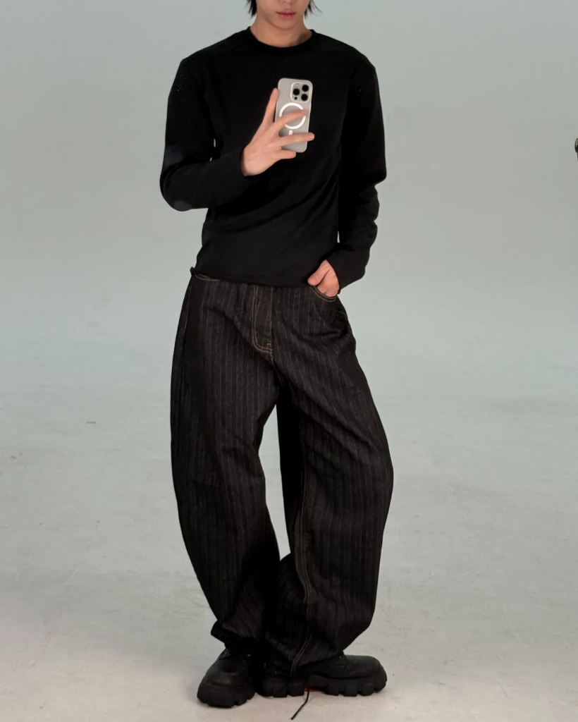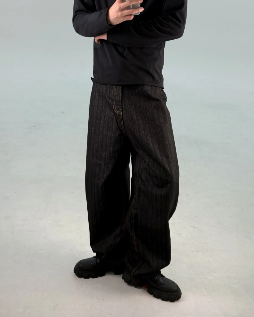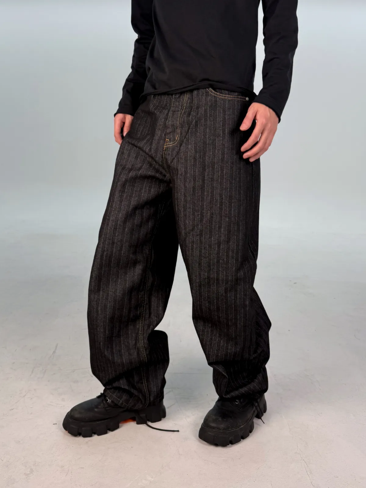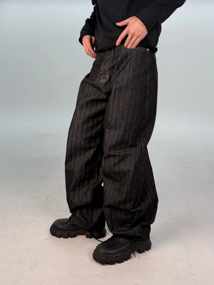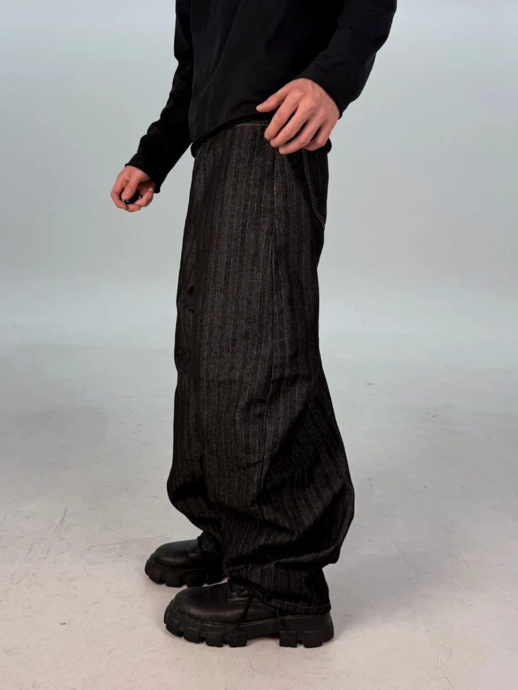 カーブドストライプデニムパンツ