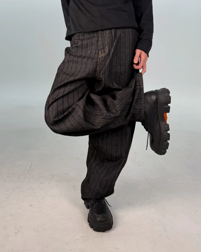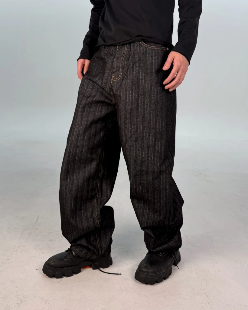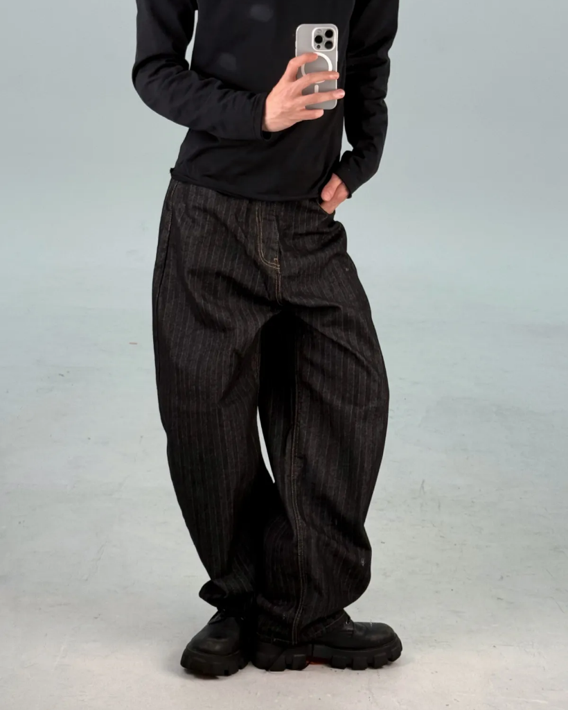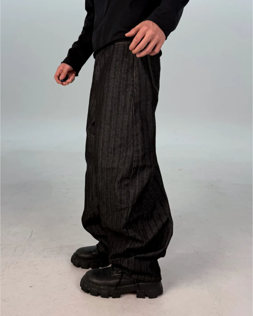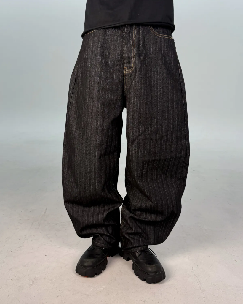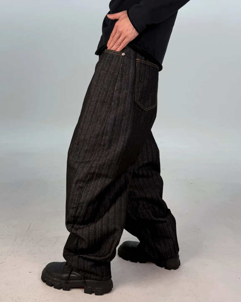 カーブドストライプデニムパンツ