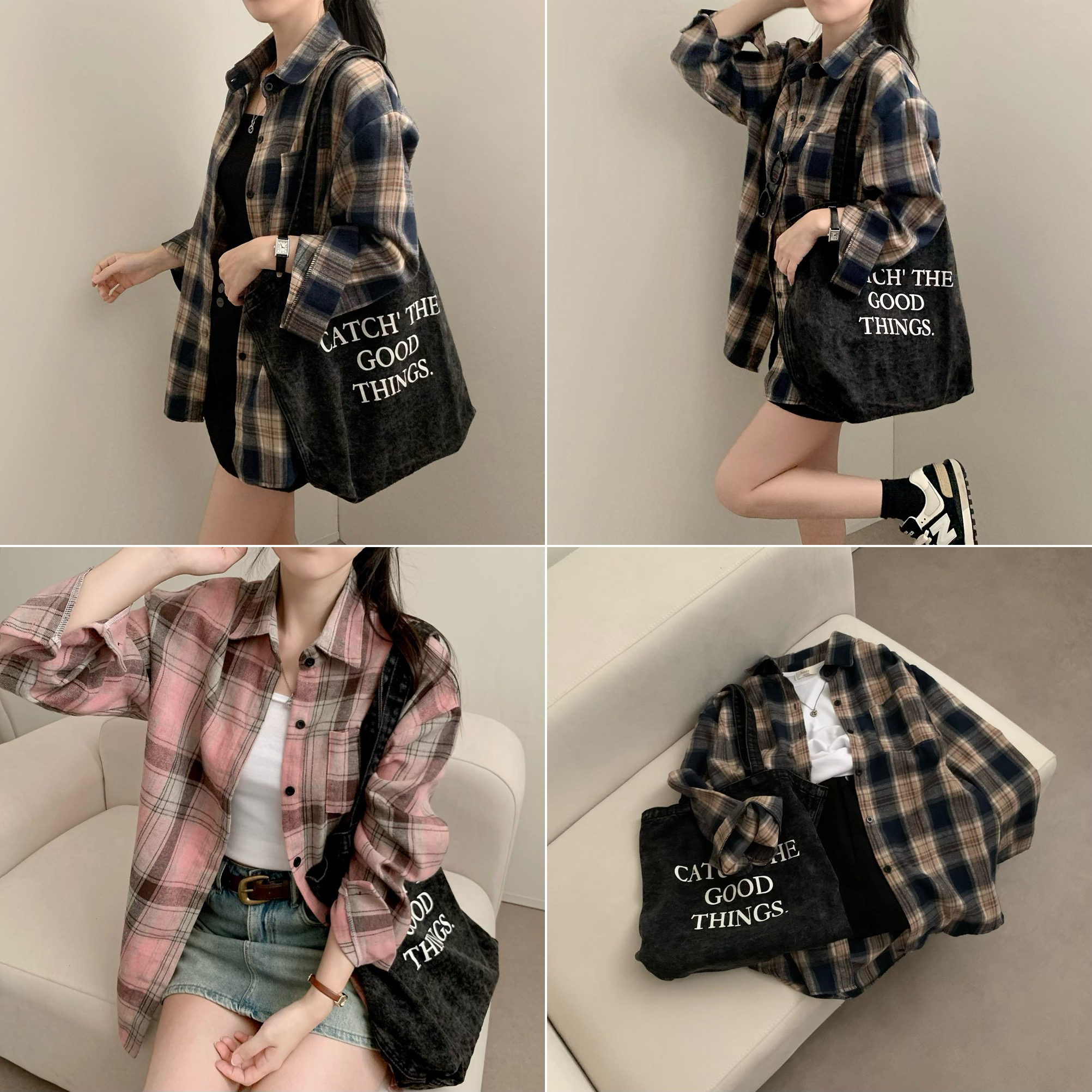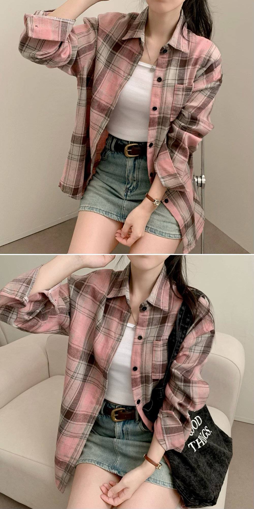 ベーシックチェックロングシャツ