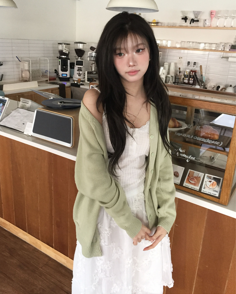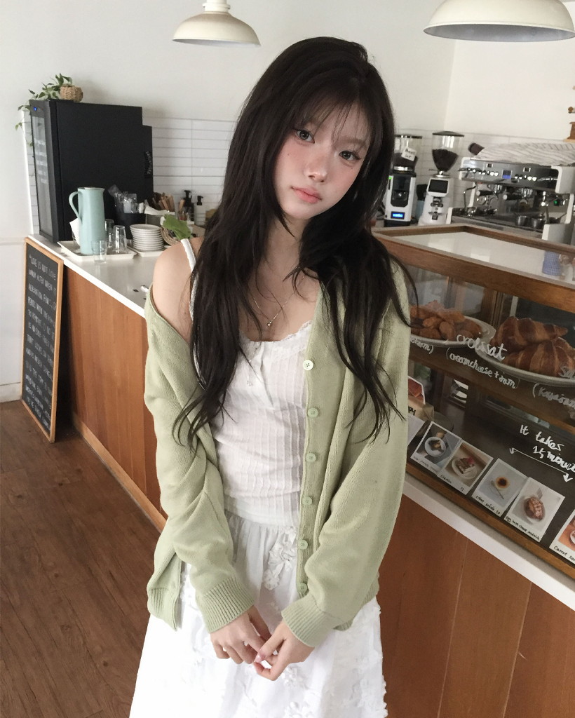 (6color) デイリー抹茶ハートVネックカーディガン