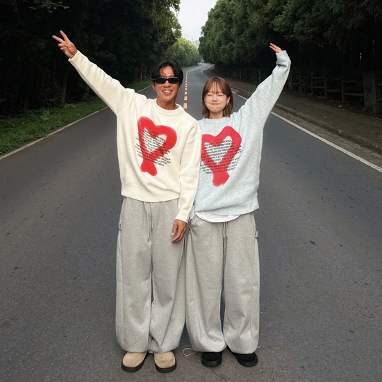 [UNISEX]ソフトハートレタリングニット