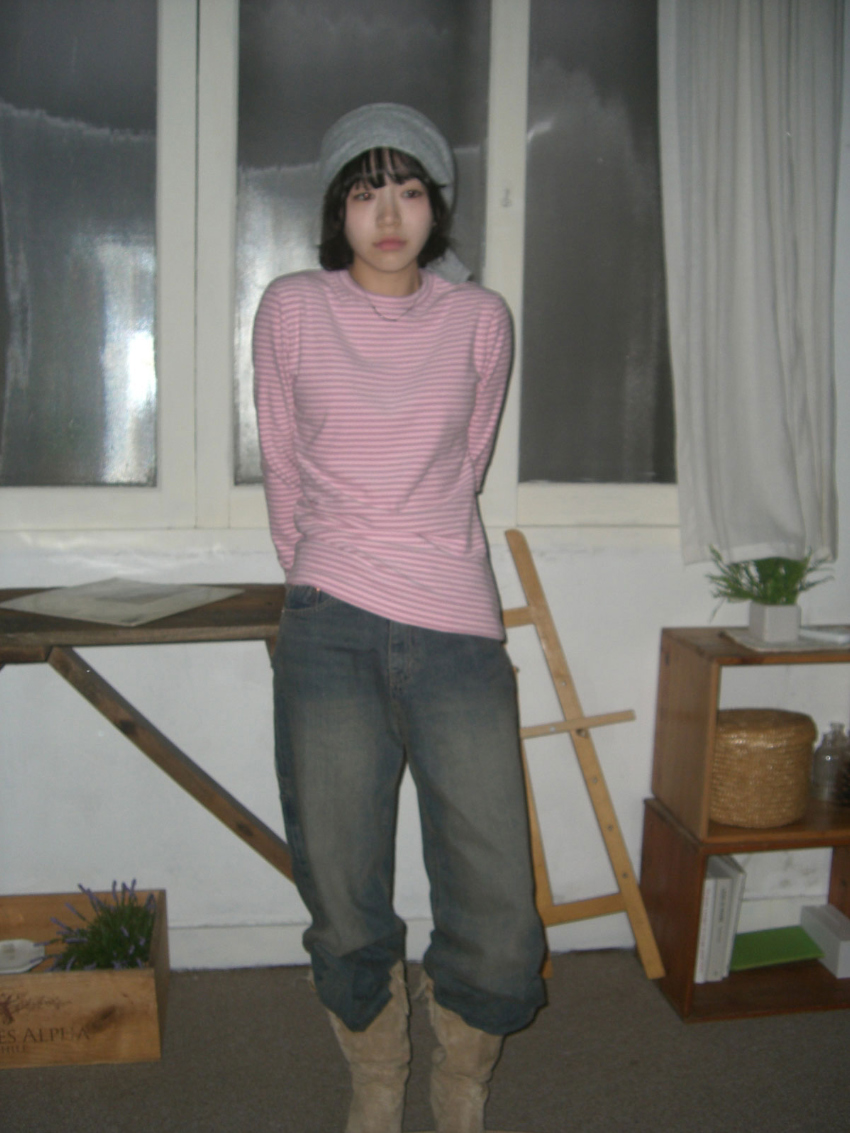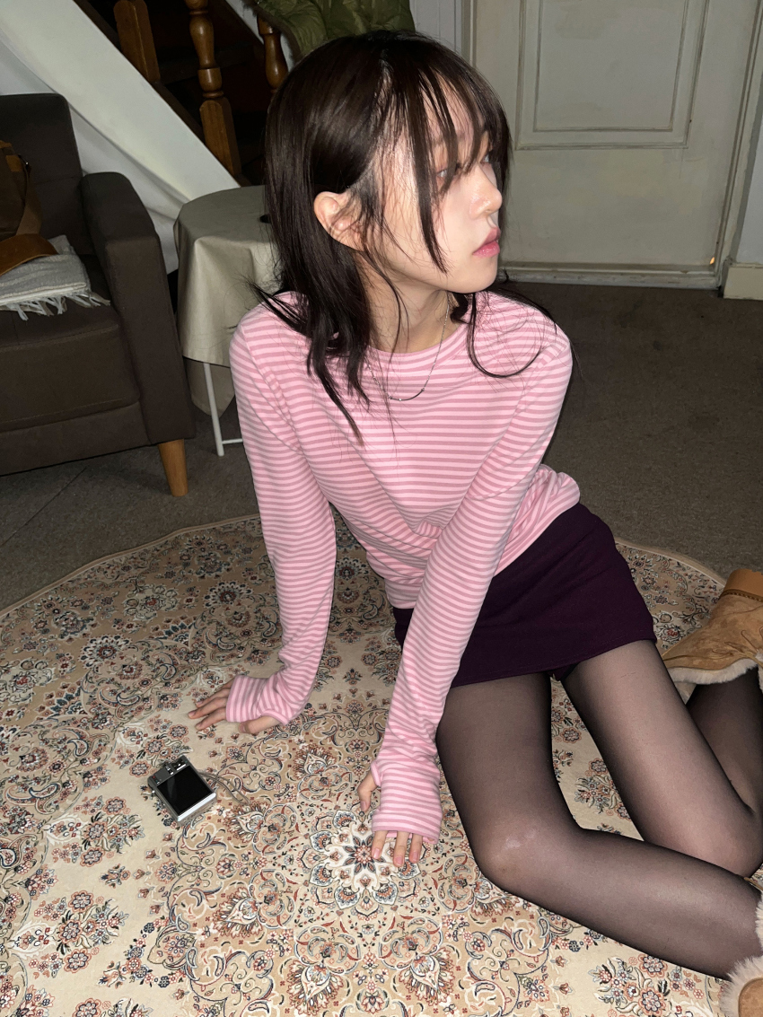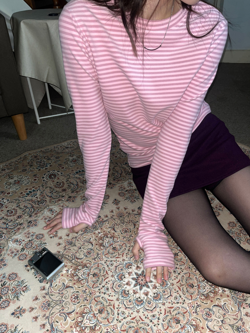 [9.hope] 裏起毛ウォーマーストライプTシャツ