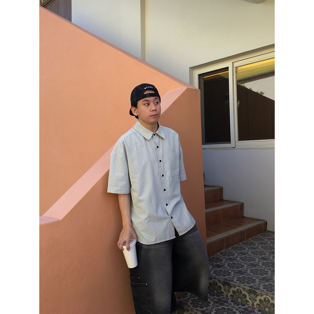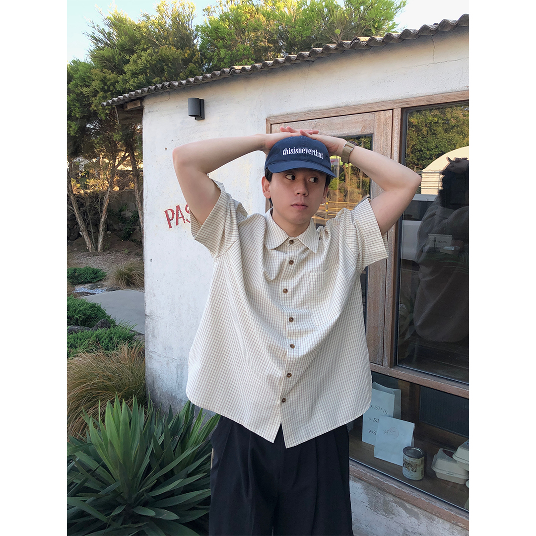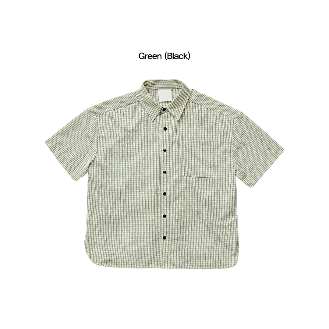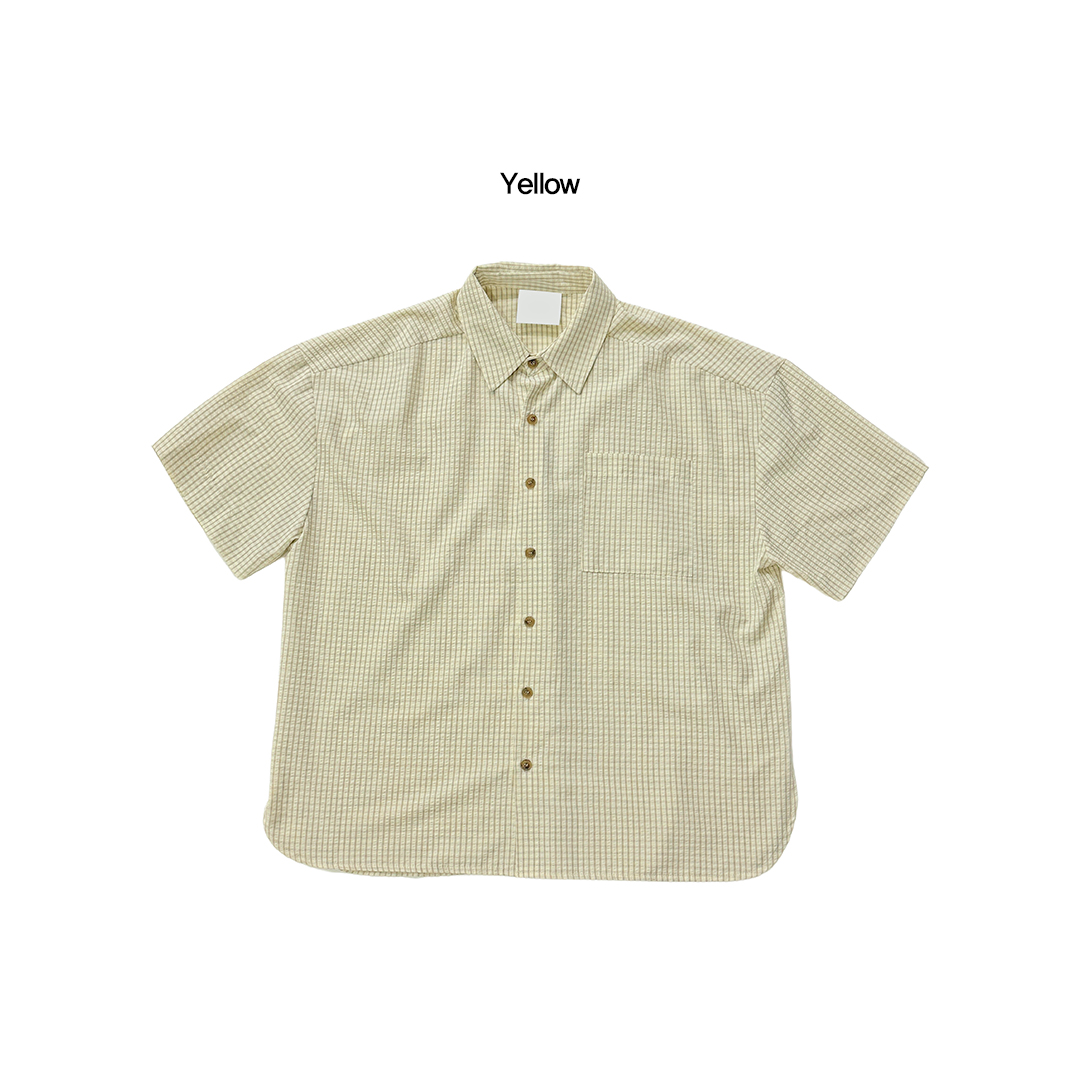 (ユニセックス)ソリッドチェック半袖シャツ(2Color)