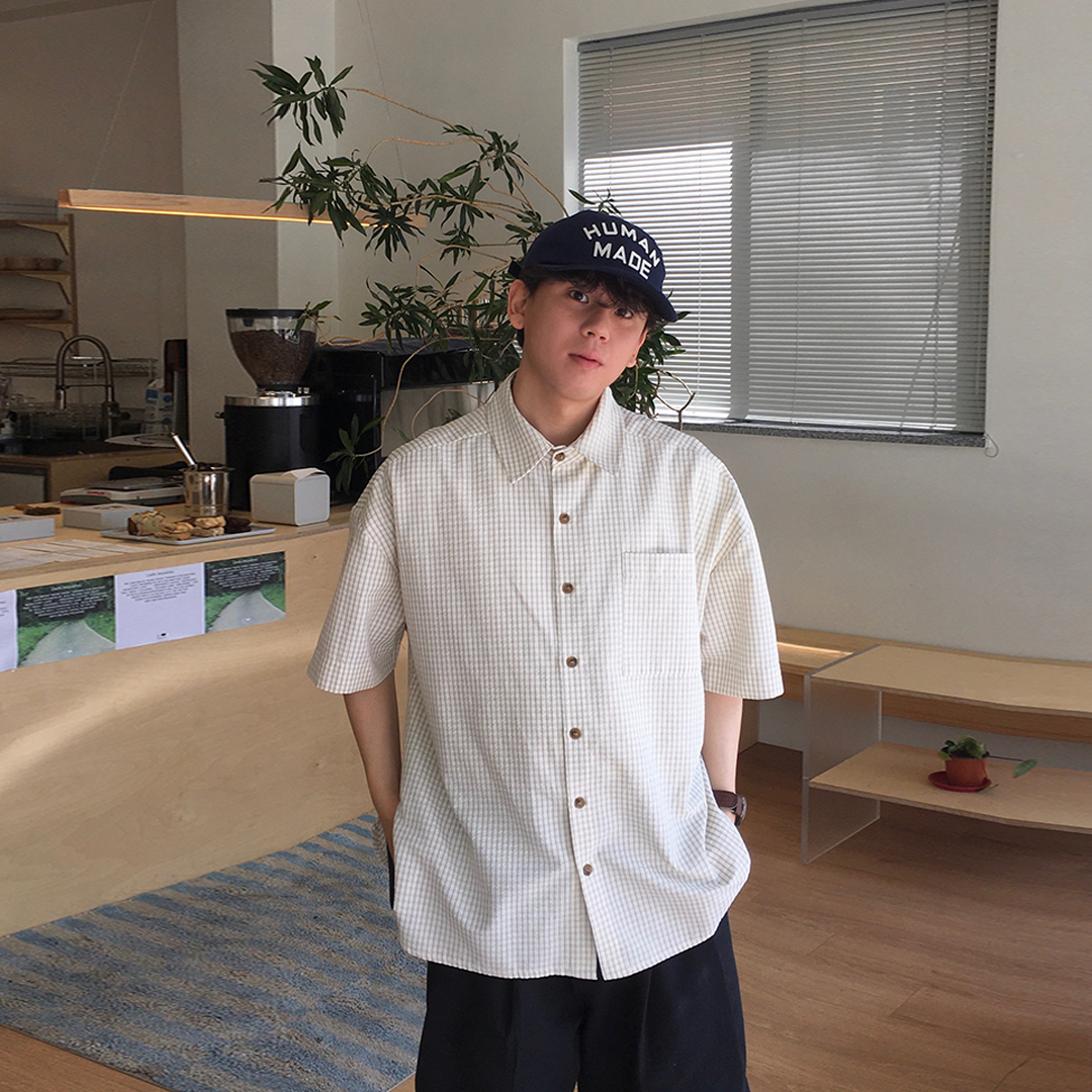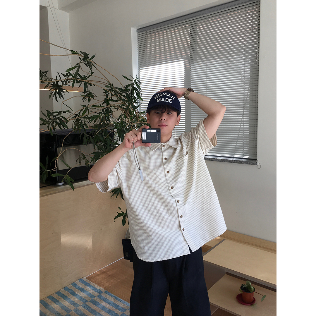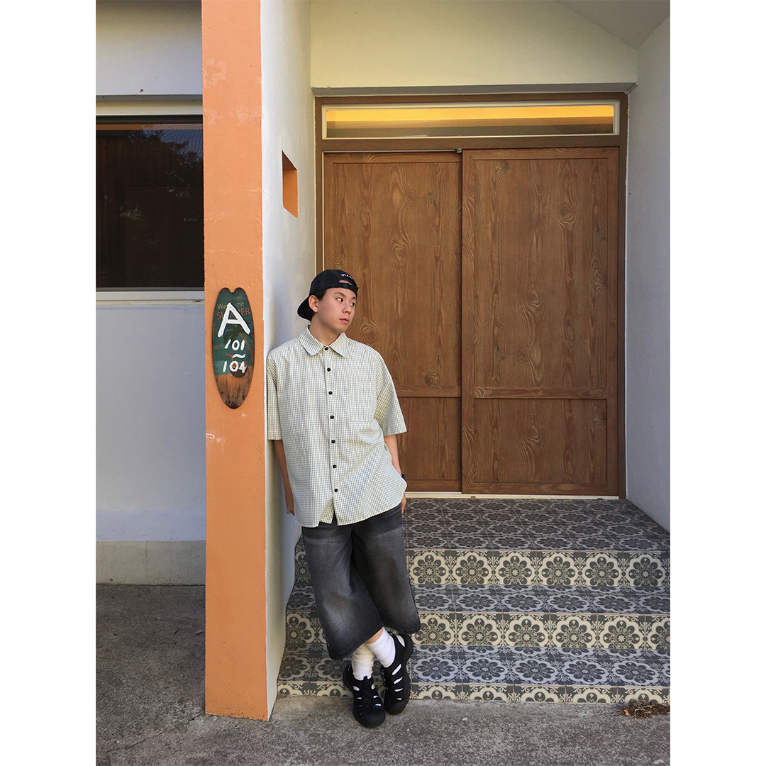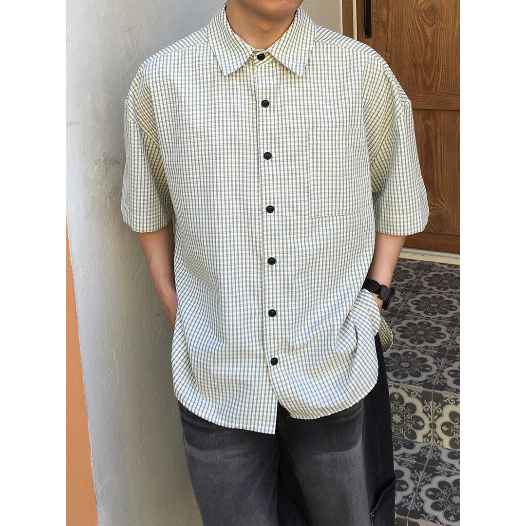 (ユニセックス)ソリッドチェック半袖シャツ(2Color)