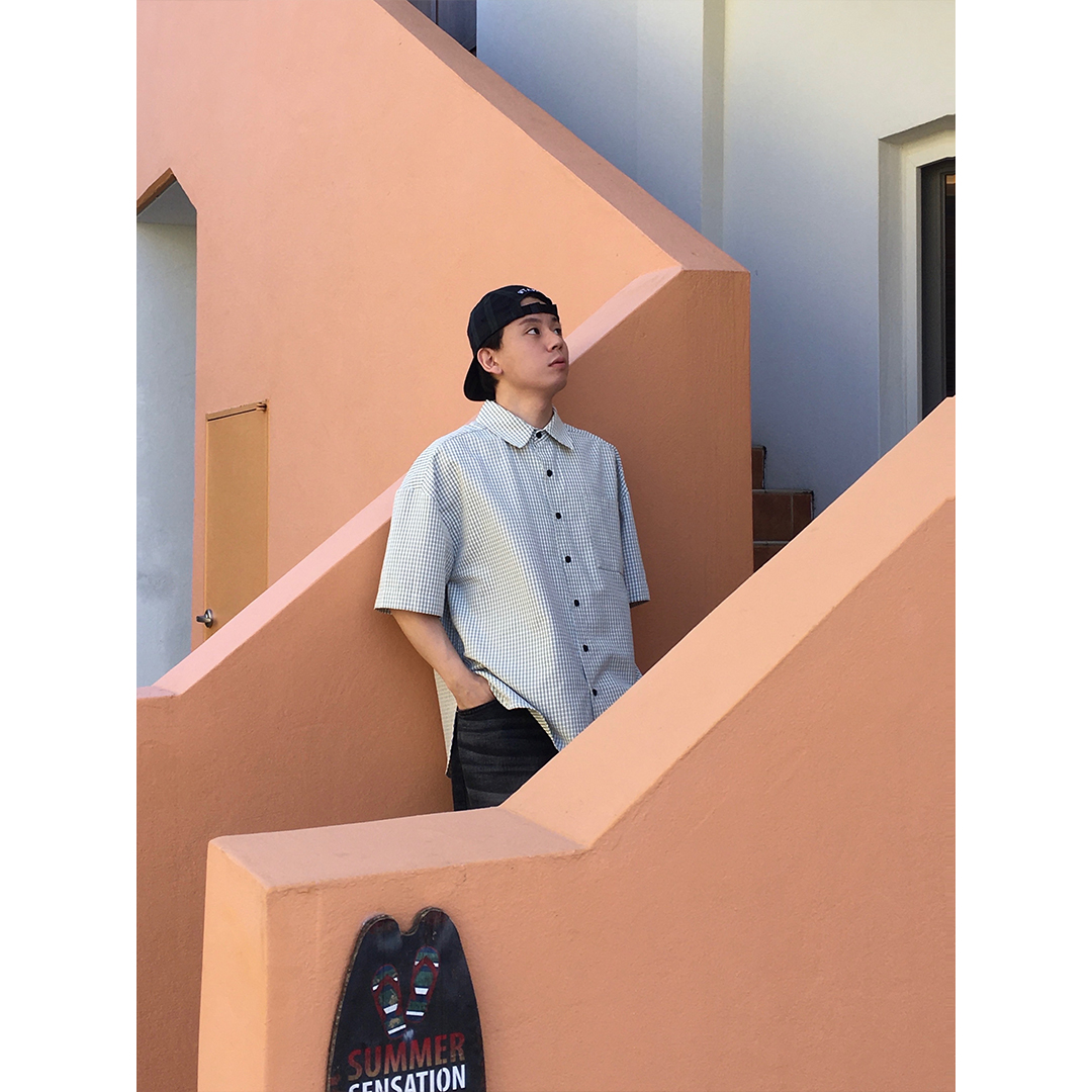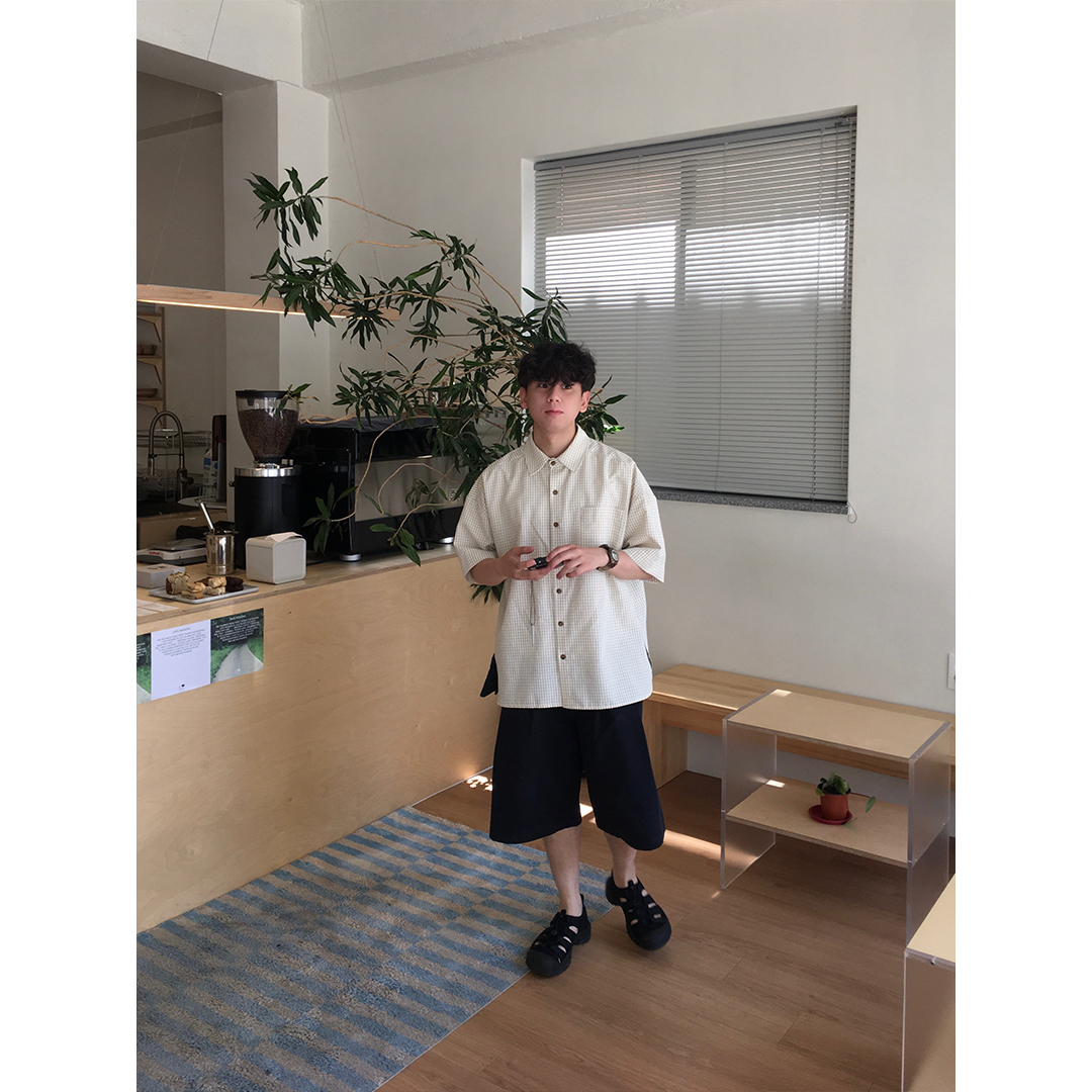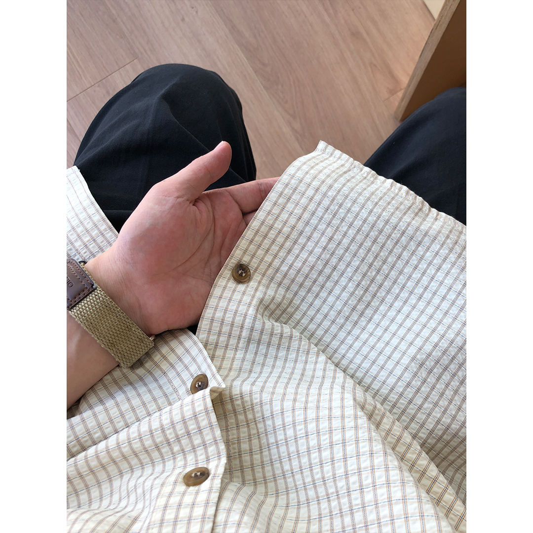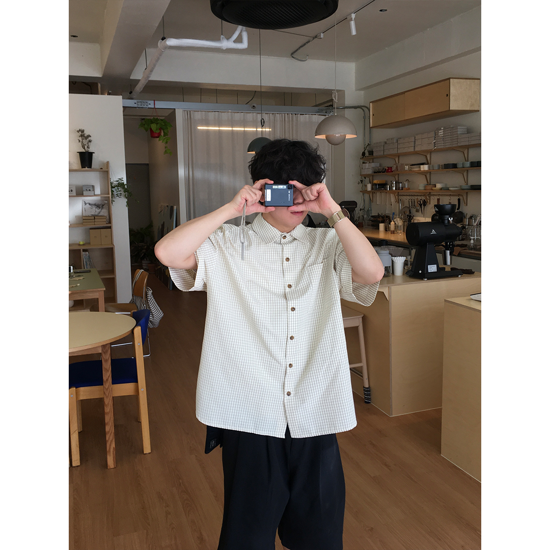 (ユニセックス)ソリッドチェック半袖シャツ(2Color)