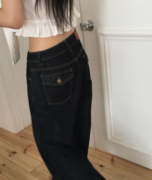 [選べる着丈]バッグポケットスリムワイドローデニムパンツ