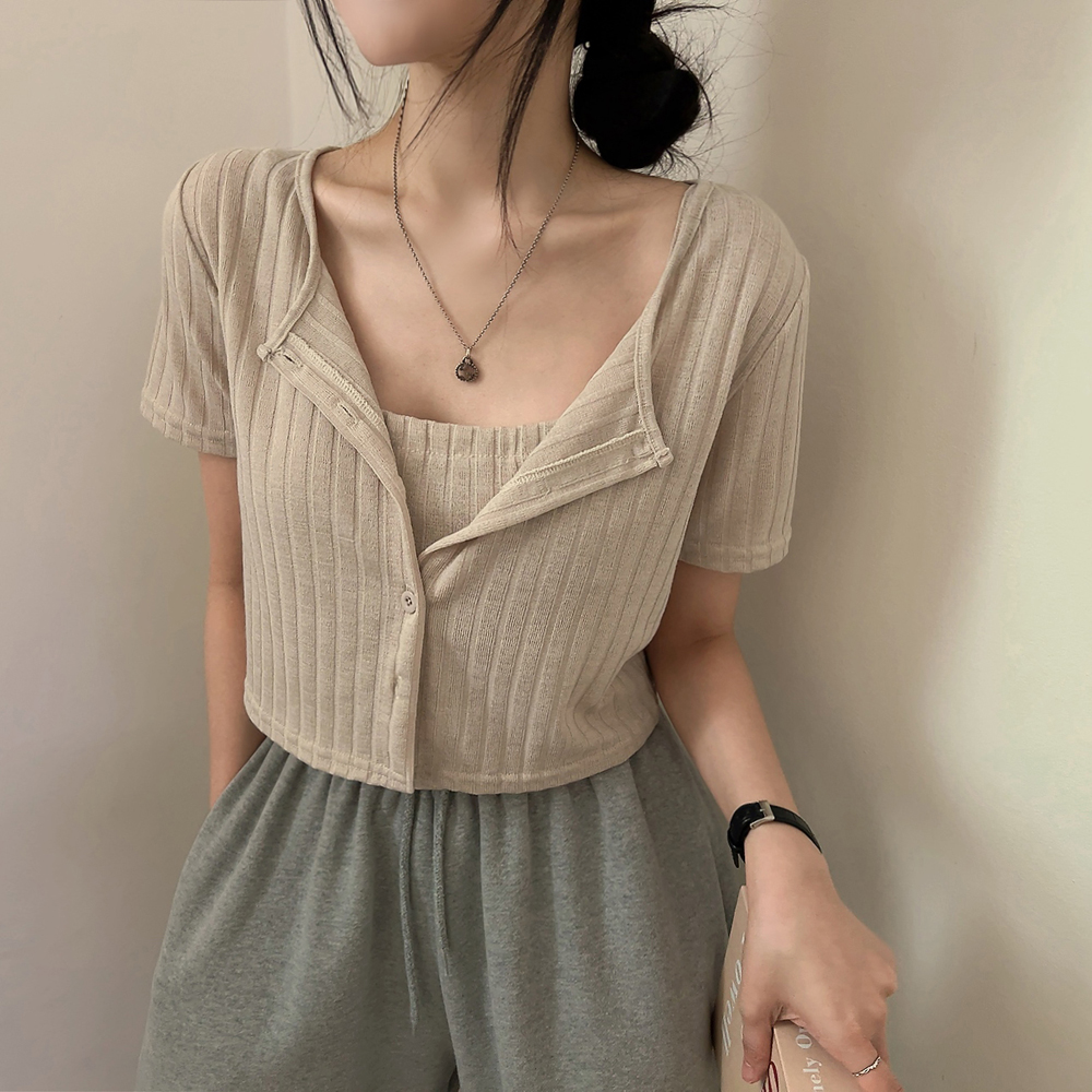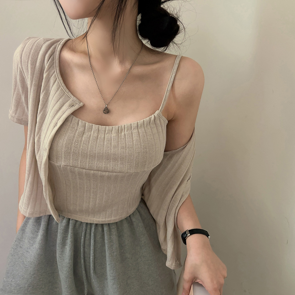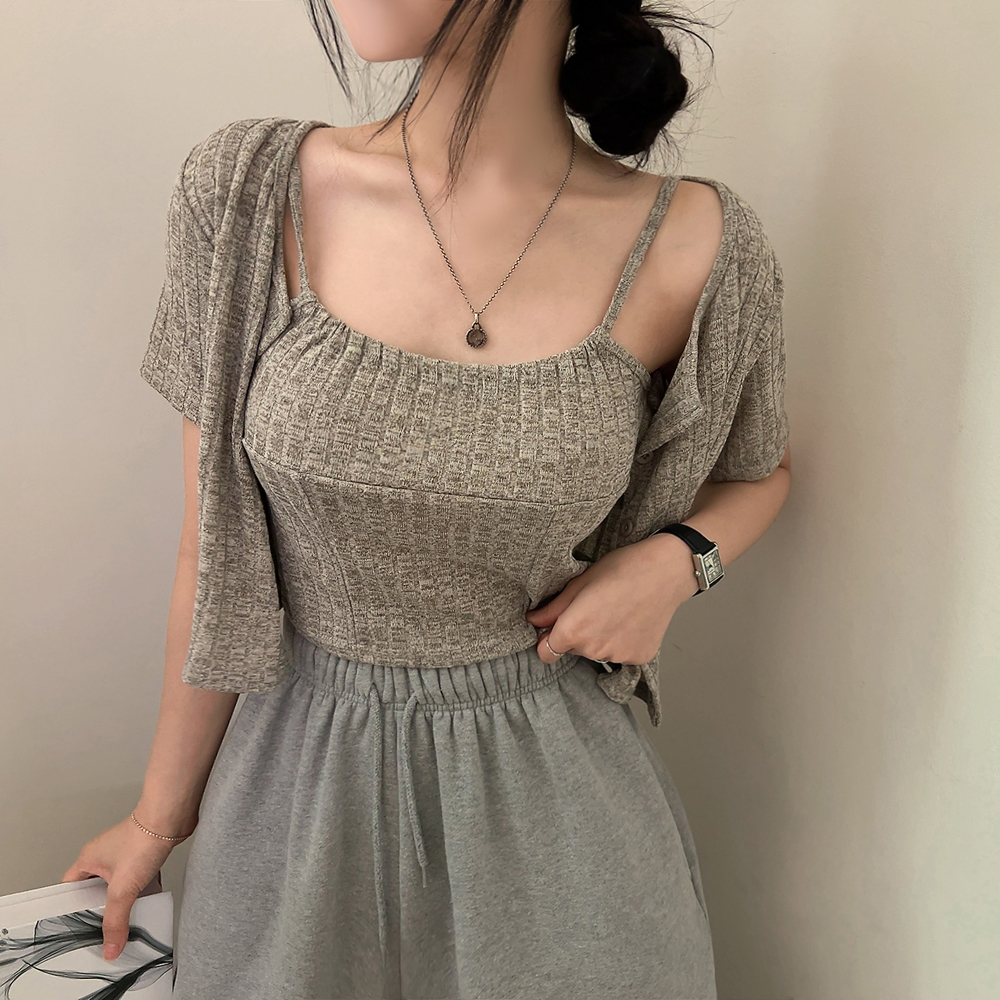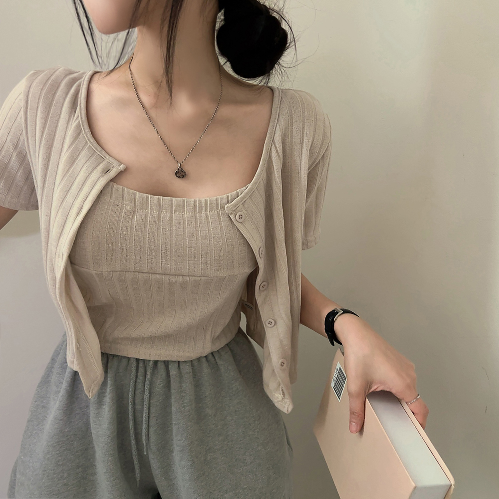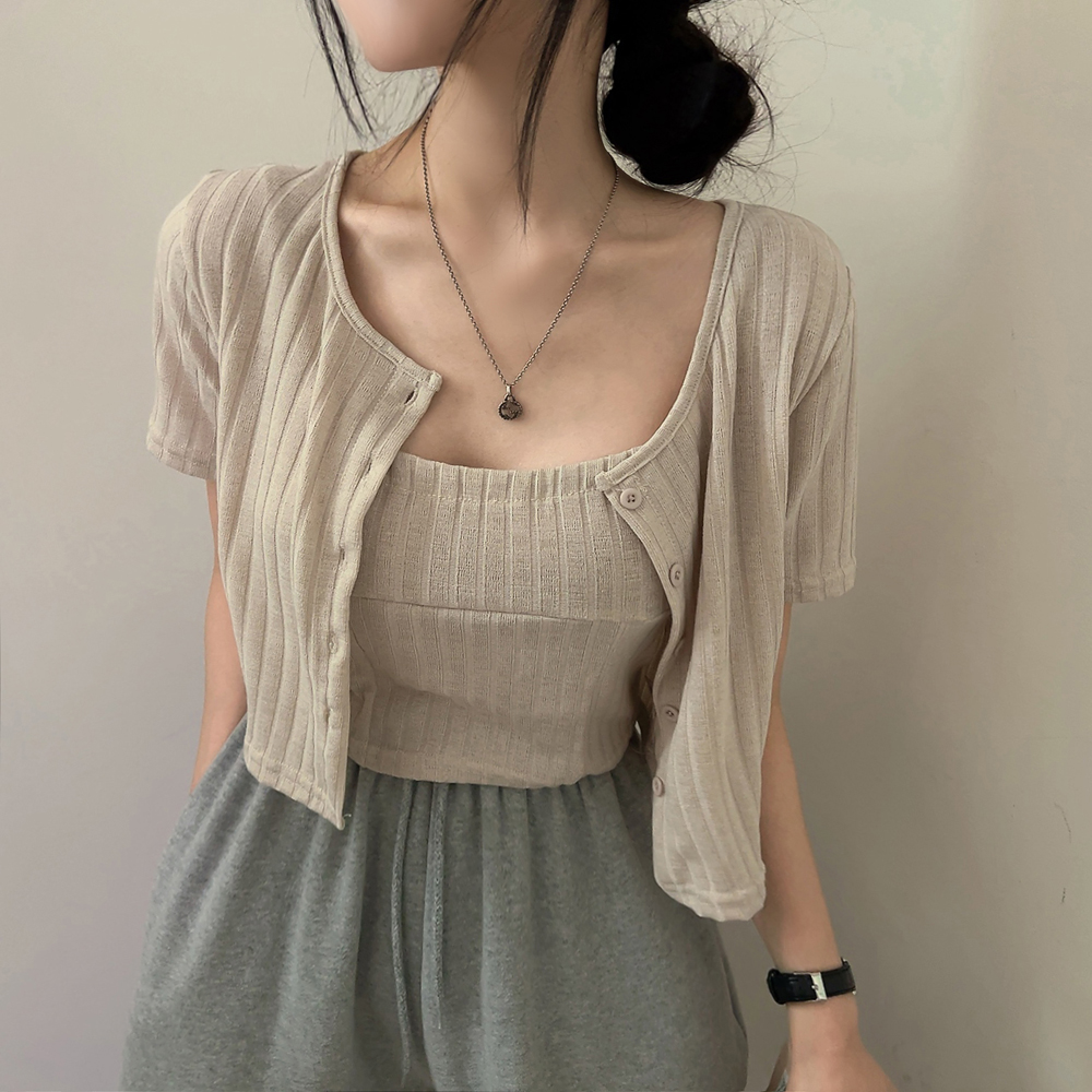 [SET] 半袖カーディガン+クロップドシャーリングノースリーブセット