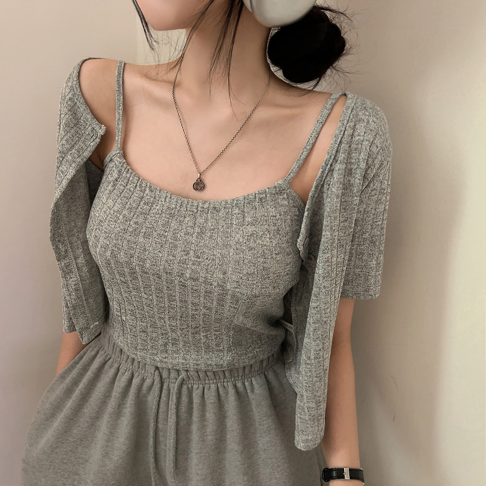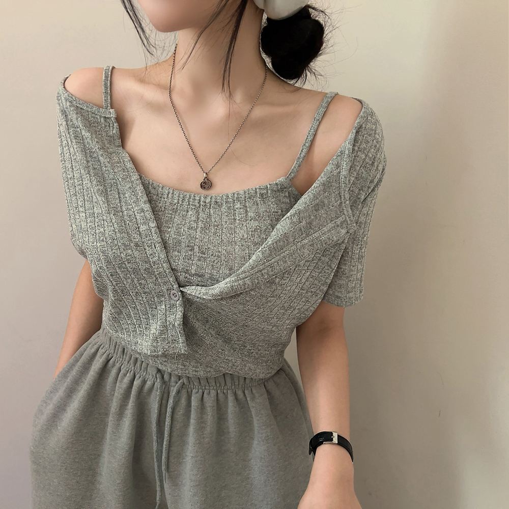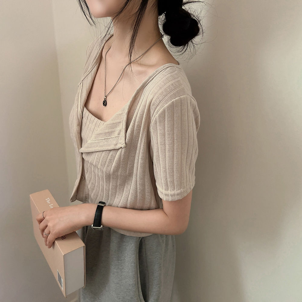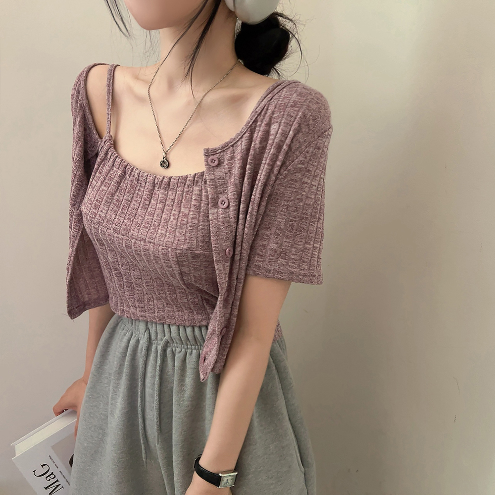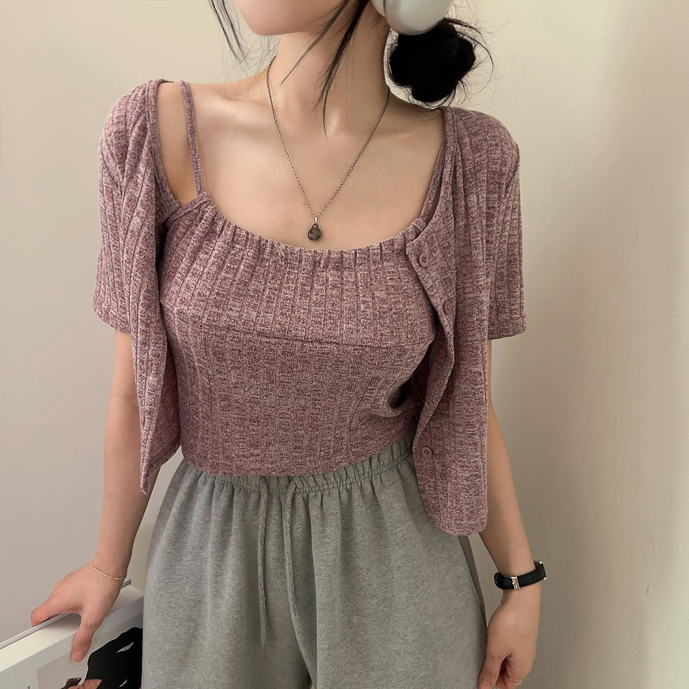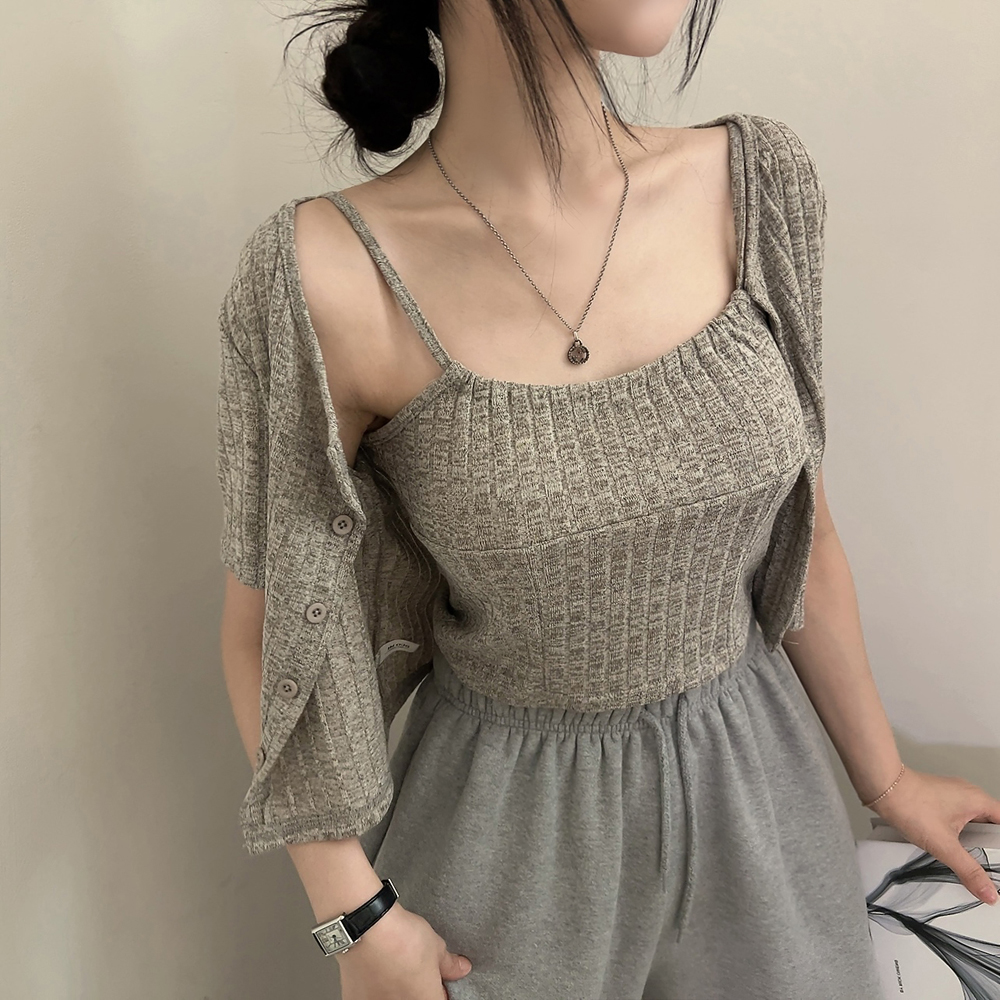 [SET] 半袖カーディガン+クロップドシャーリングノースリーブセット