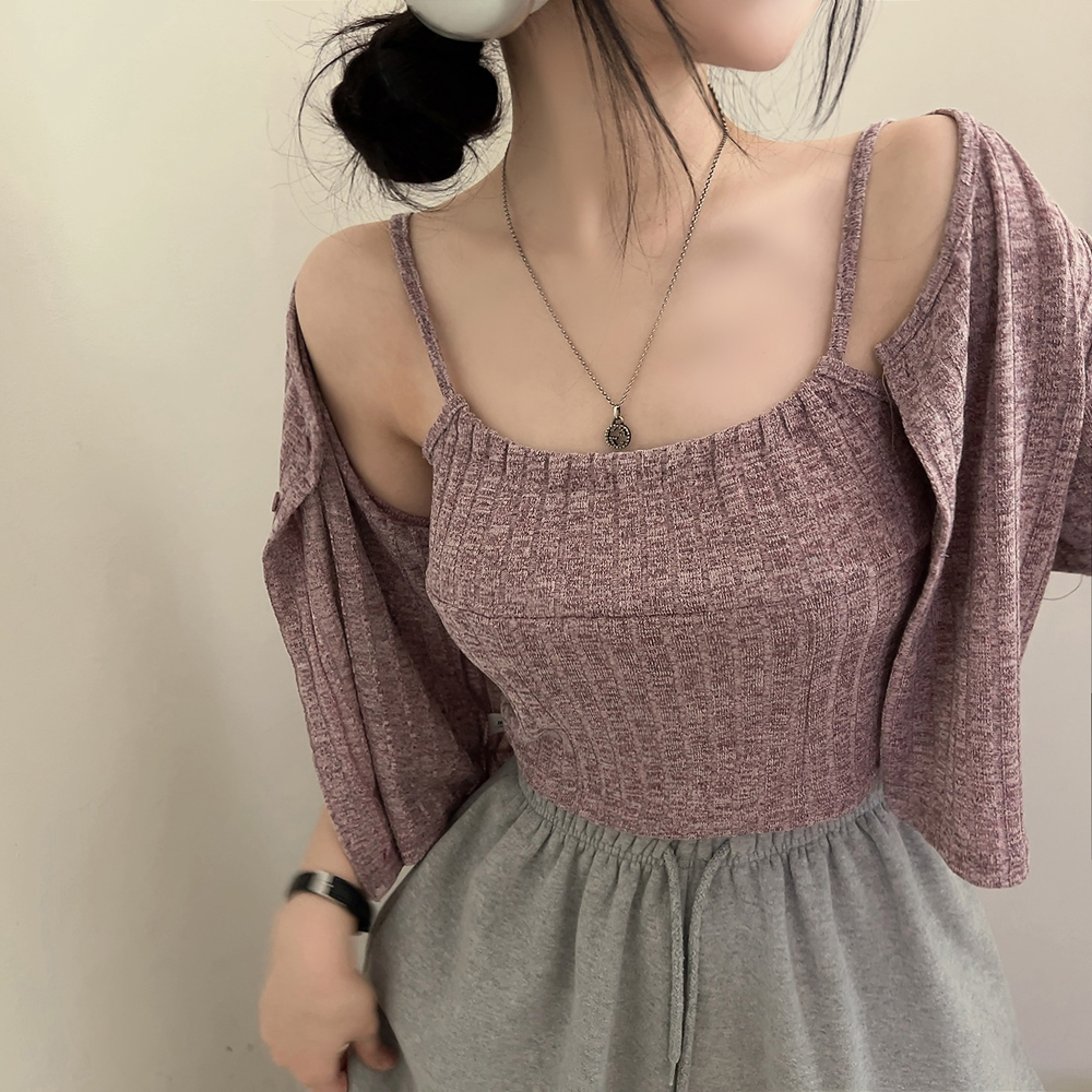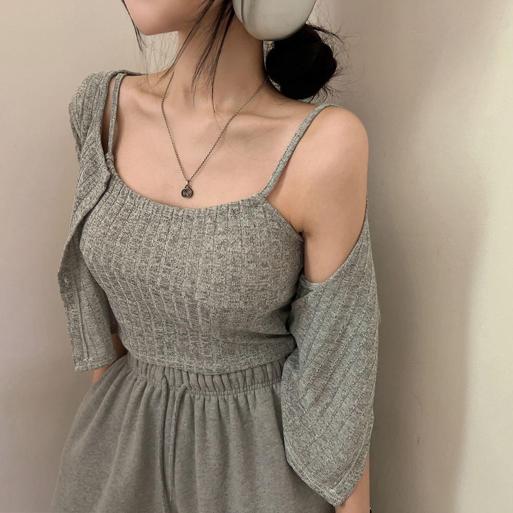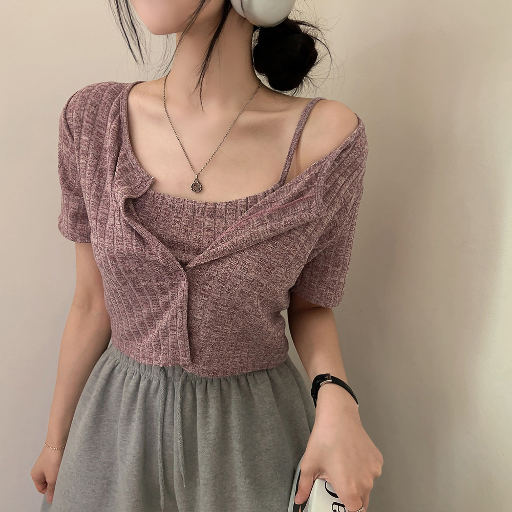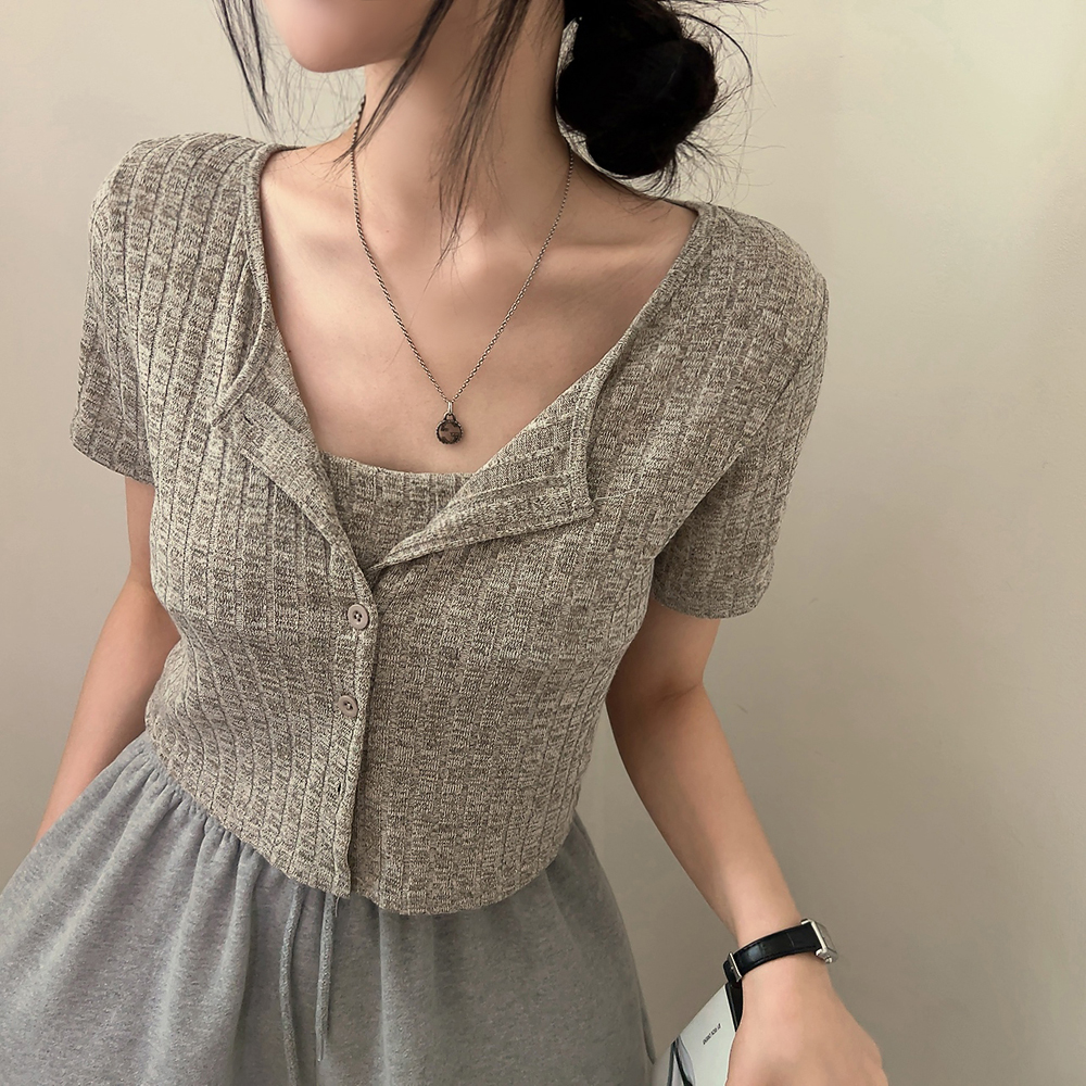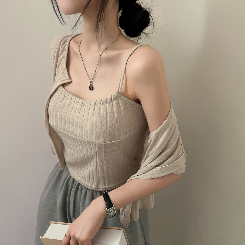 [SET] 半袖カーディガン+クロップドシャーリングノースリーブセット