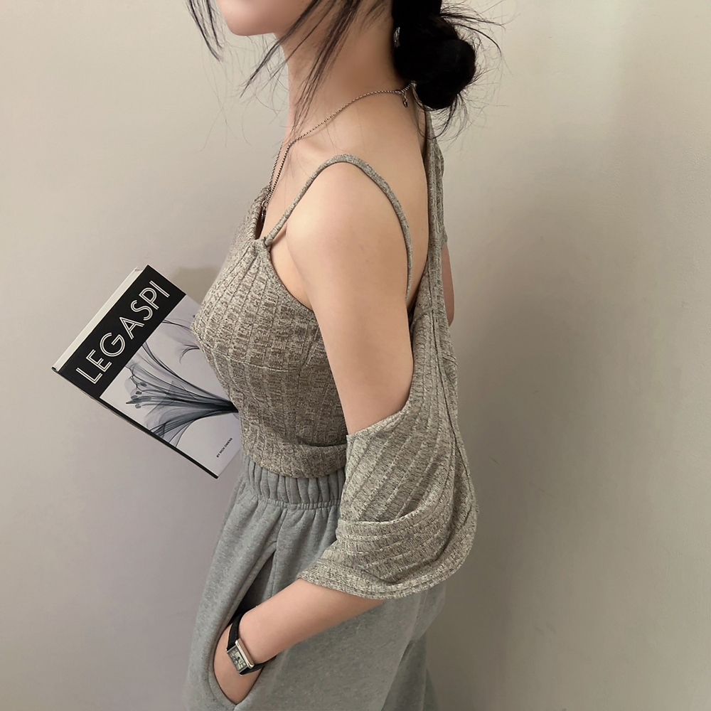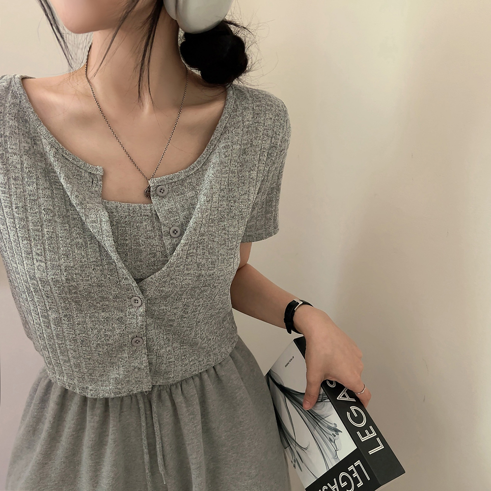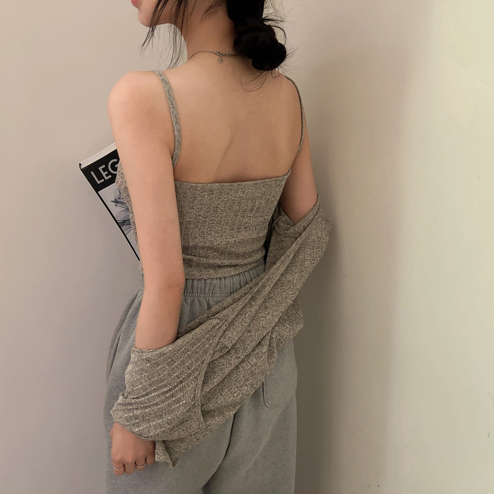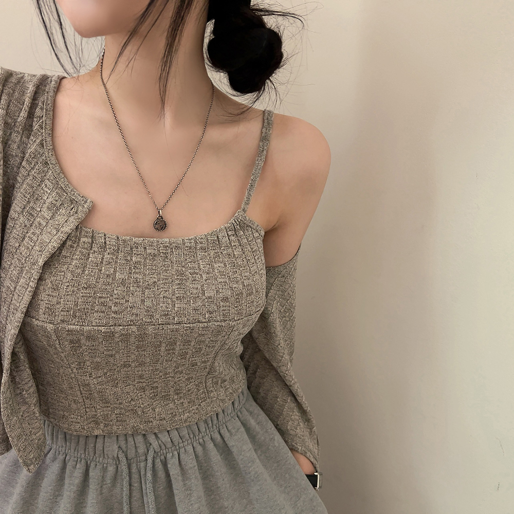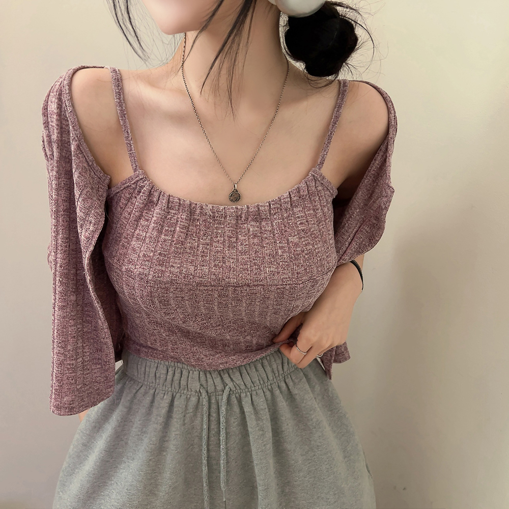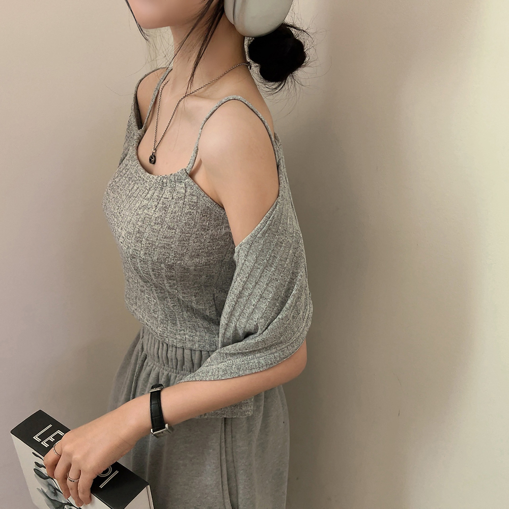 [SET] 半袖カーディガン+クロップドシャーリングノースリーブセット