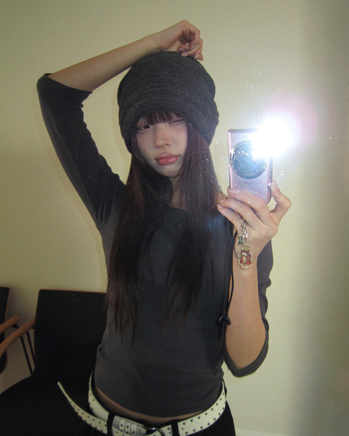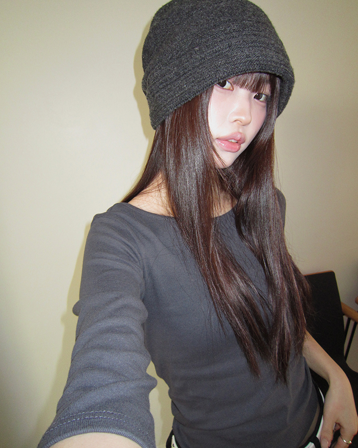 - 목선이 예쁘게 드러나는 유넥 라인으로 여리한 분위기를 연출