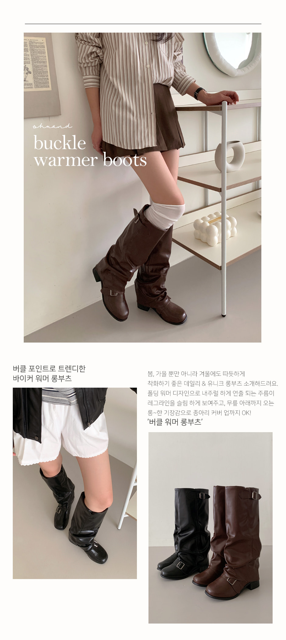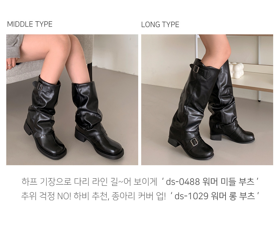 [2color]バックルウォーマーバイカーロングブーツ