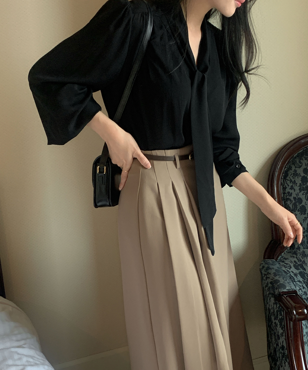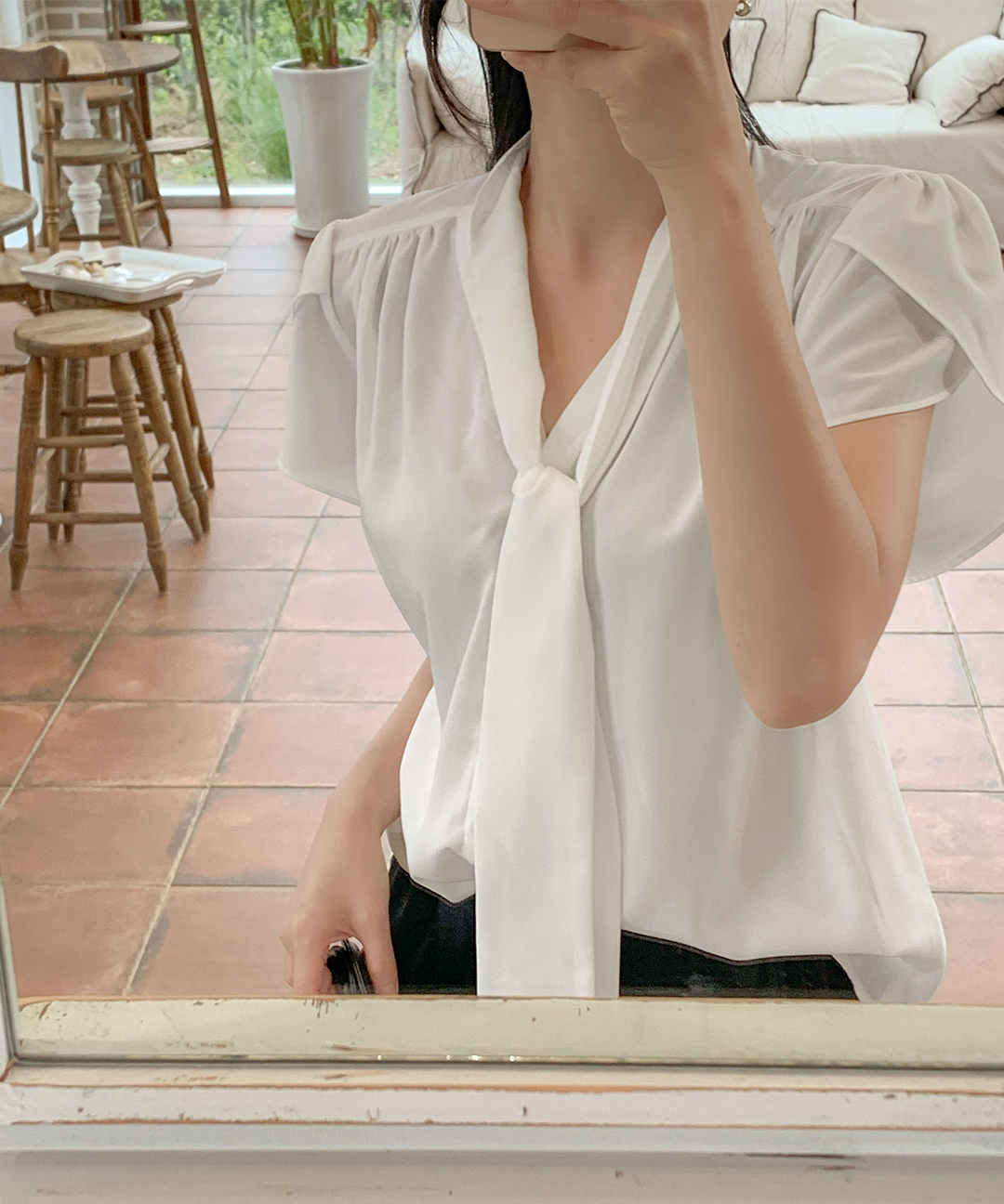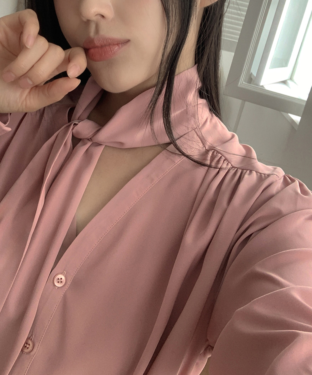 【オケージョン】[original/S-XL]Vネックシャーリングタイブラウス