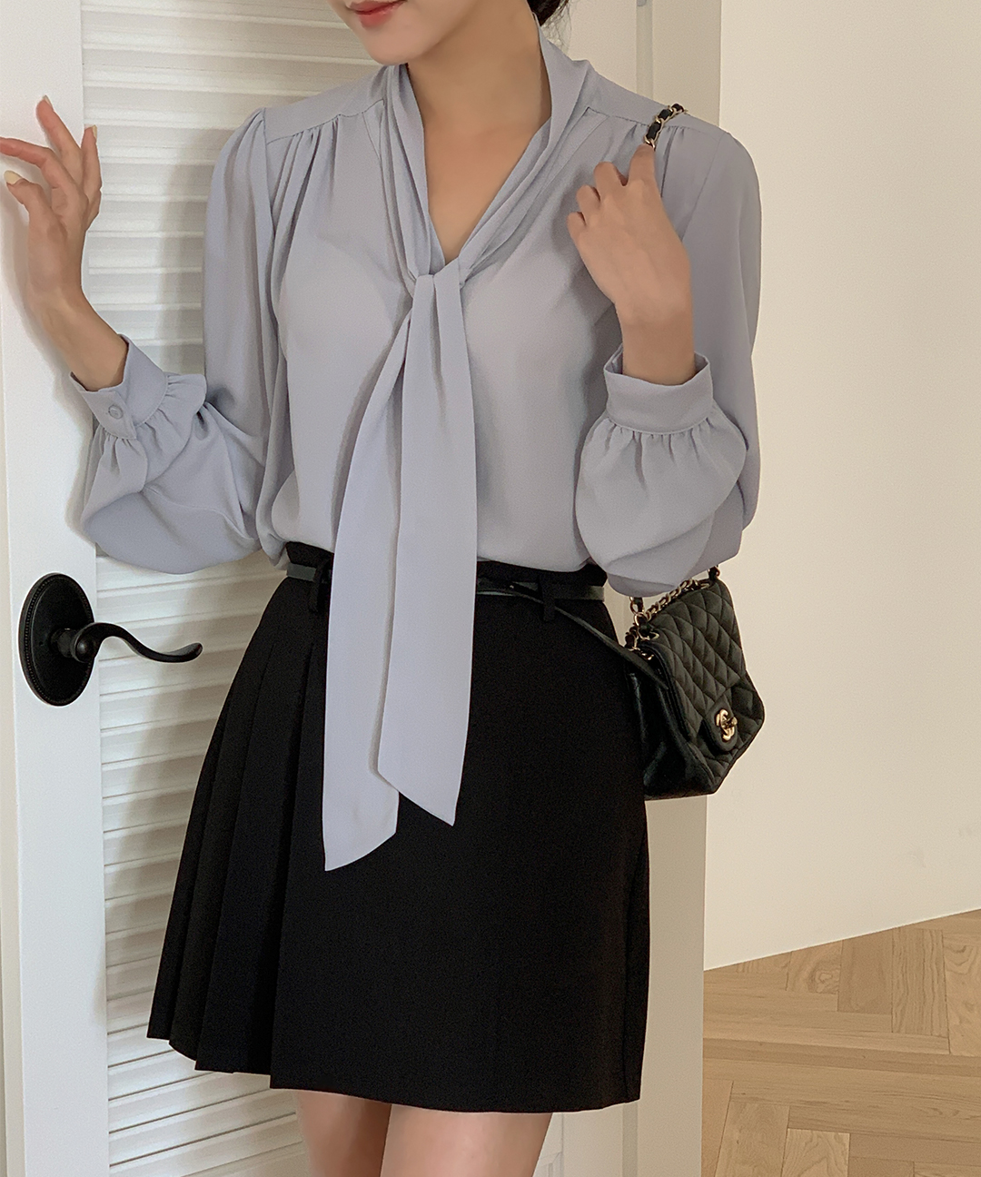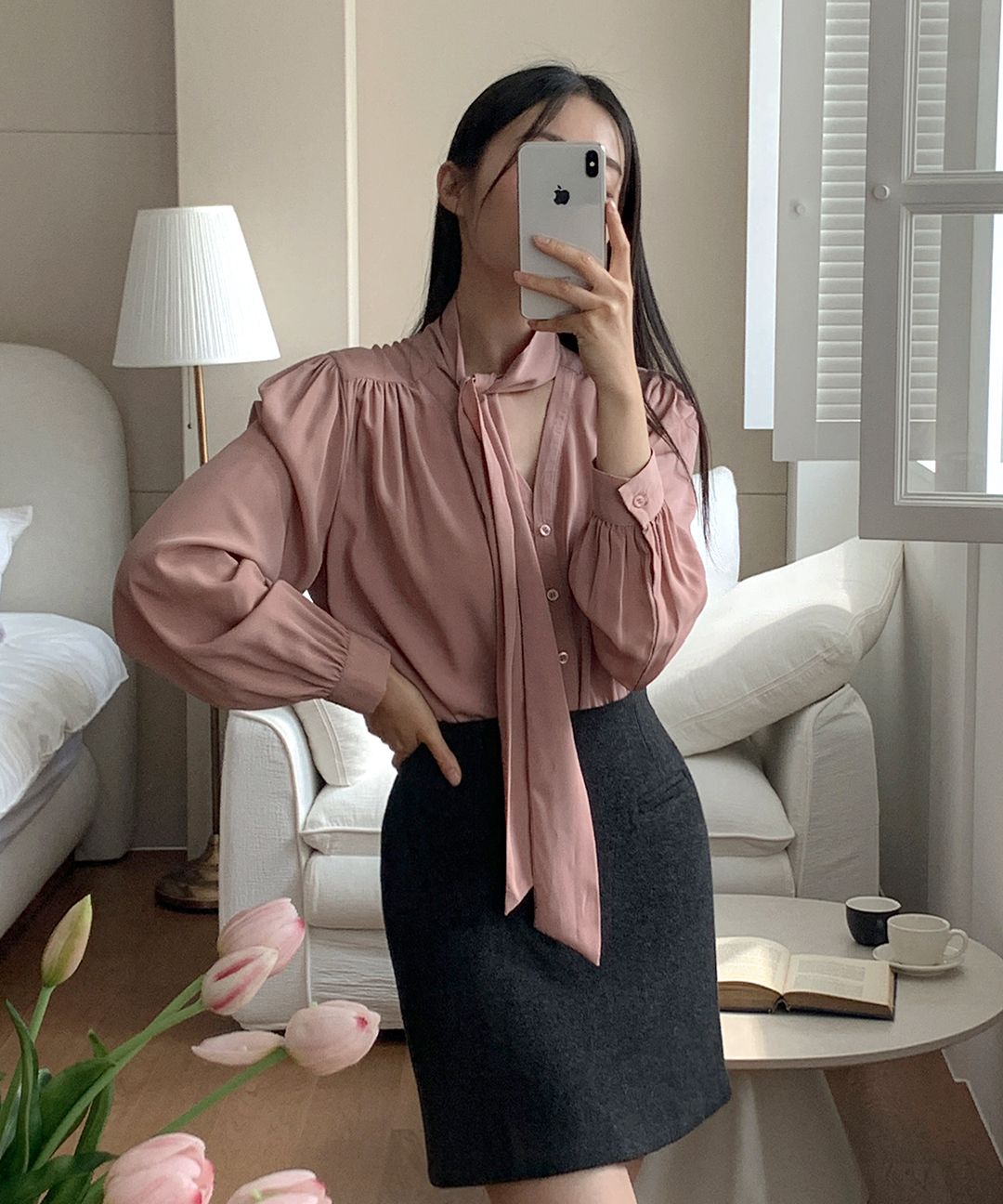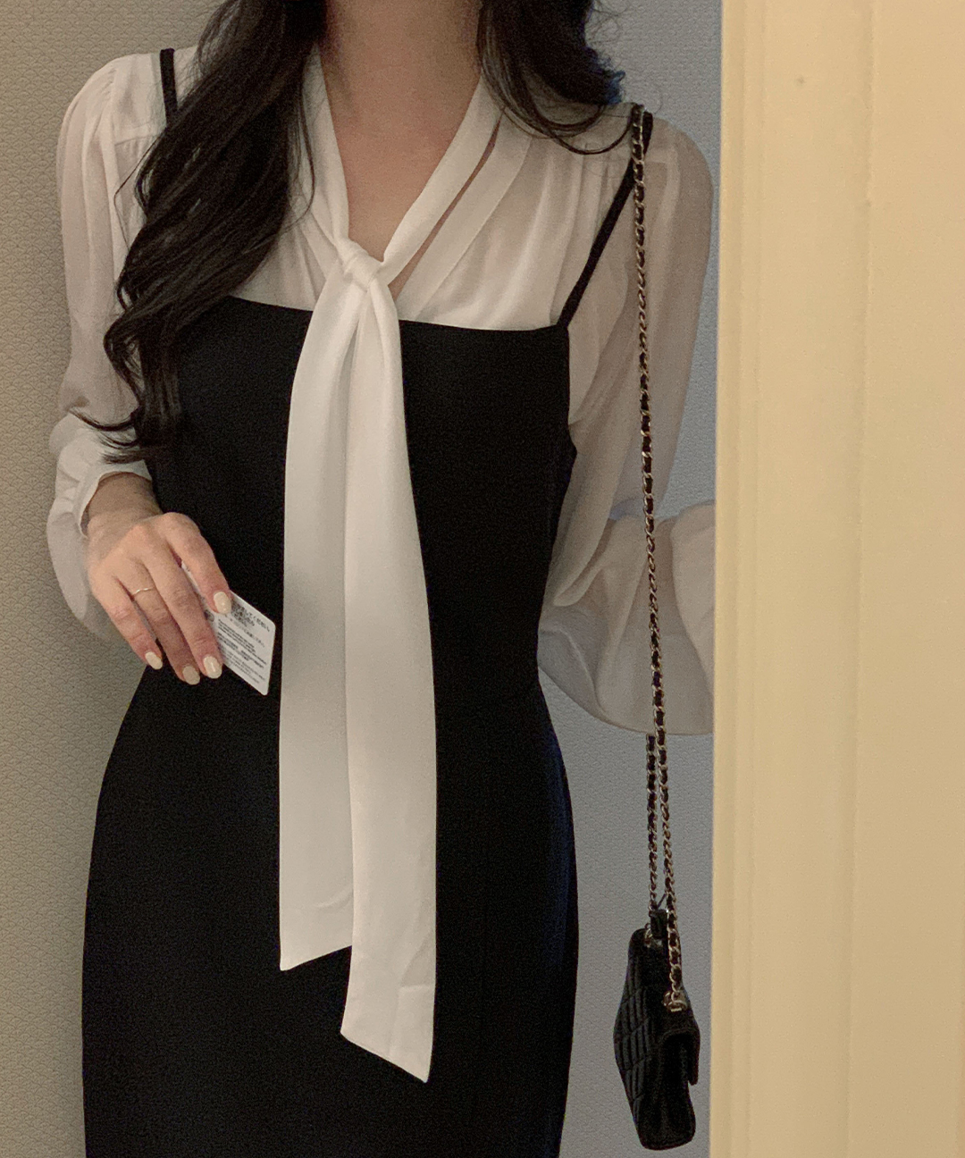 【オケージョン】[original/S-XL]Vネックシャーリングタイブラウス