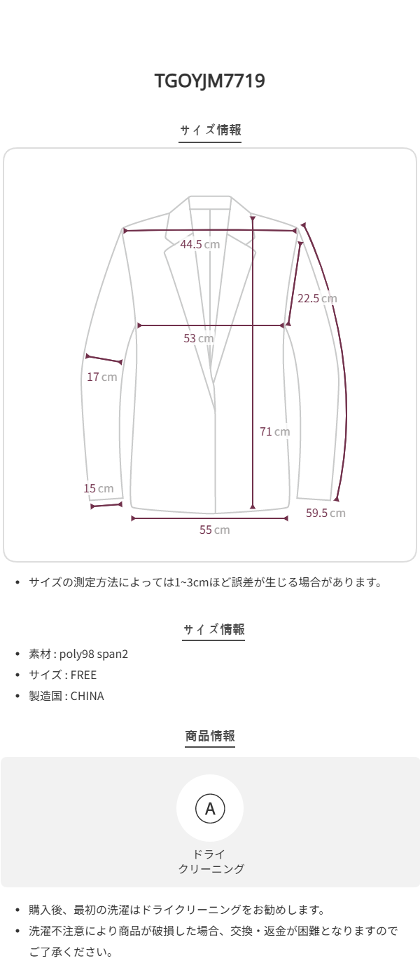 デイクラシックルーズフィットシングルジャケット
