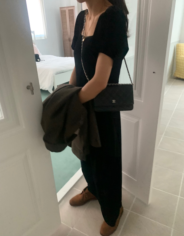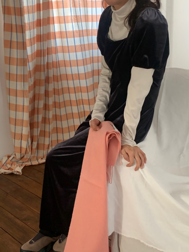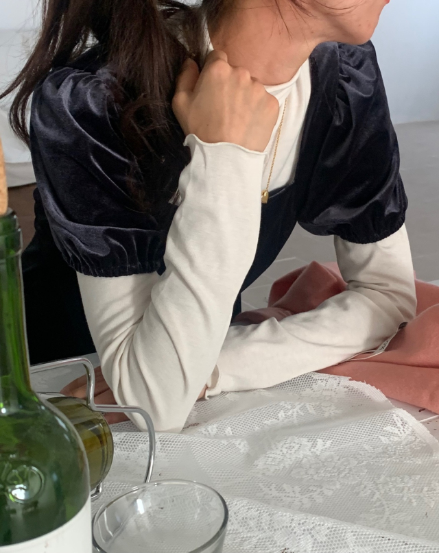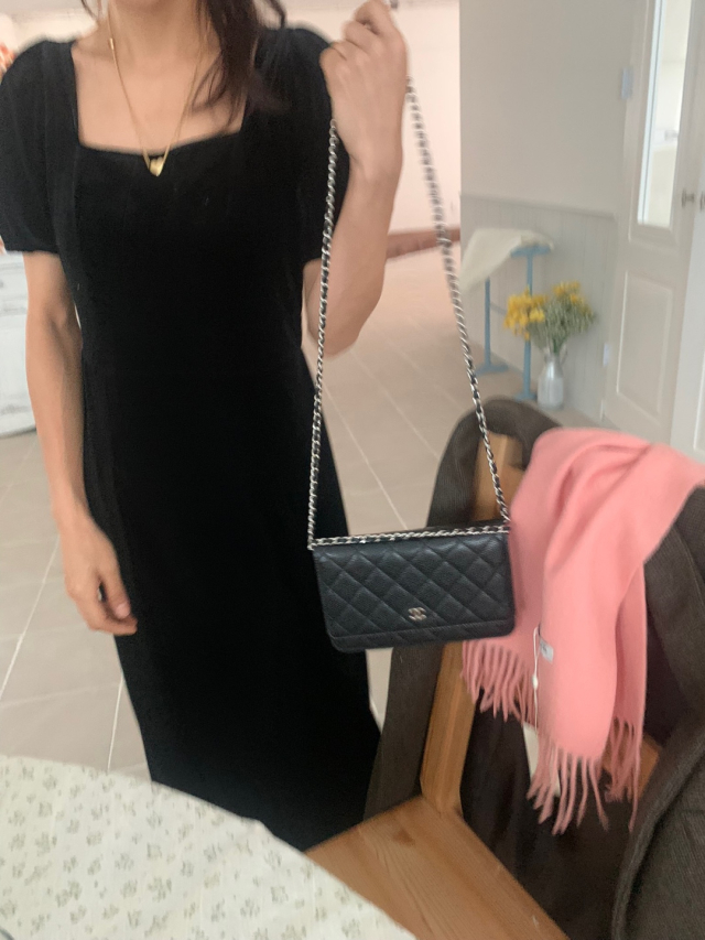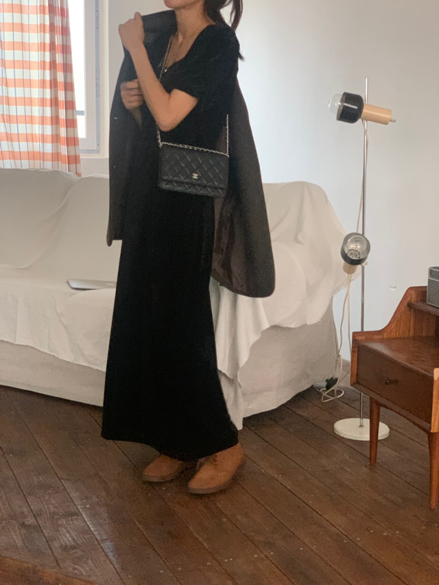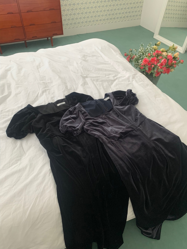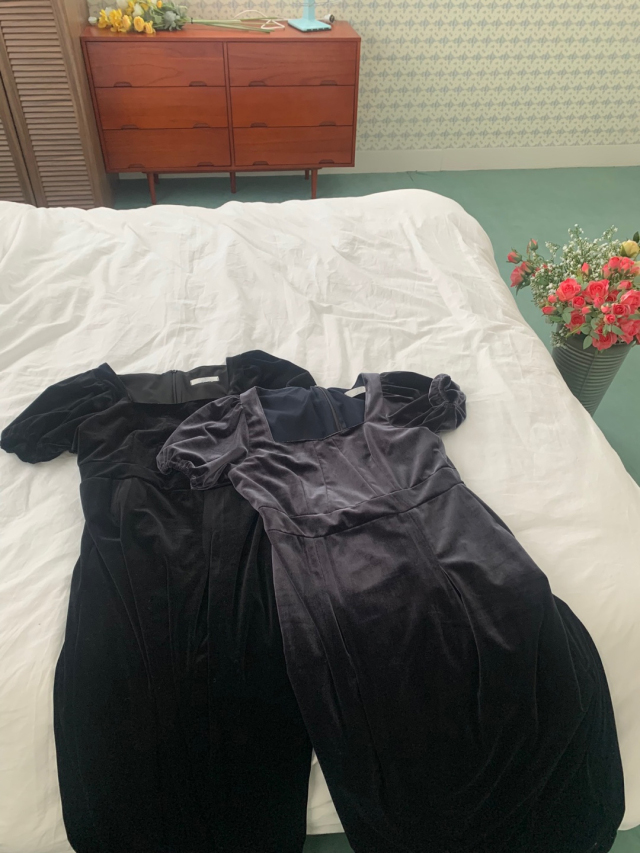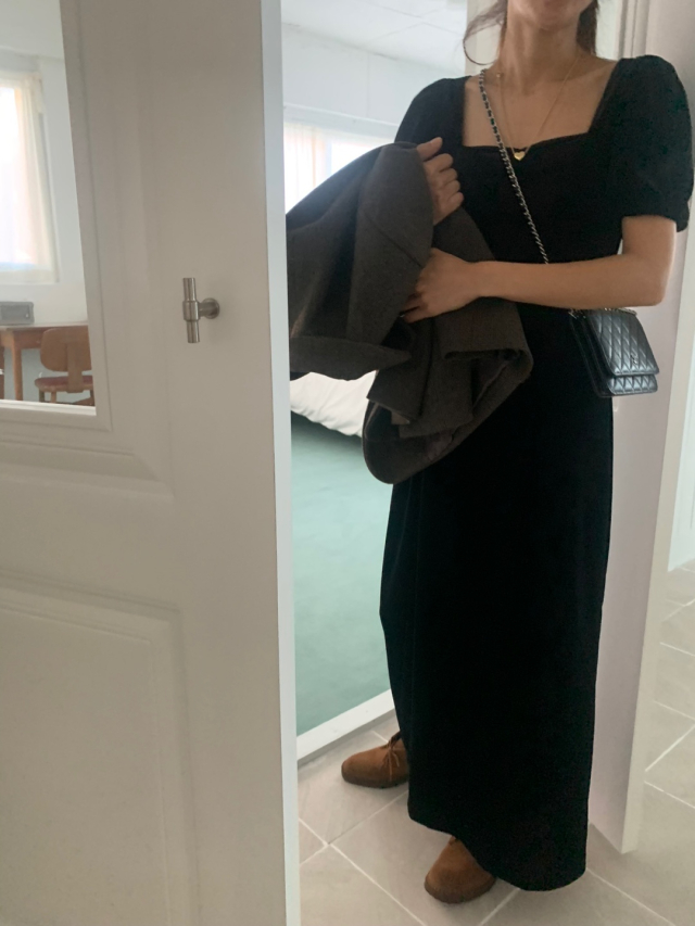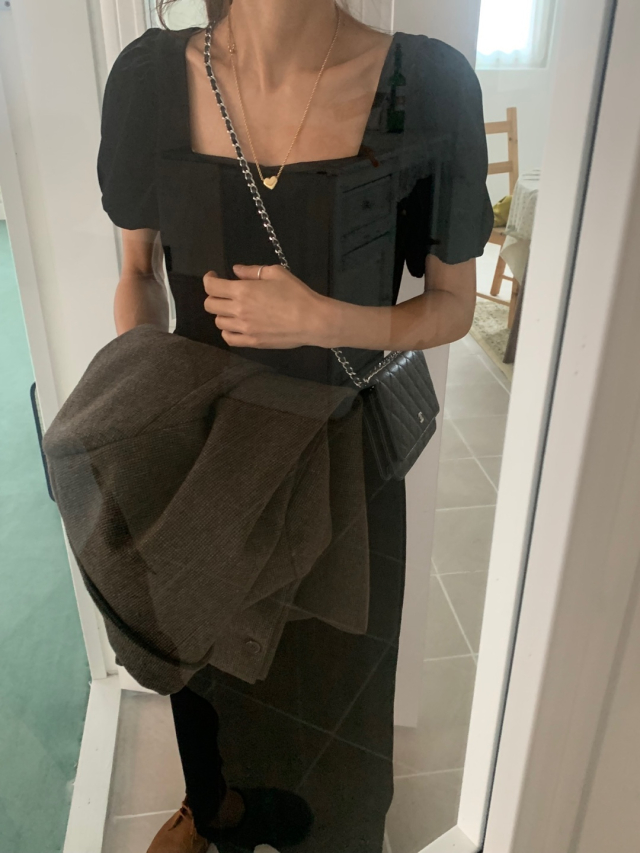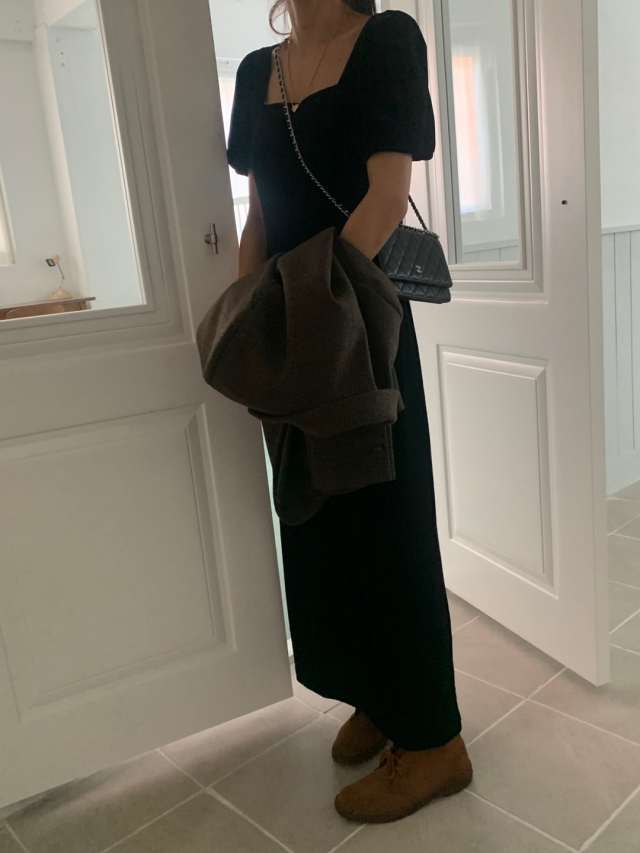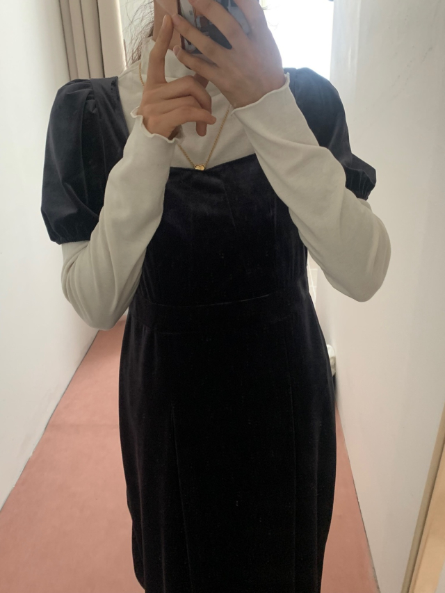 LadyベルベットスクエアネックパフHラインロングワンピース (2c)