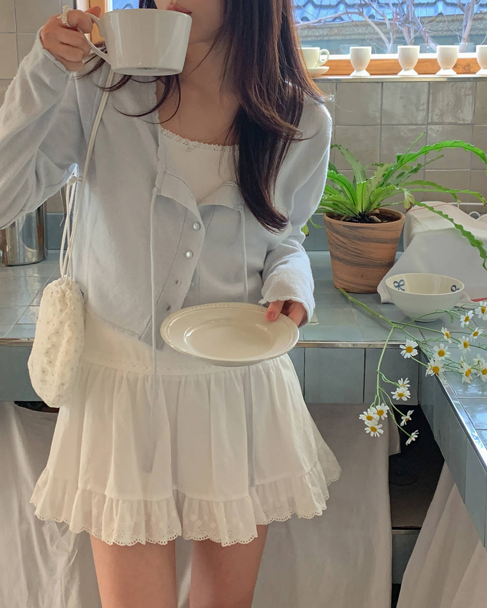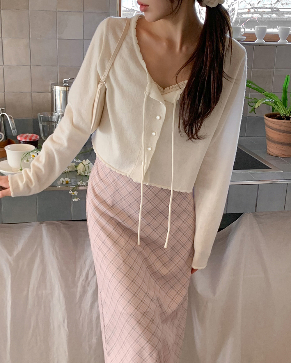 [original]フリルストリングパステルクロップドニットカーディガン