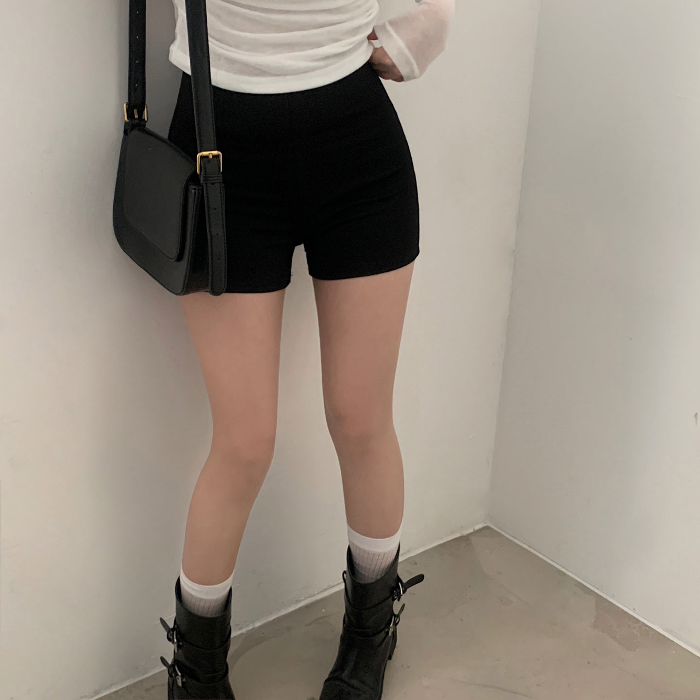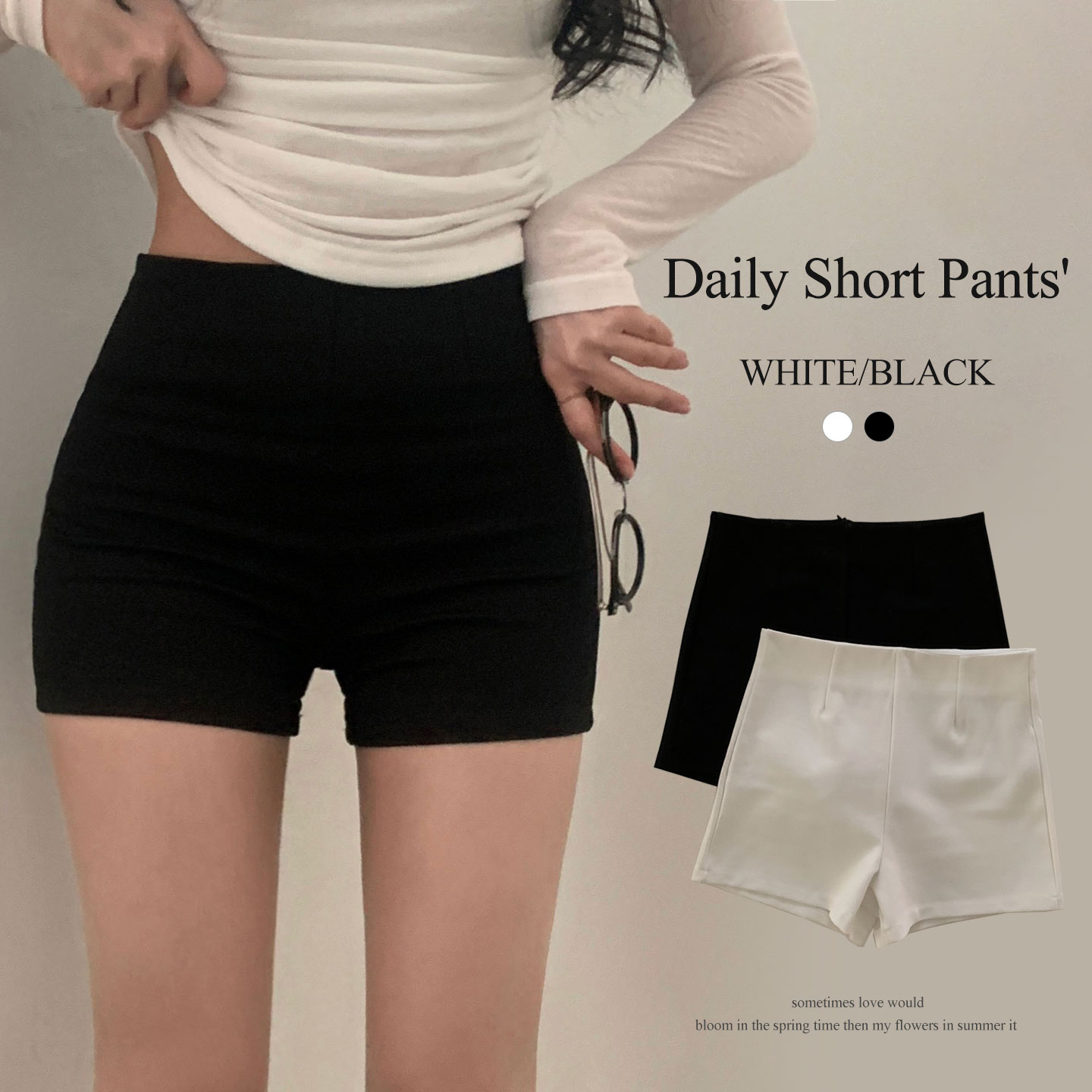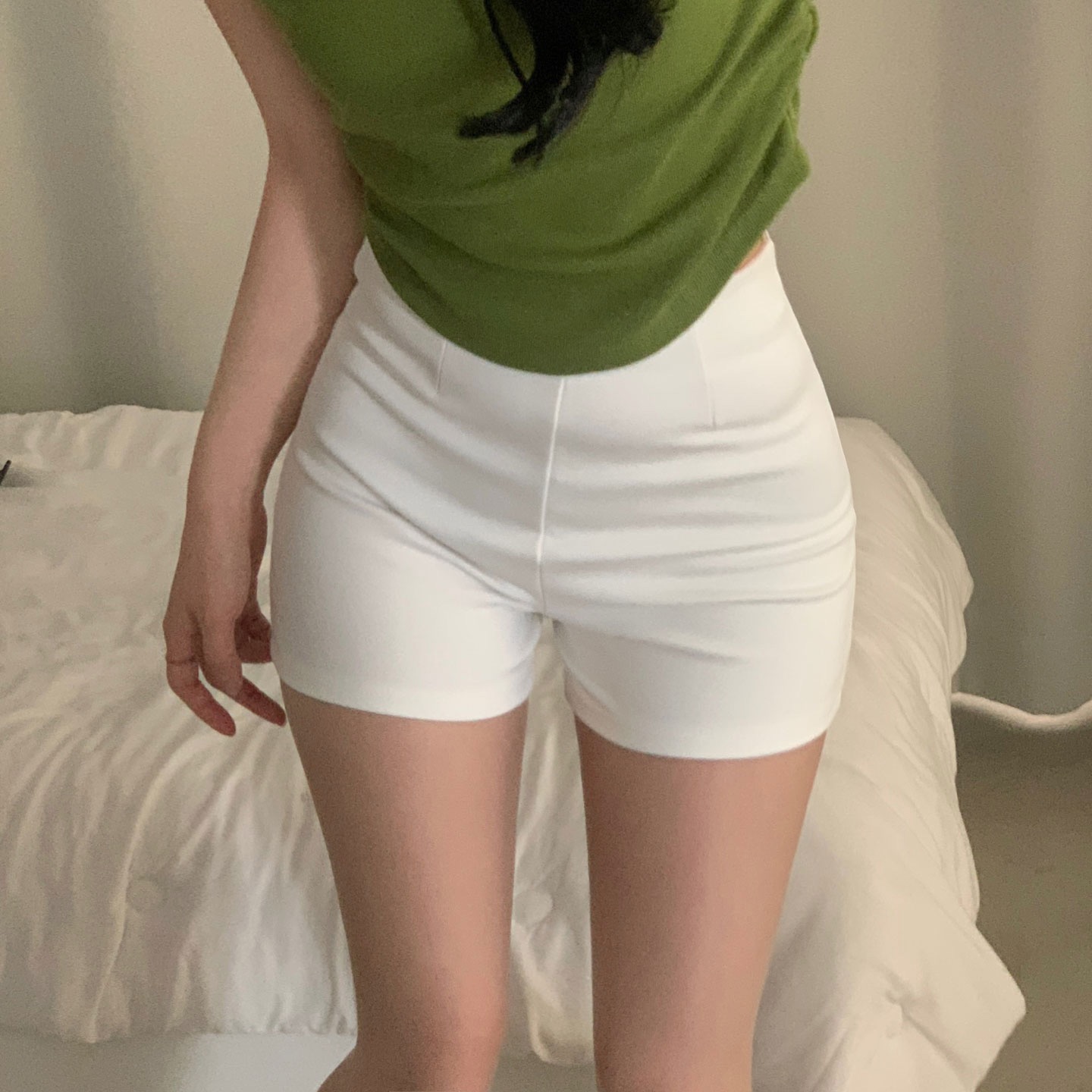 ハイウエストタック入りスパンショートパンツ-2color