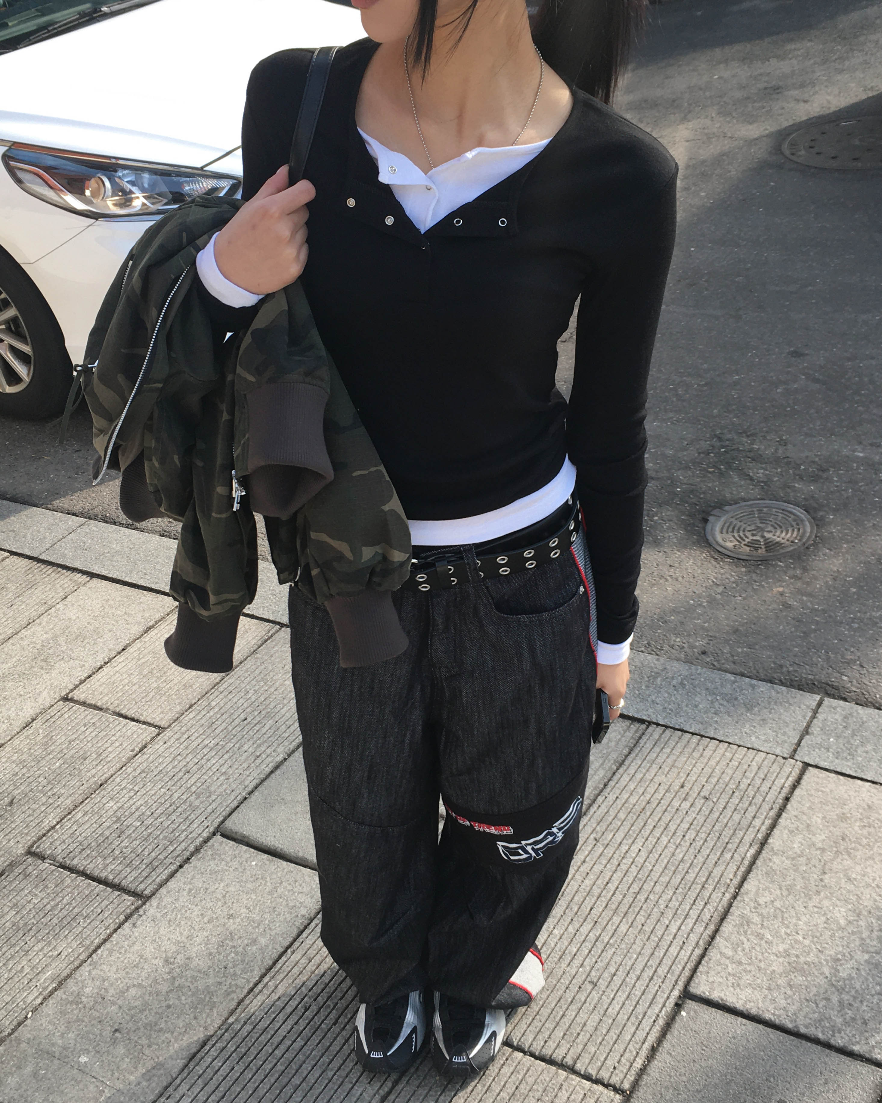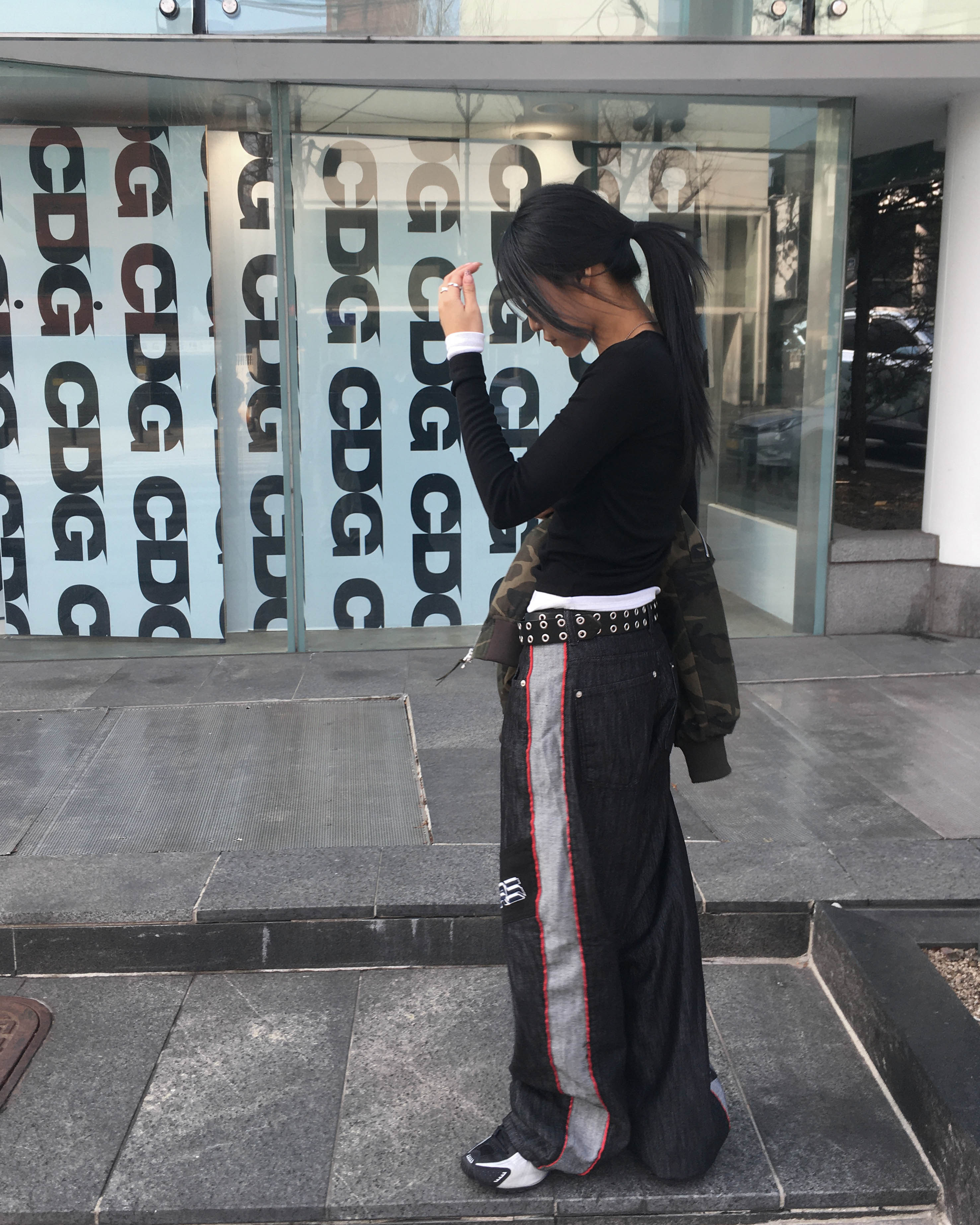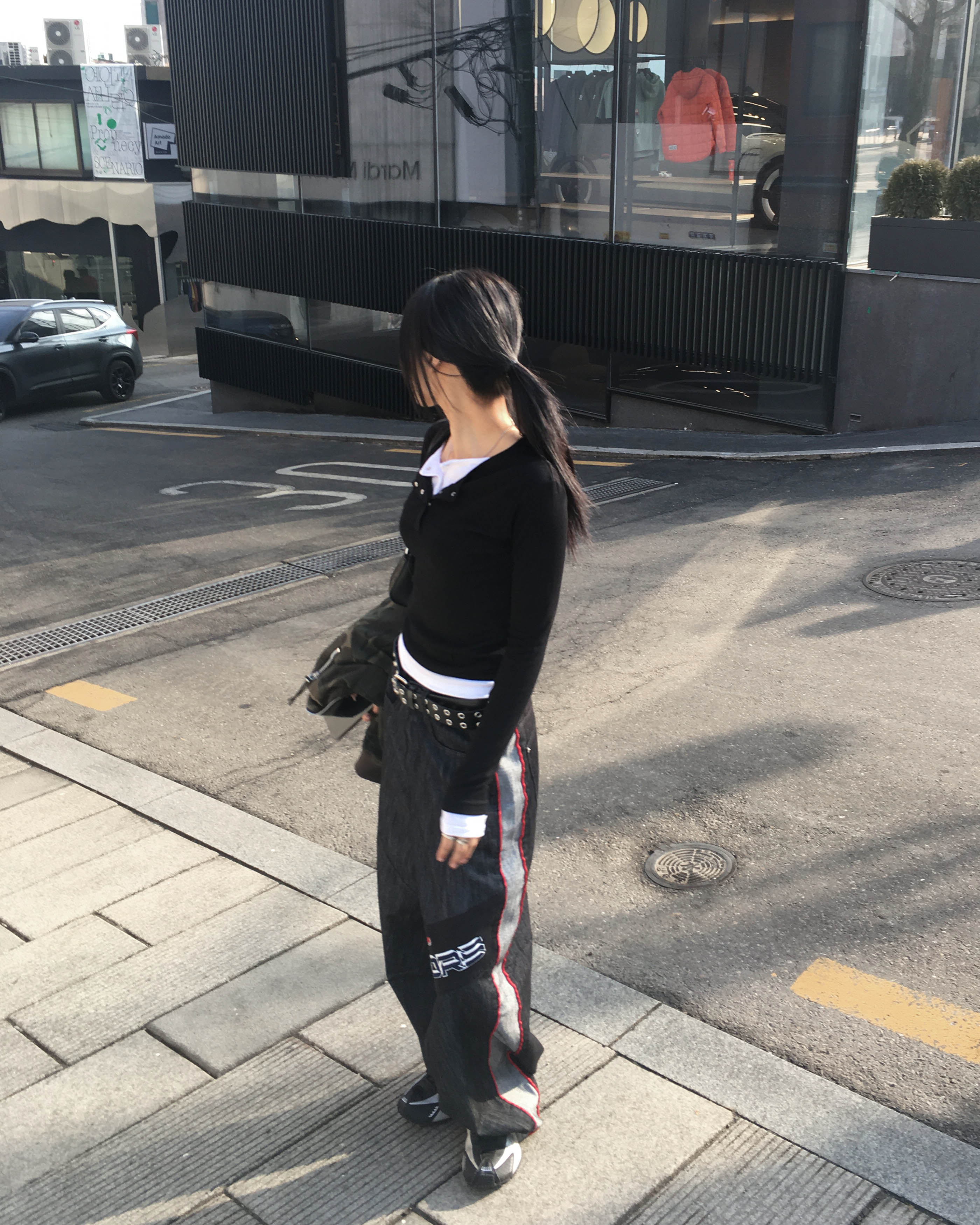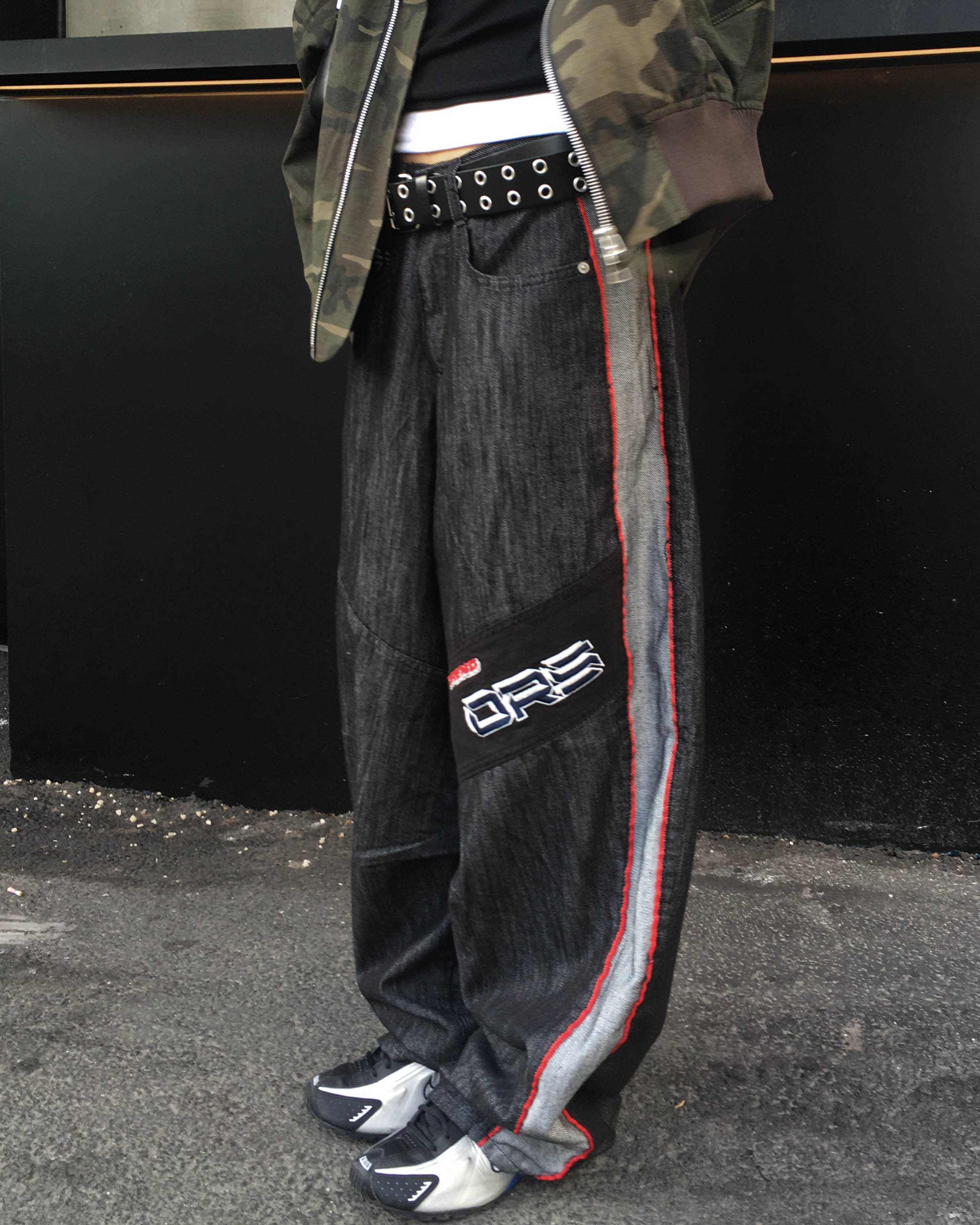 Racing denim pants