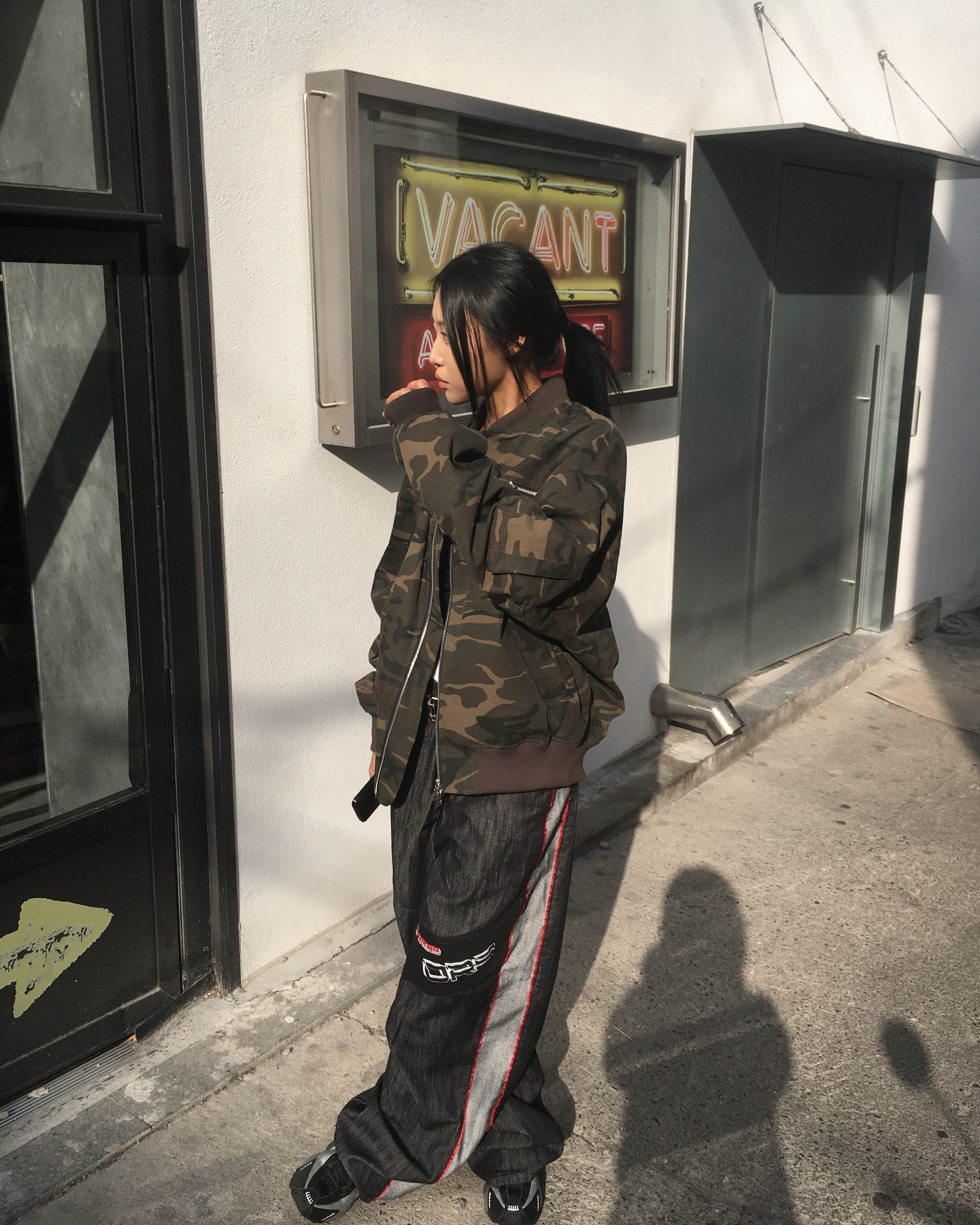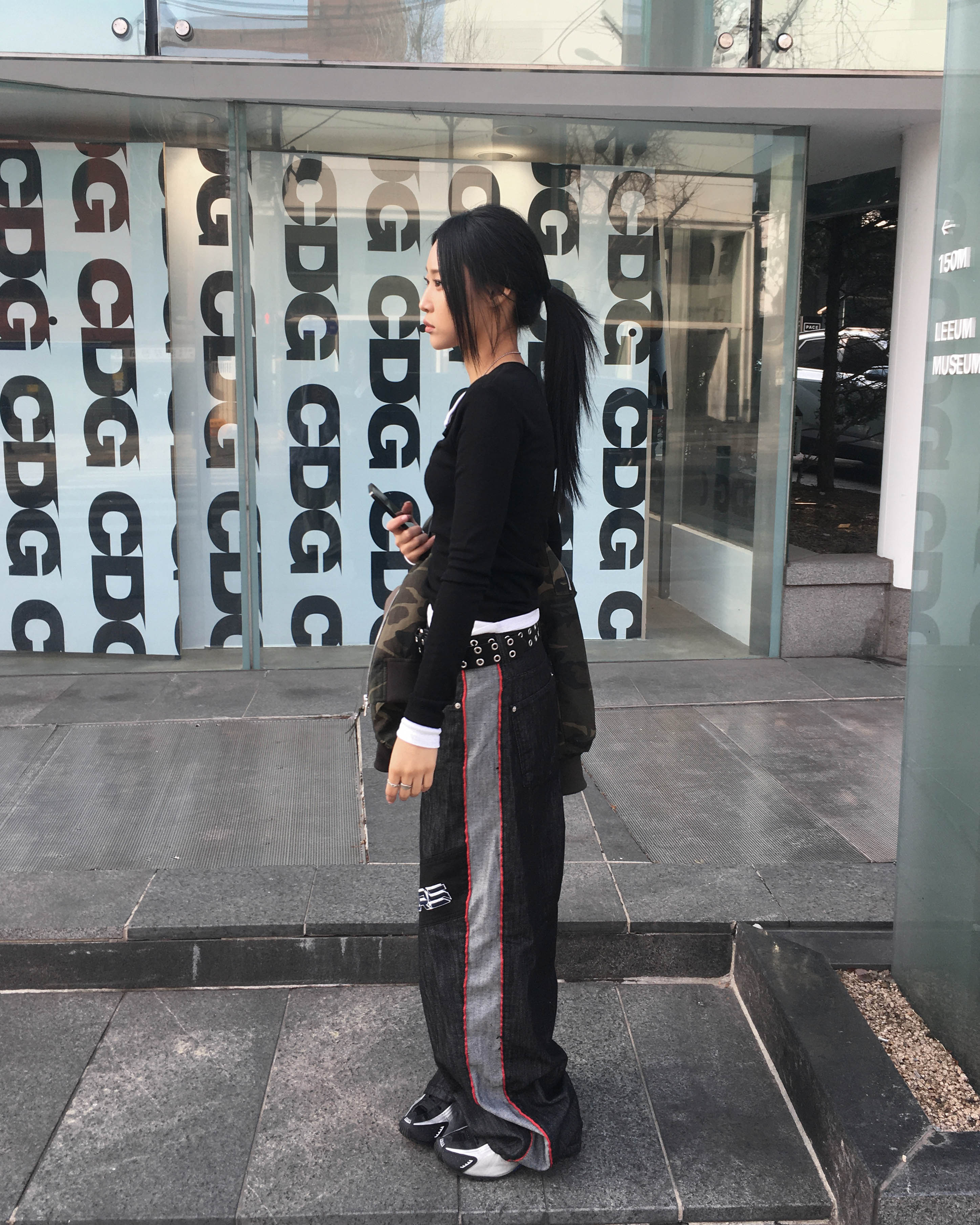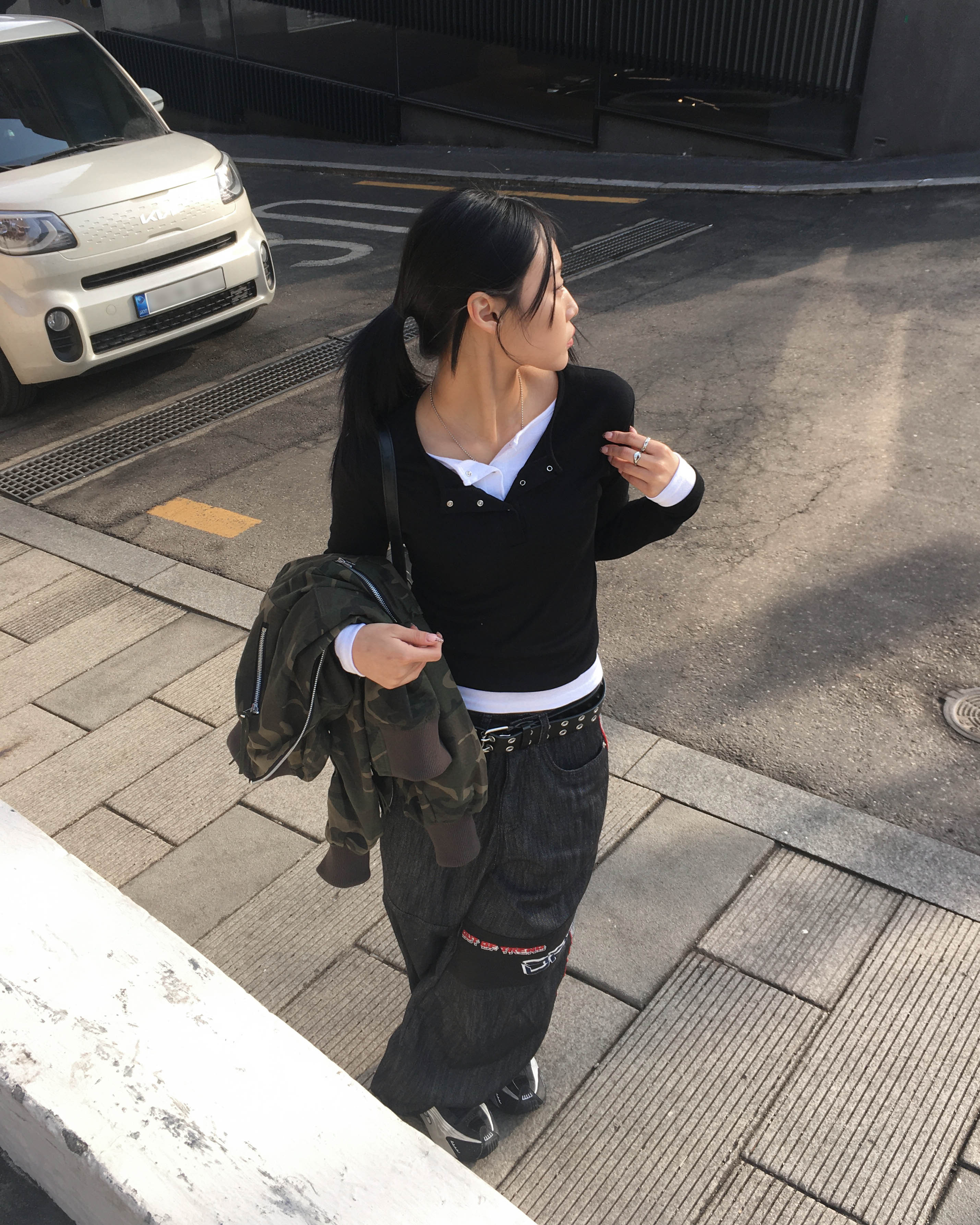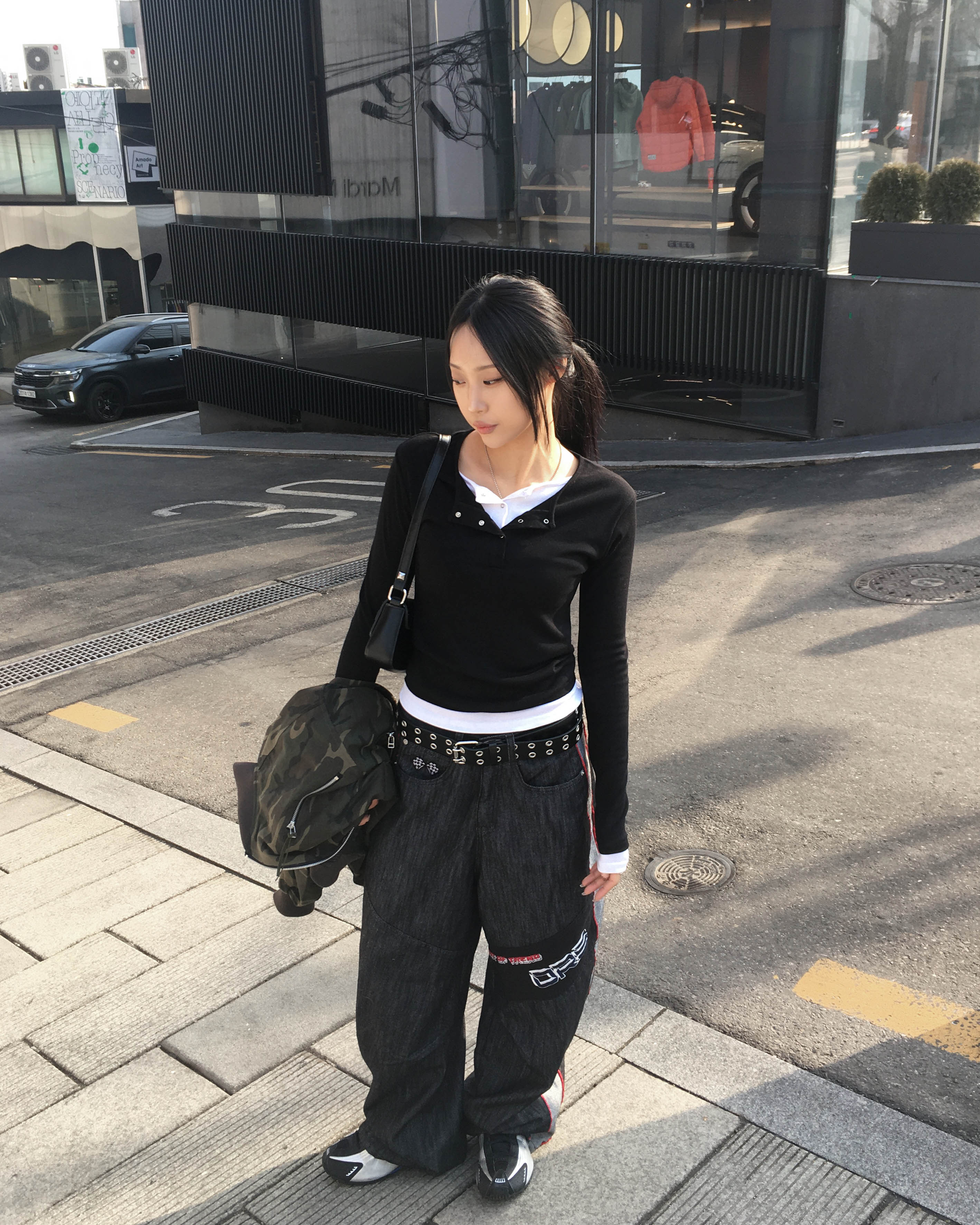 Racing denim pants