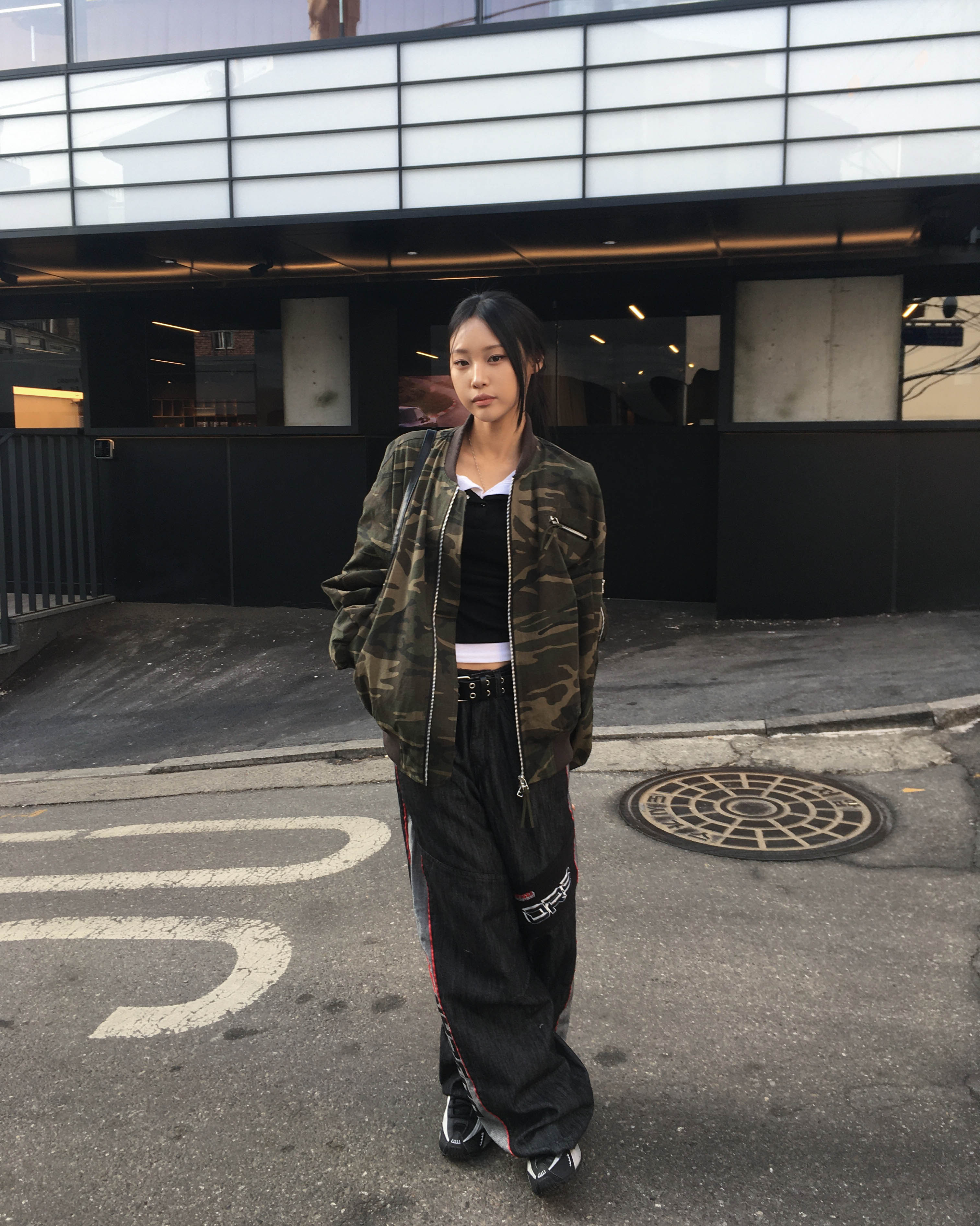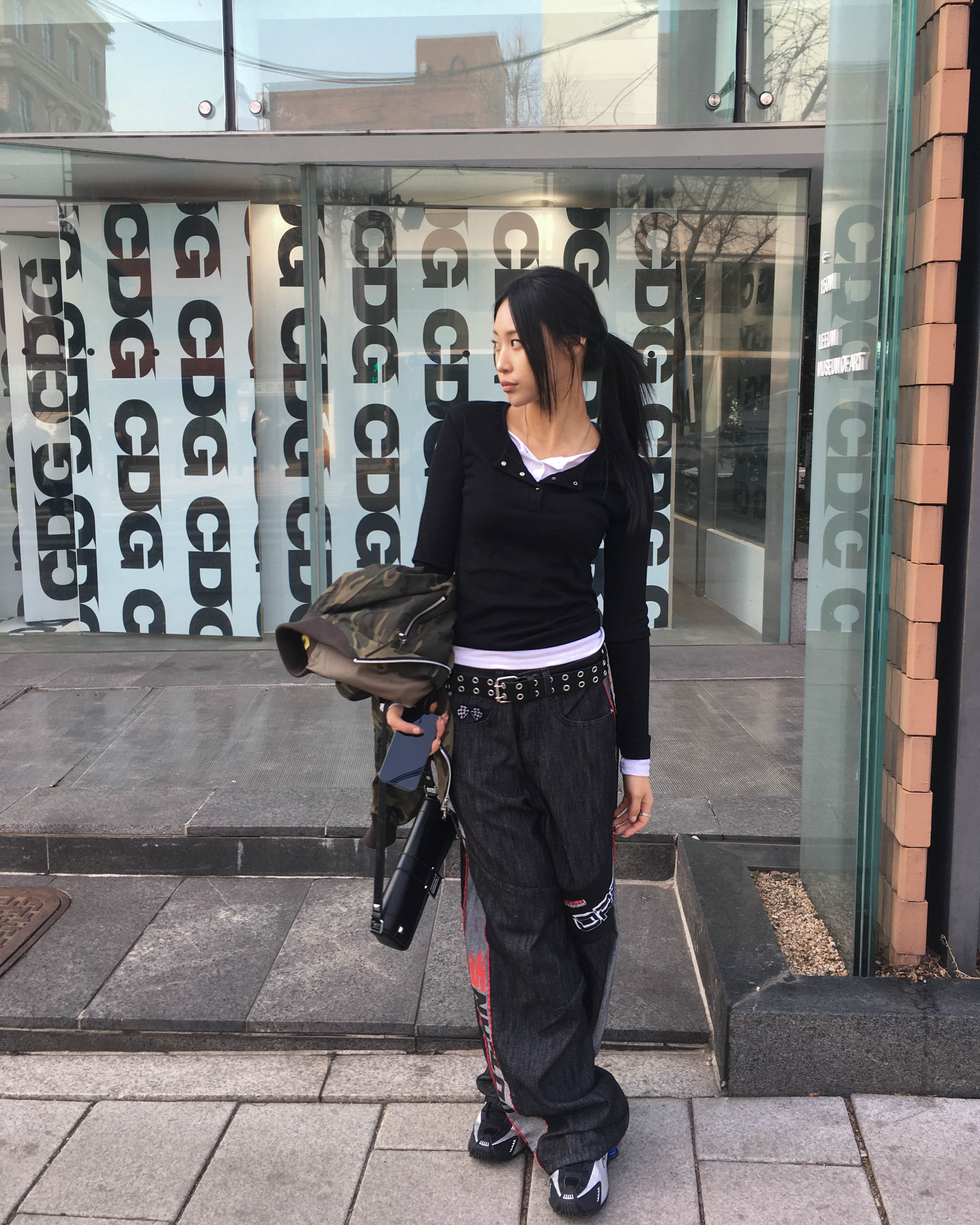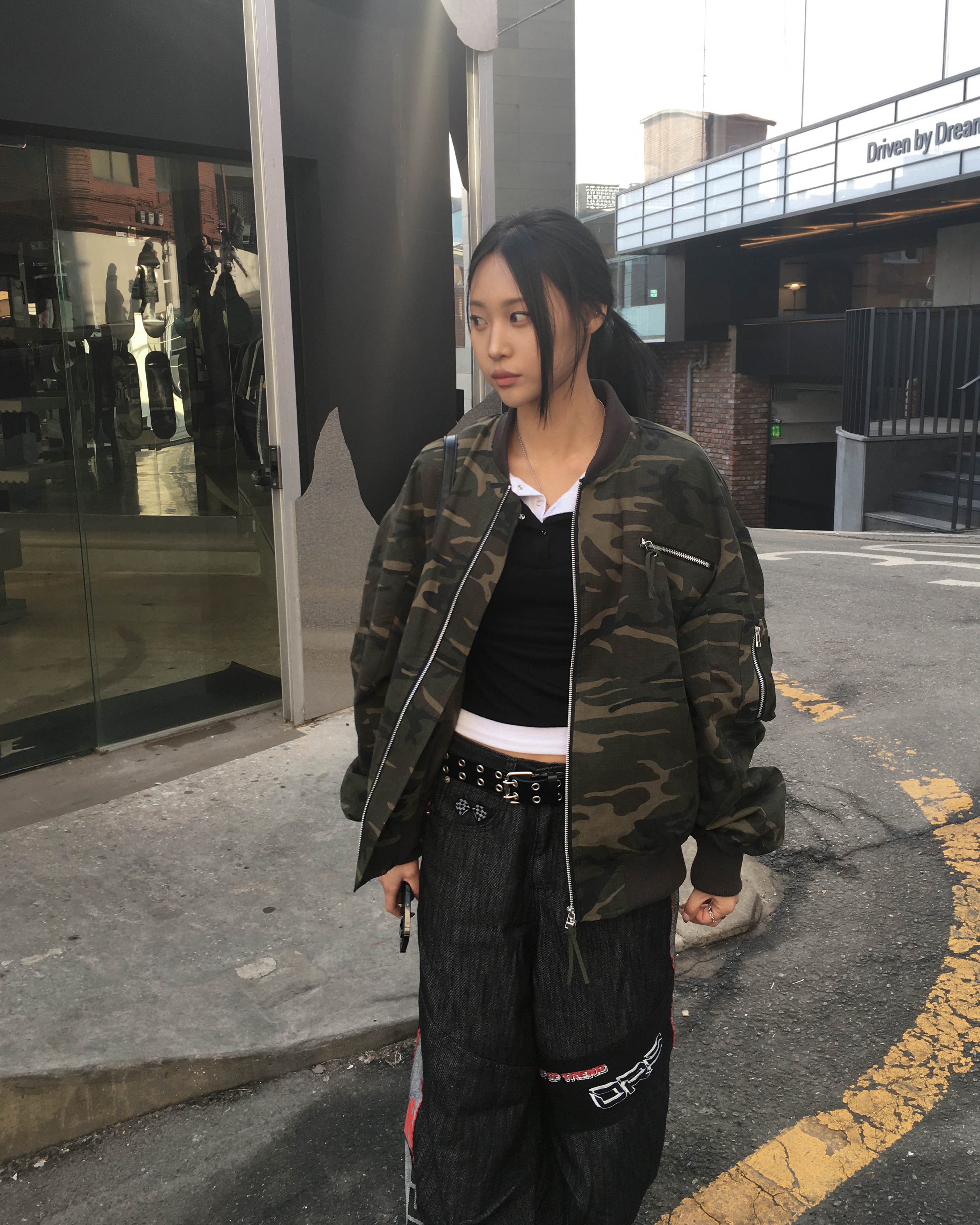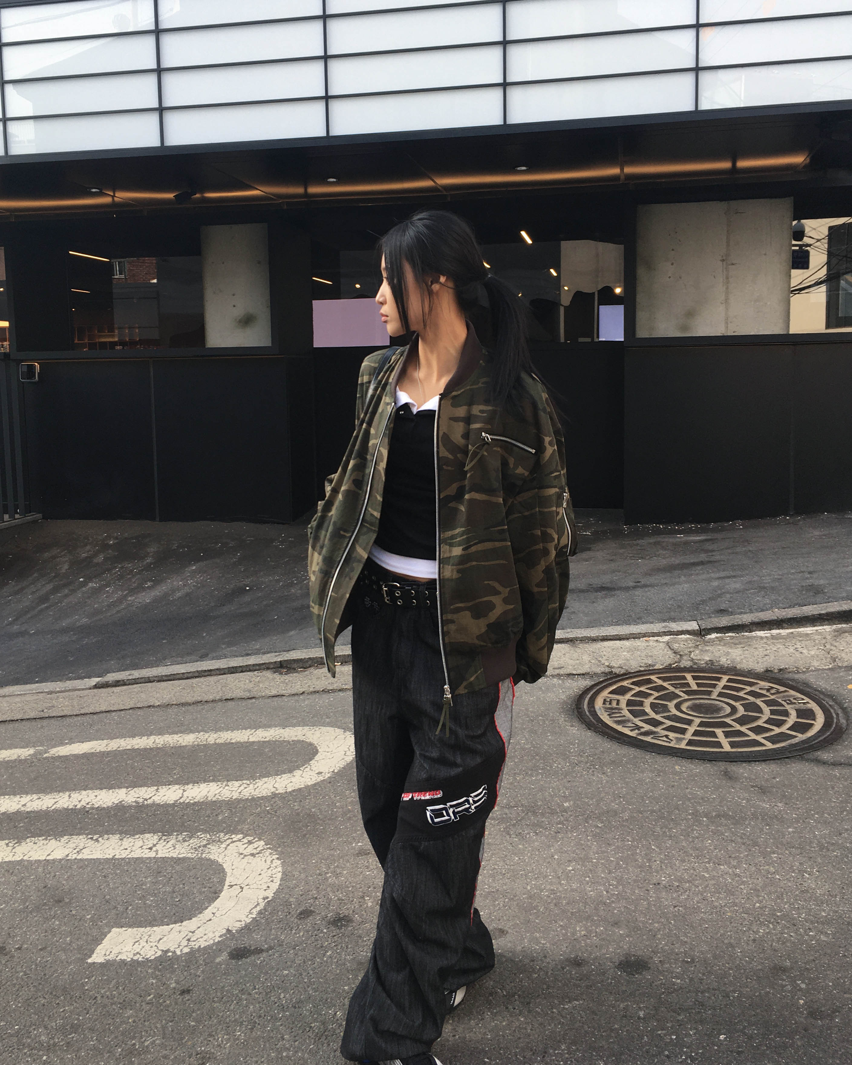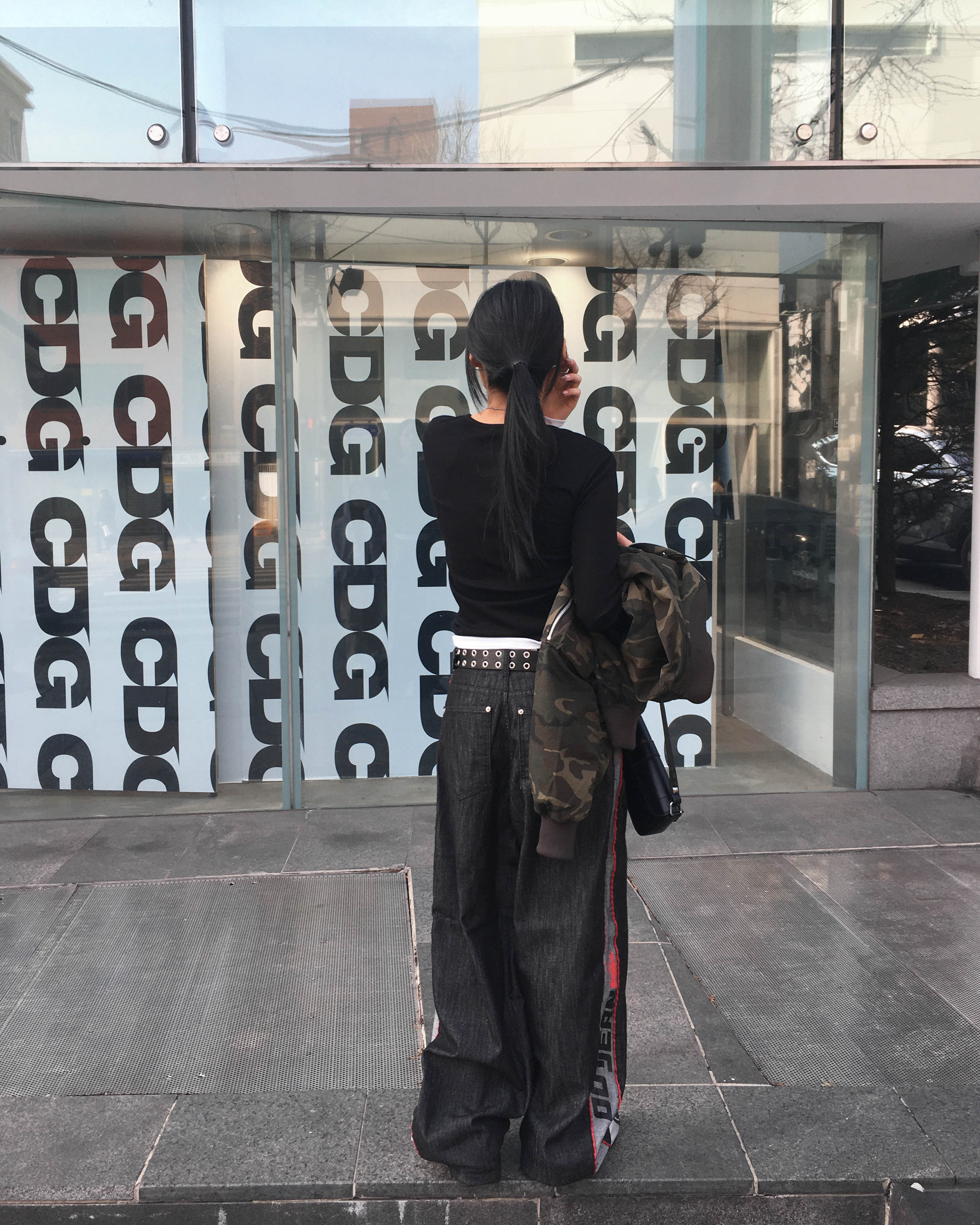 Racing denim pants