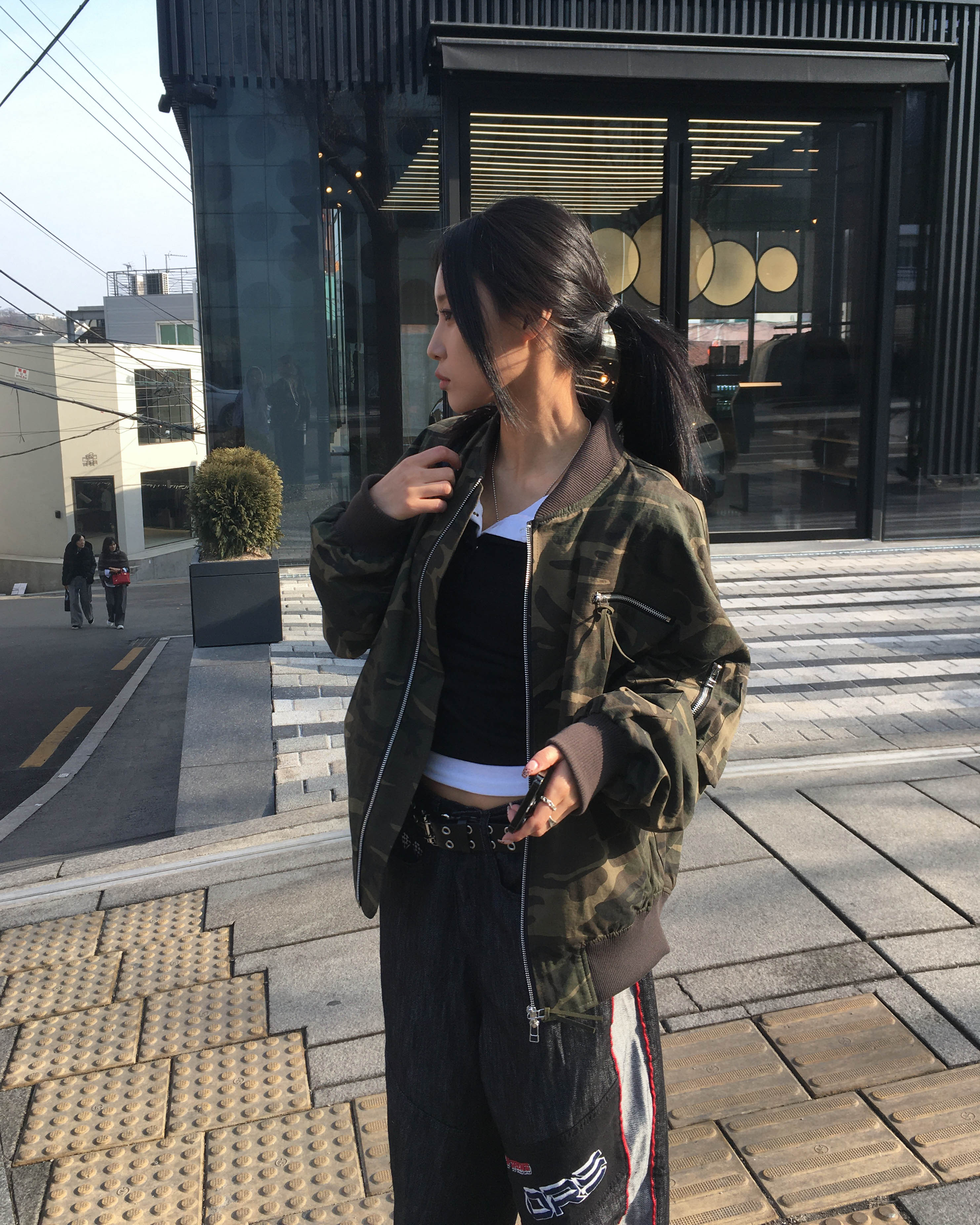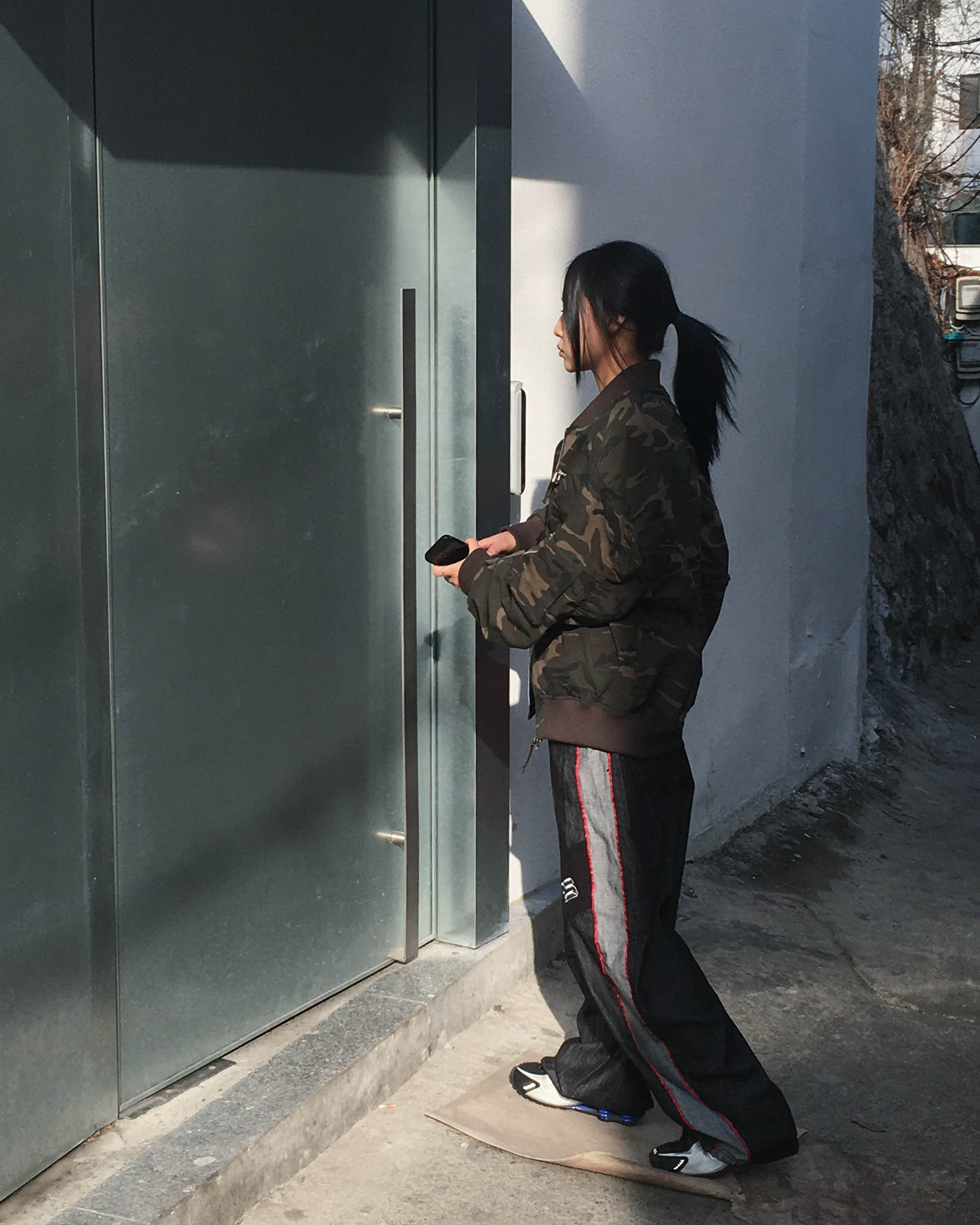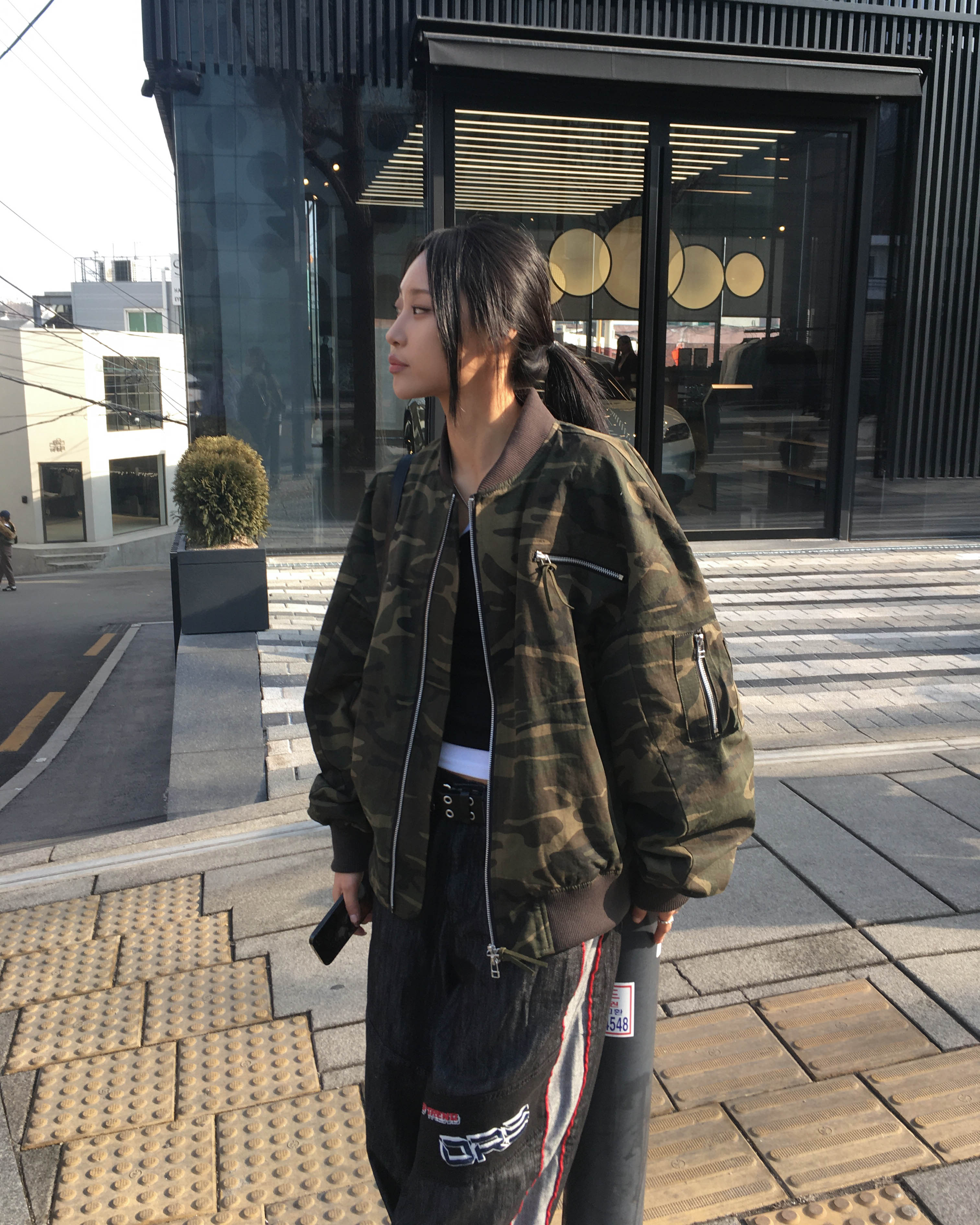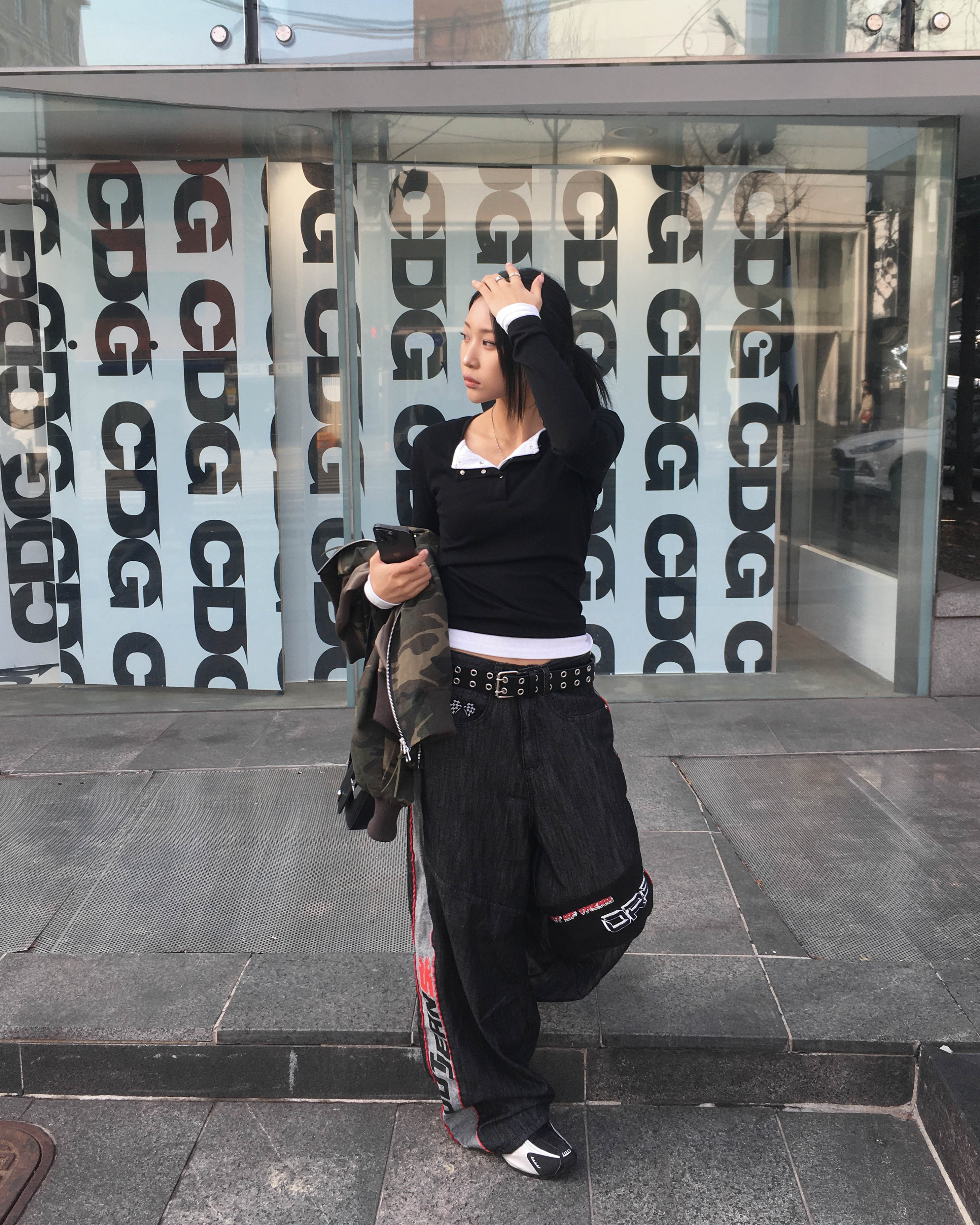 Racing denim pants