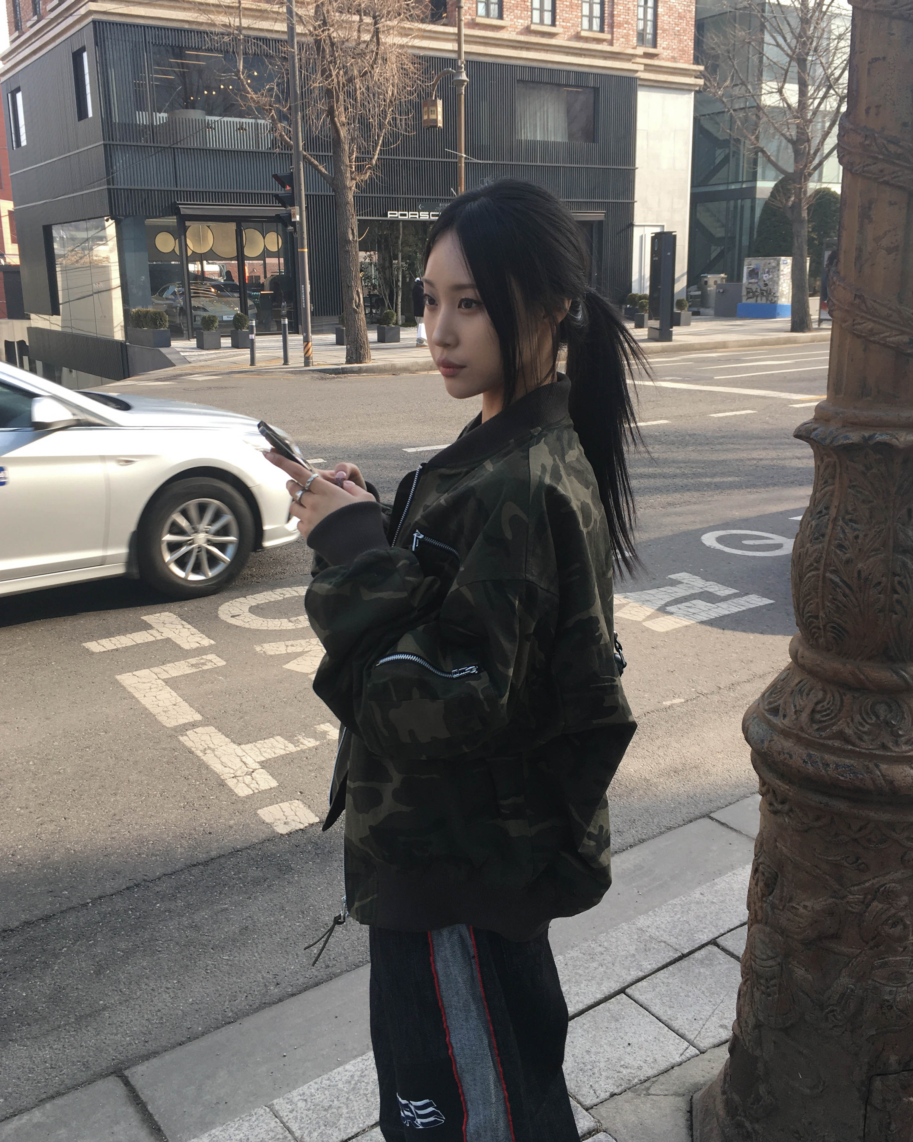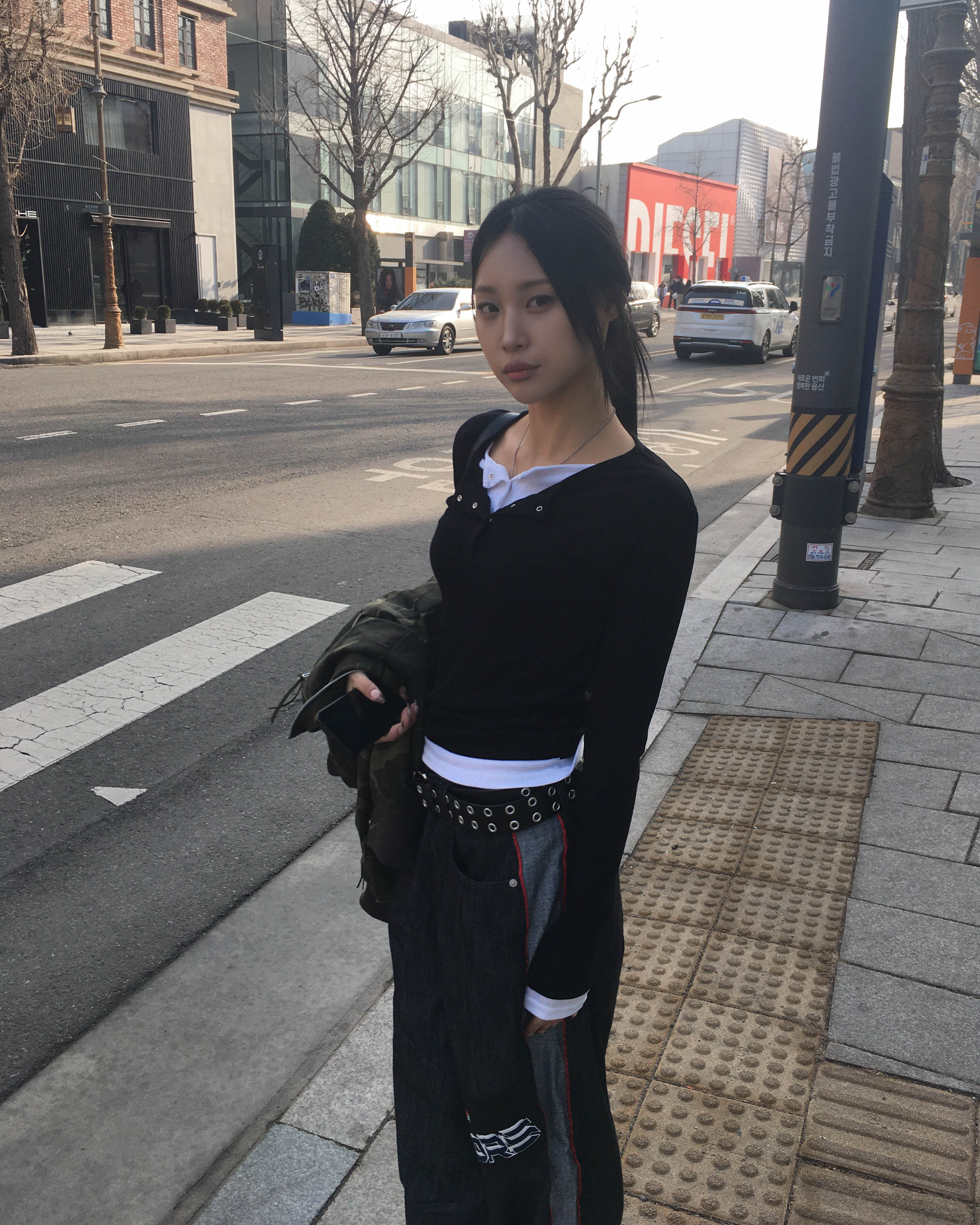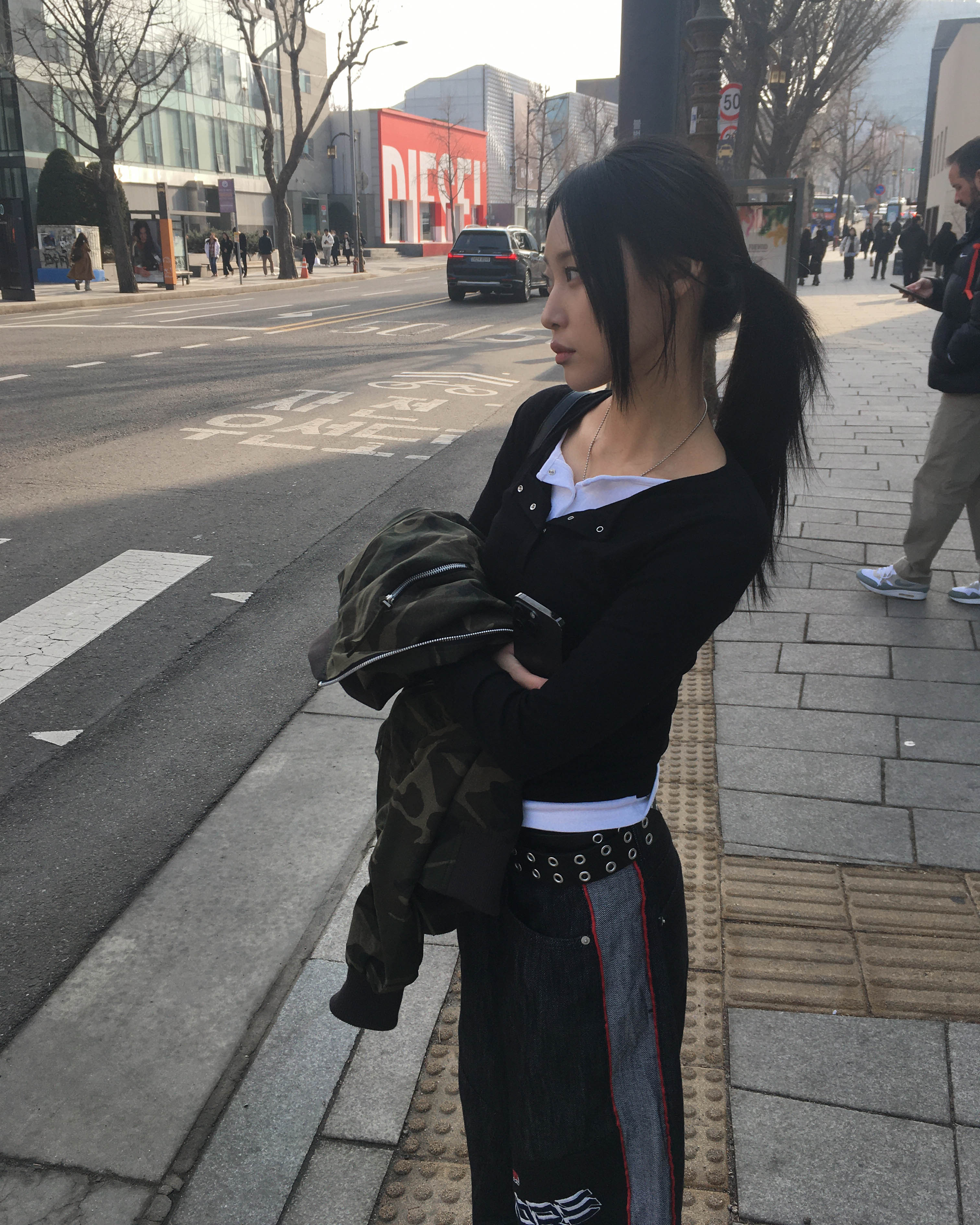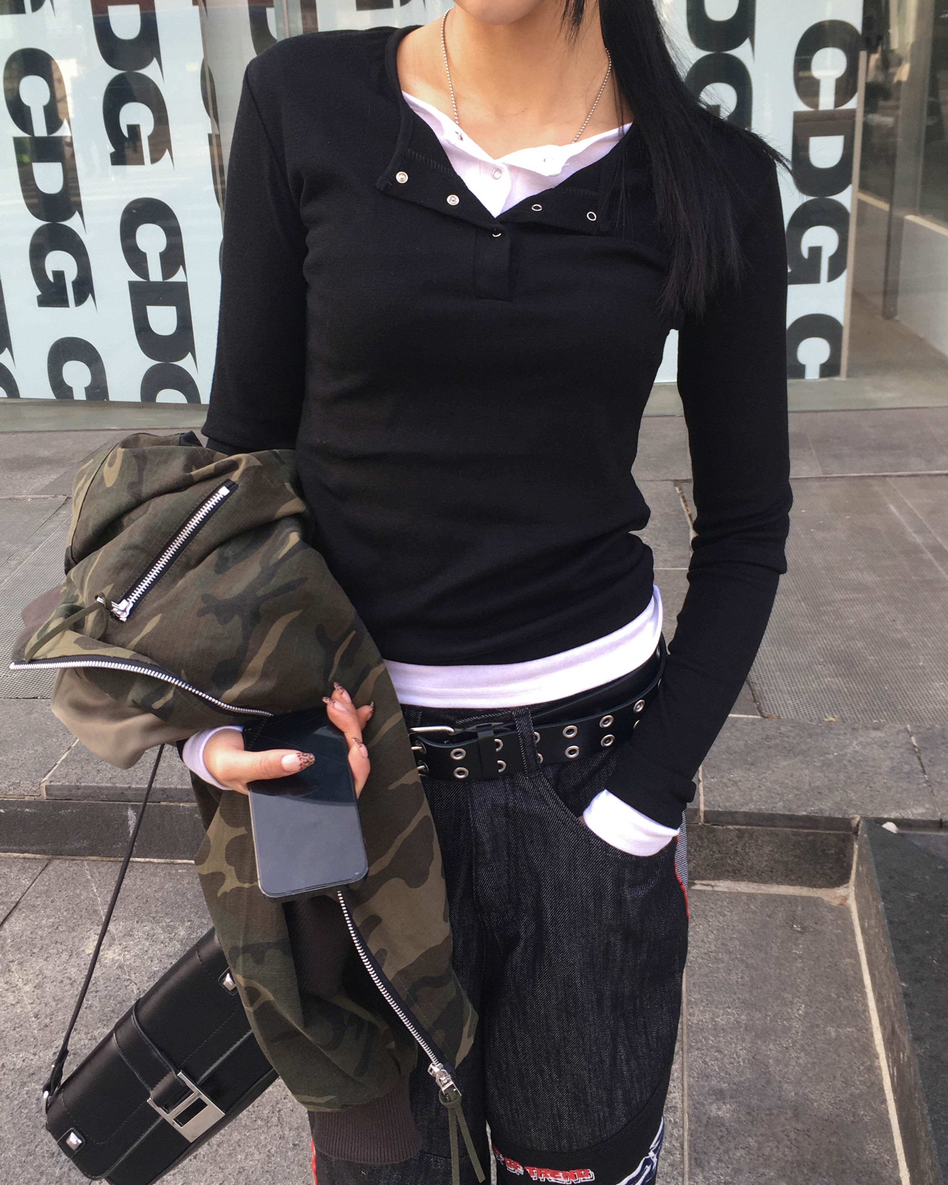 Racing denim pants