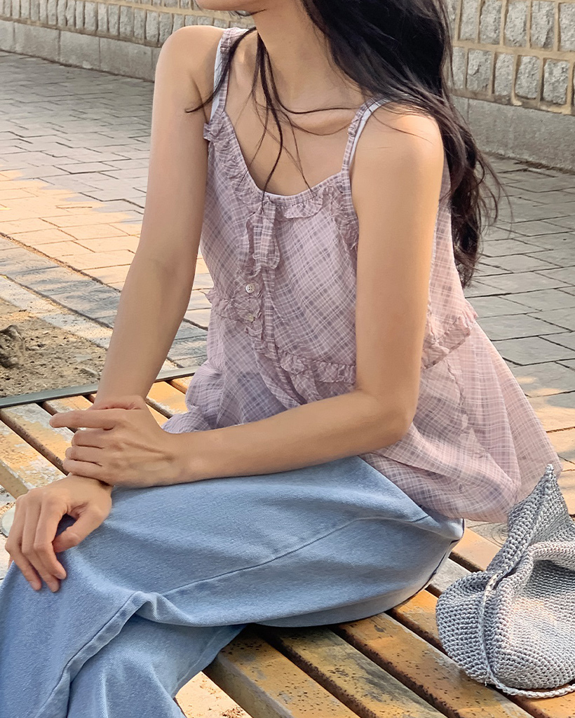 ✓ 빈티지하면서 러블리한 감성으로 즐겨지는 나시 블라우스
