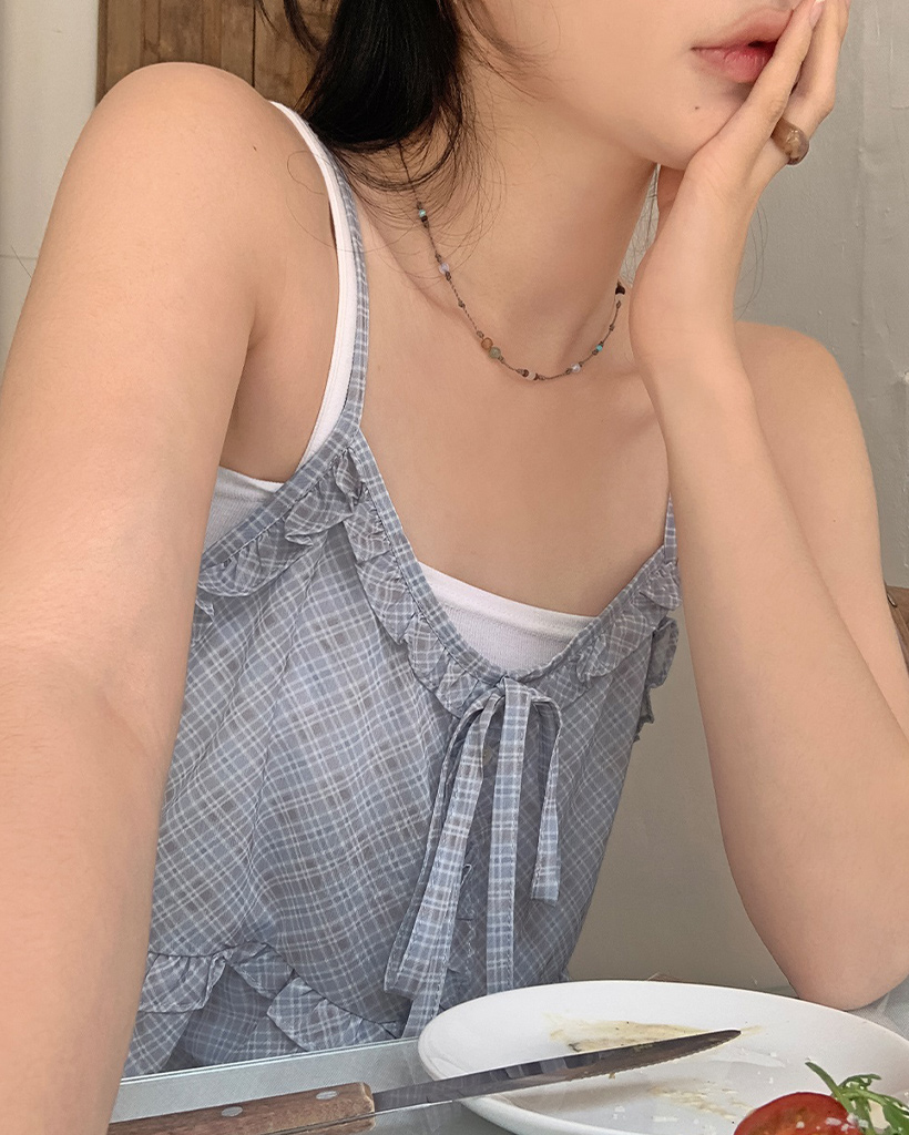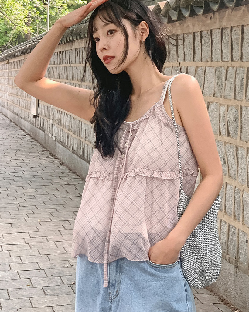 ✓ 은은한 결감으로 여리한 무드를 더해주는 나시 블라우스