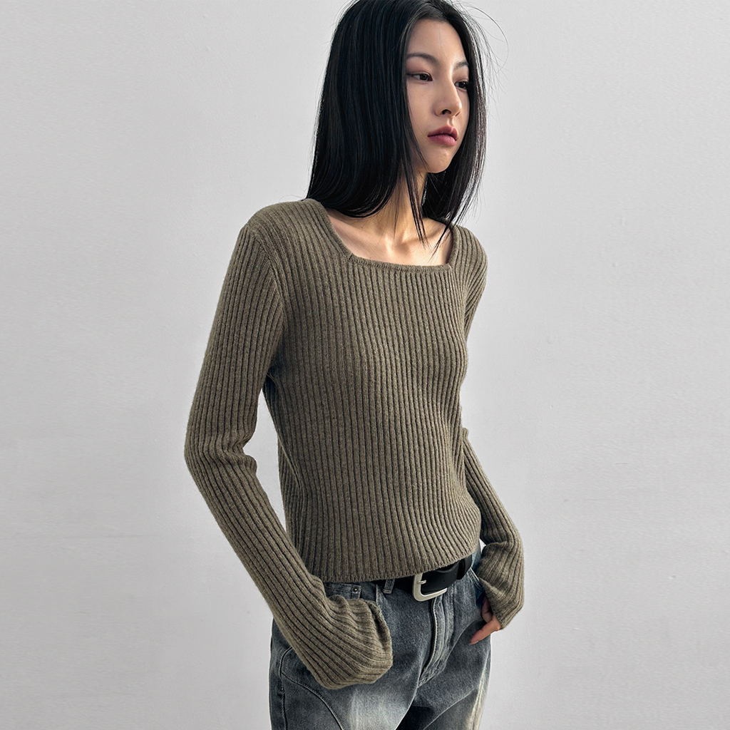 [original]トゥウェンリブスクエアネックニット (メリノウール50%)