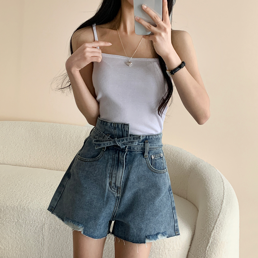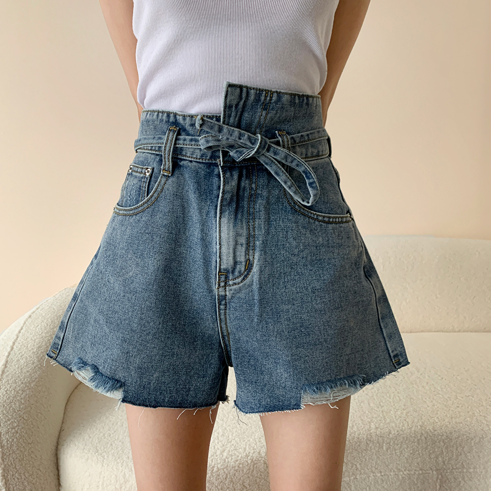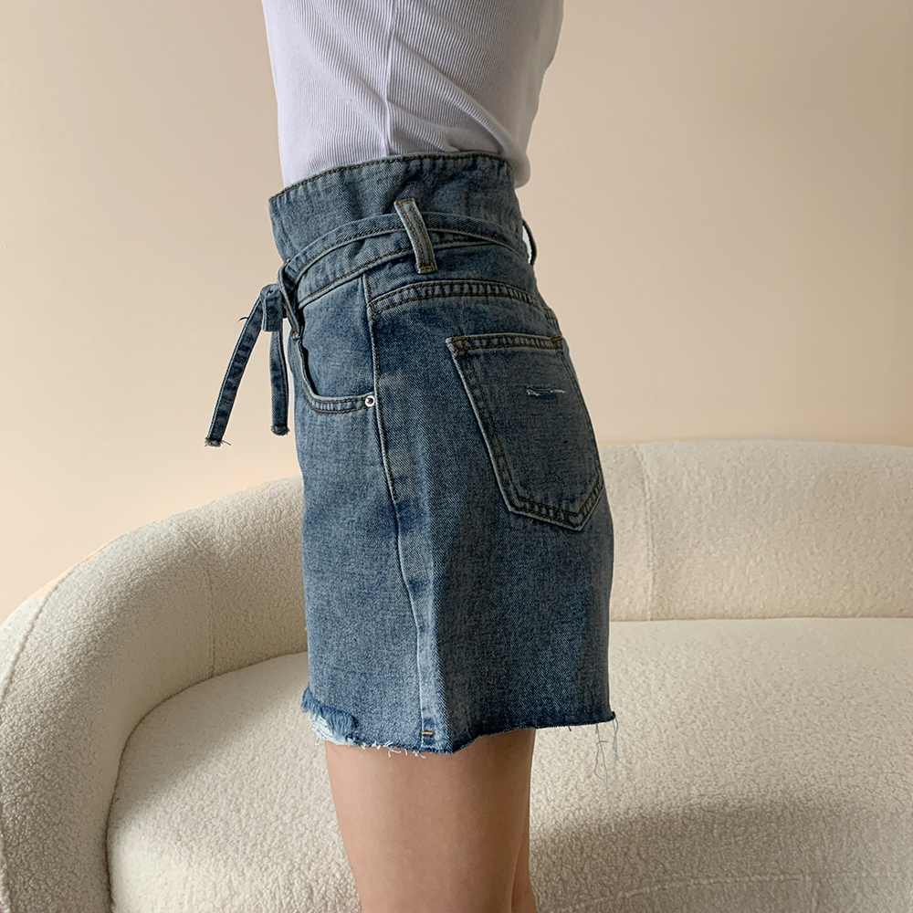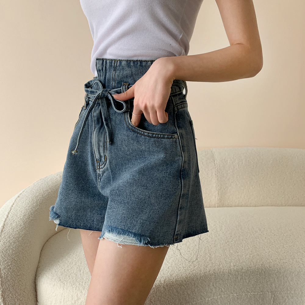 アシンメトリーリボンハイウエストパンツ